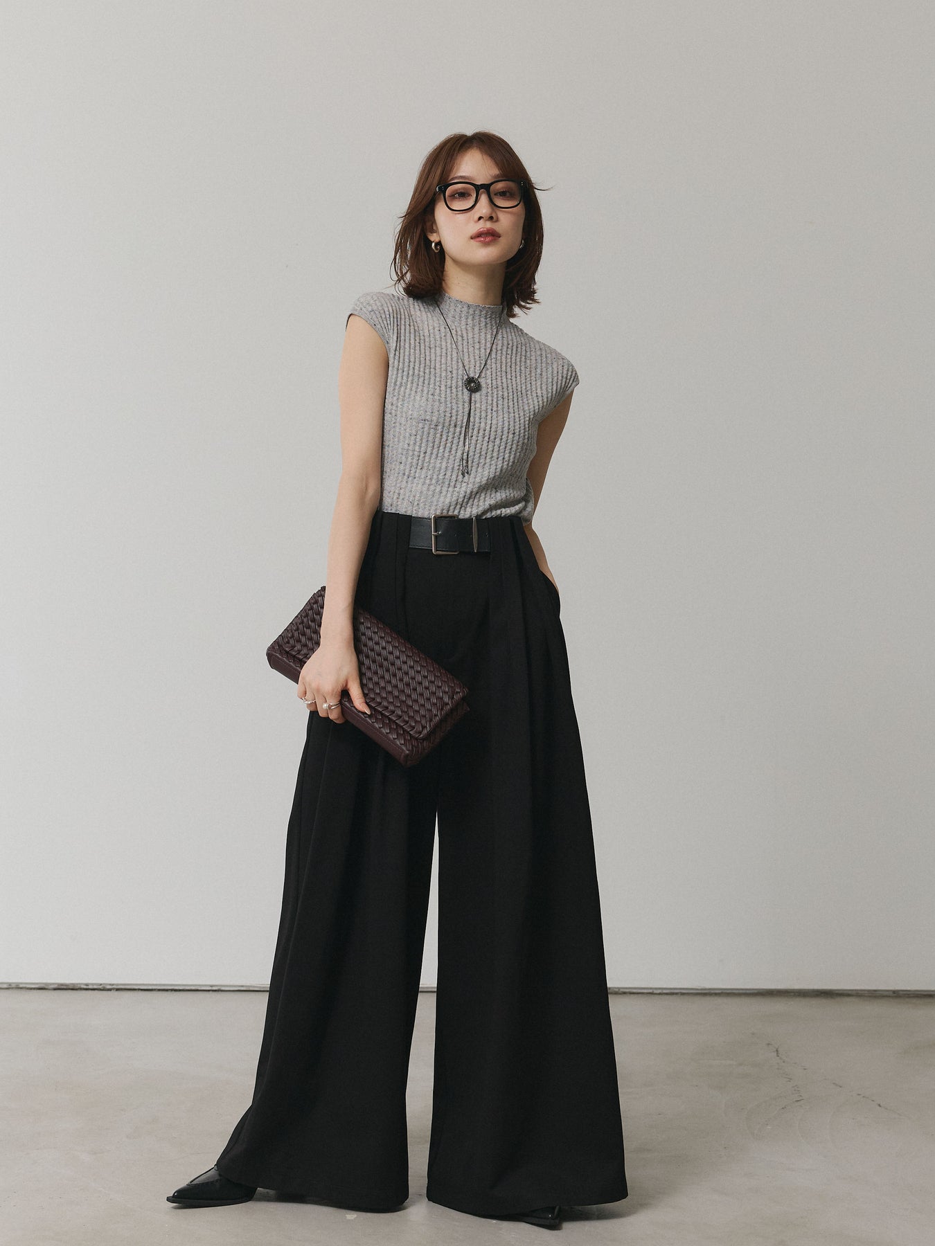 [予約]ベルト付ダブルループワイドパンツ/ブラック