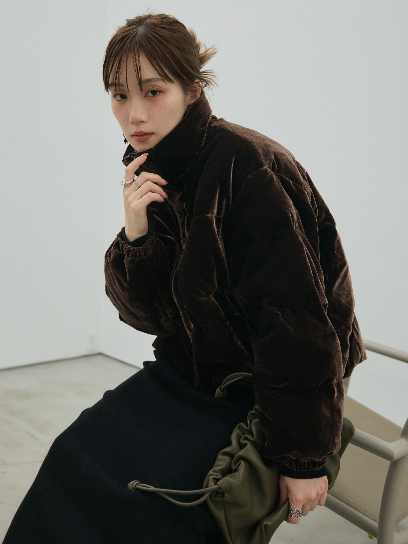 光沢感のあるベロア素材が上品さを引き立てるダウンジャケット。丸みのあるシルエットと程よいボリューム感が、女性らしい柔らかさと防寒性を兼ね備えた1着。高めに設計されたスタンドネックが首元までしっかりと暖かく、顔まわりをすっきりと見せてくれます。パンツにもスカートにも合わせやすい絶妙な丈感で、デイリーからお出かけまで幅広く活躍します。