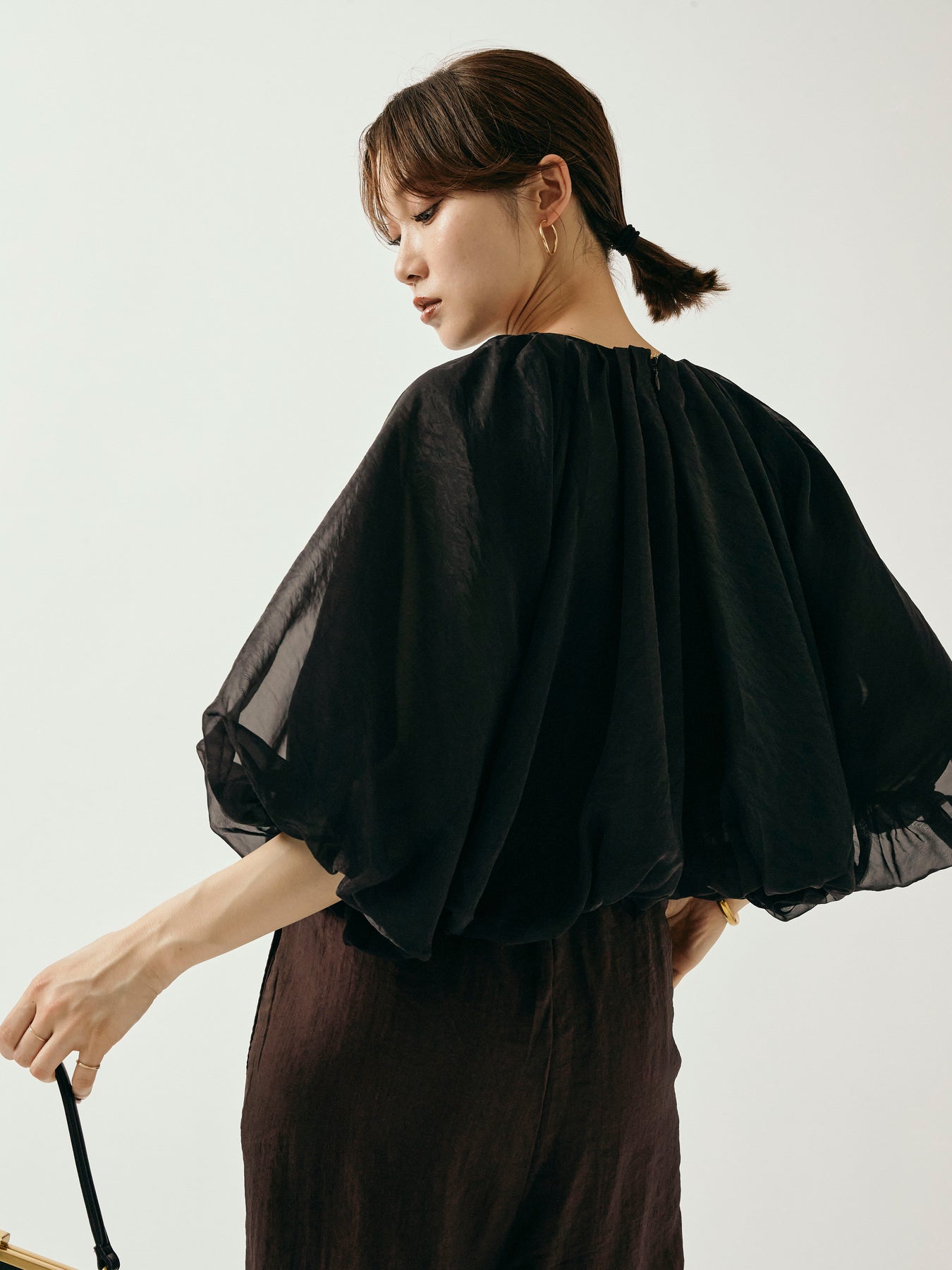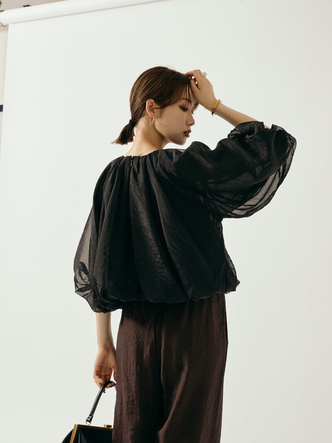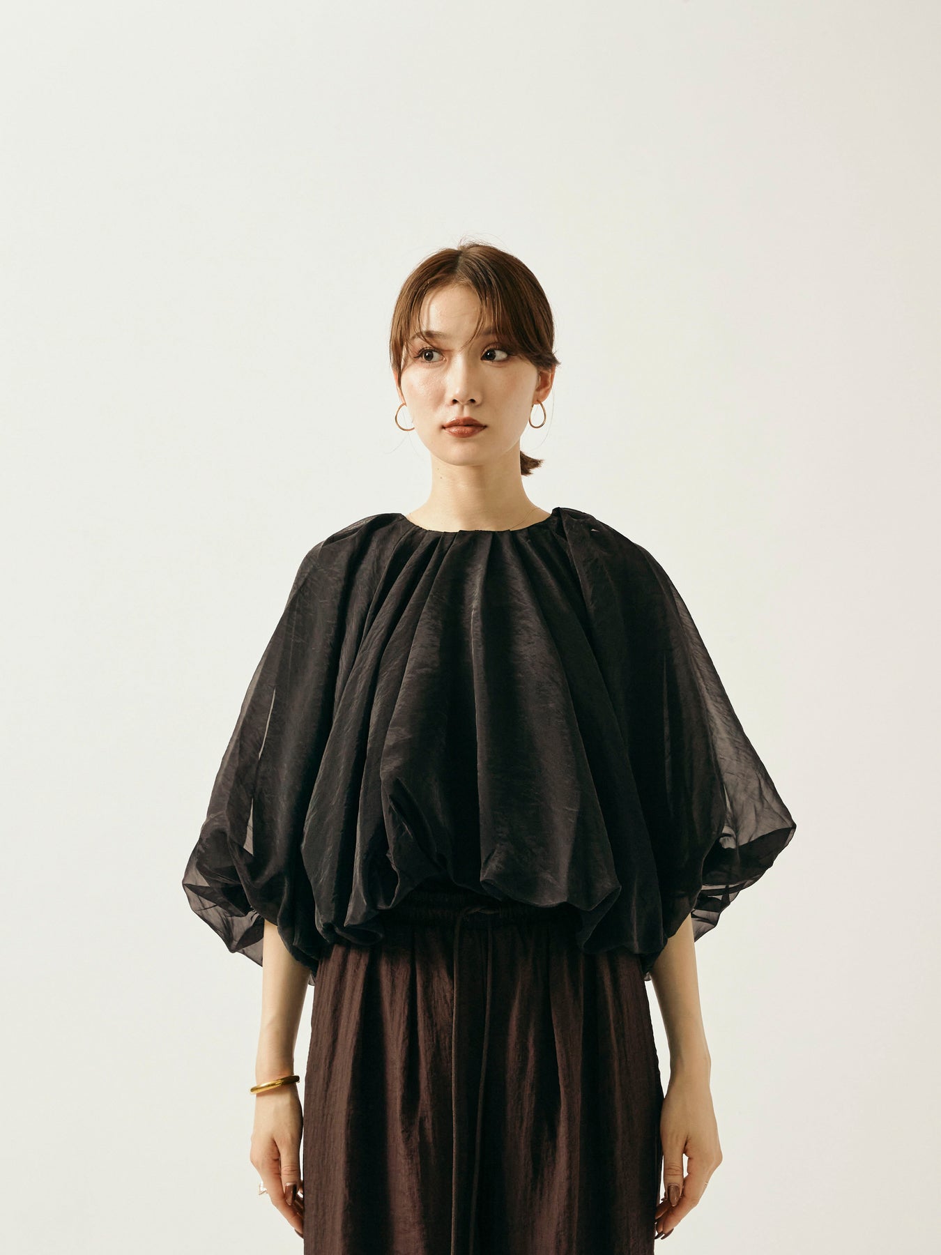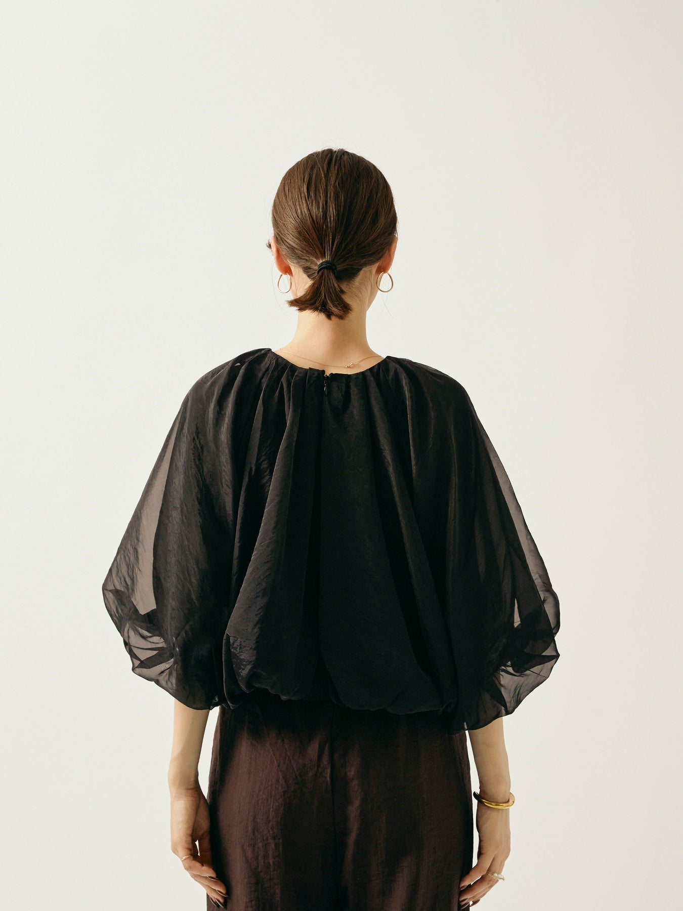 [予約]オーガンジーバルーンショートブラウス/ブラック
