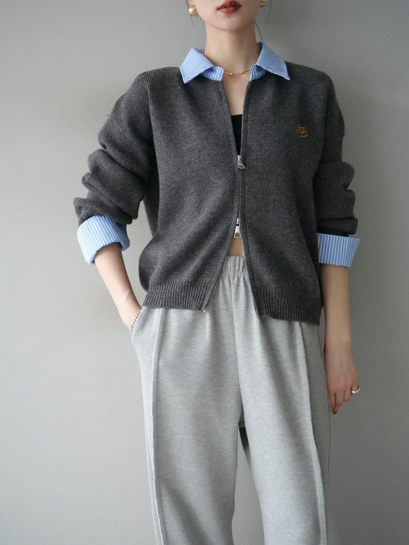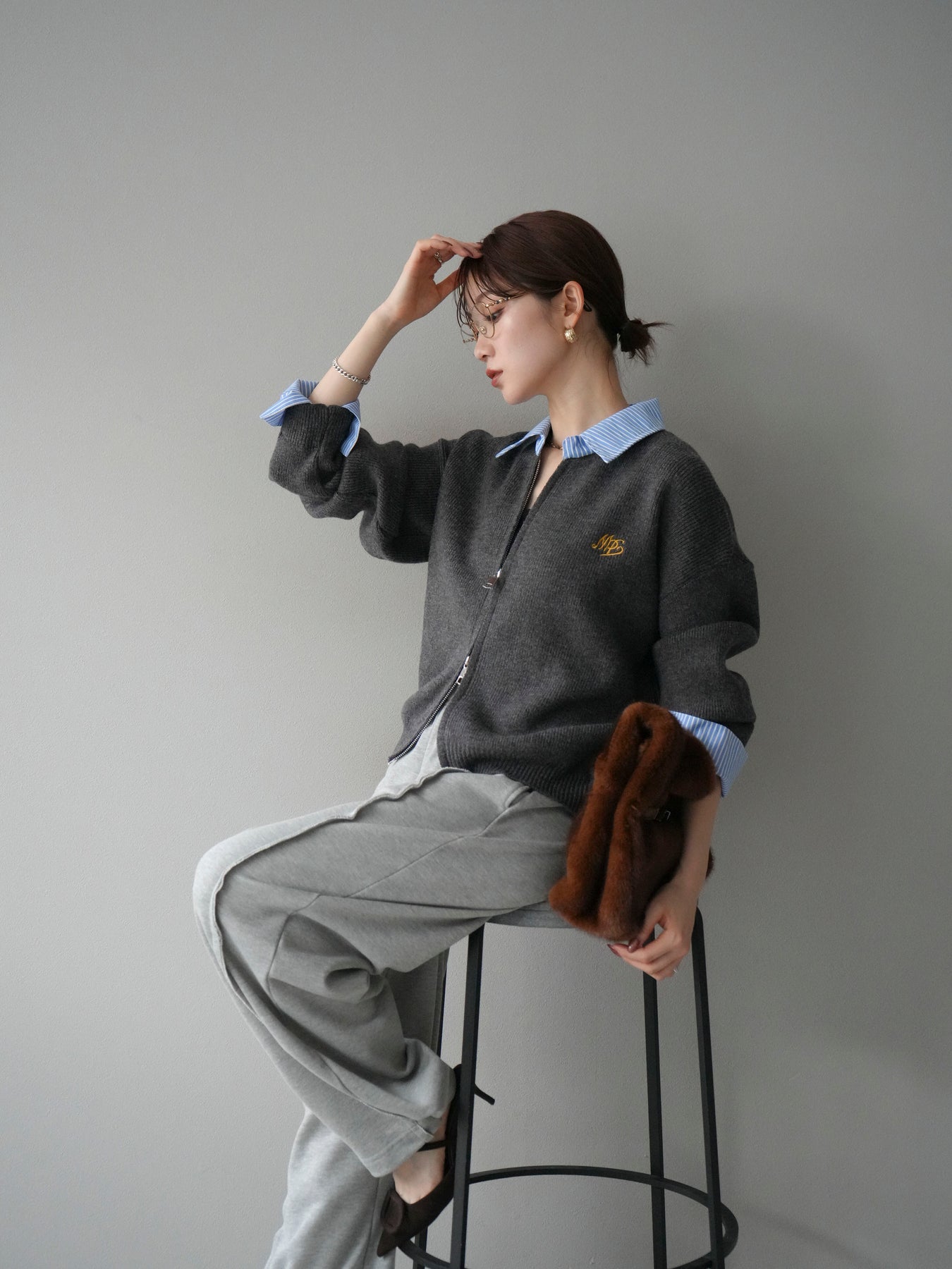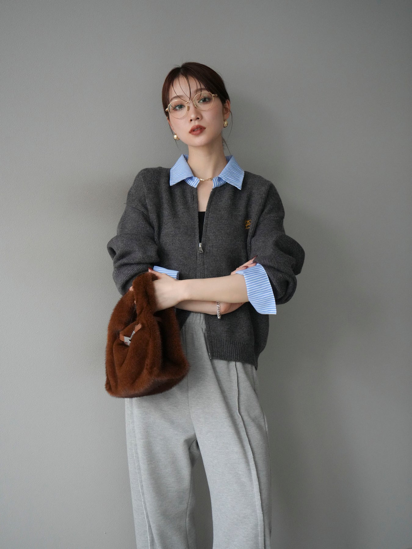 [予約]ストライプシャツレイヤードZIPニットカーディガン/darkgray