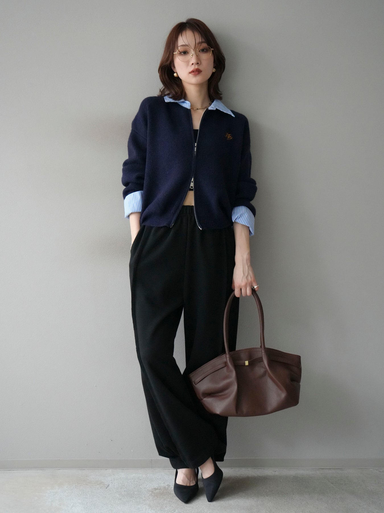 ストライプシャツを重ね着したようなレイヤードデザインが魅力のZIPニットカーディガン。 襟元や袖口から覗くシャツ生地が程よいきちんと感をプラスし、1枚でこなれたスタイルが完成します。 胸元の刺繍ロゴがさりげないアクセントとなり、カジュアルながらも上品な印象に。 ジップを開けて羽織りとしても、閉めてトップス風にも着られる万能アイテムです。 デニムやスラックス、スカートなど、どんなボトムとも相性の良い一枚です。 ※ボトムス、キャミソール(インナー)以外の商品は一律でインナーは付属していません。