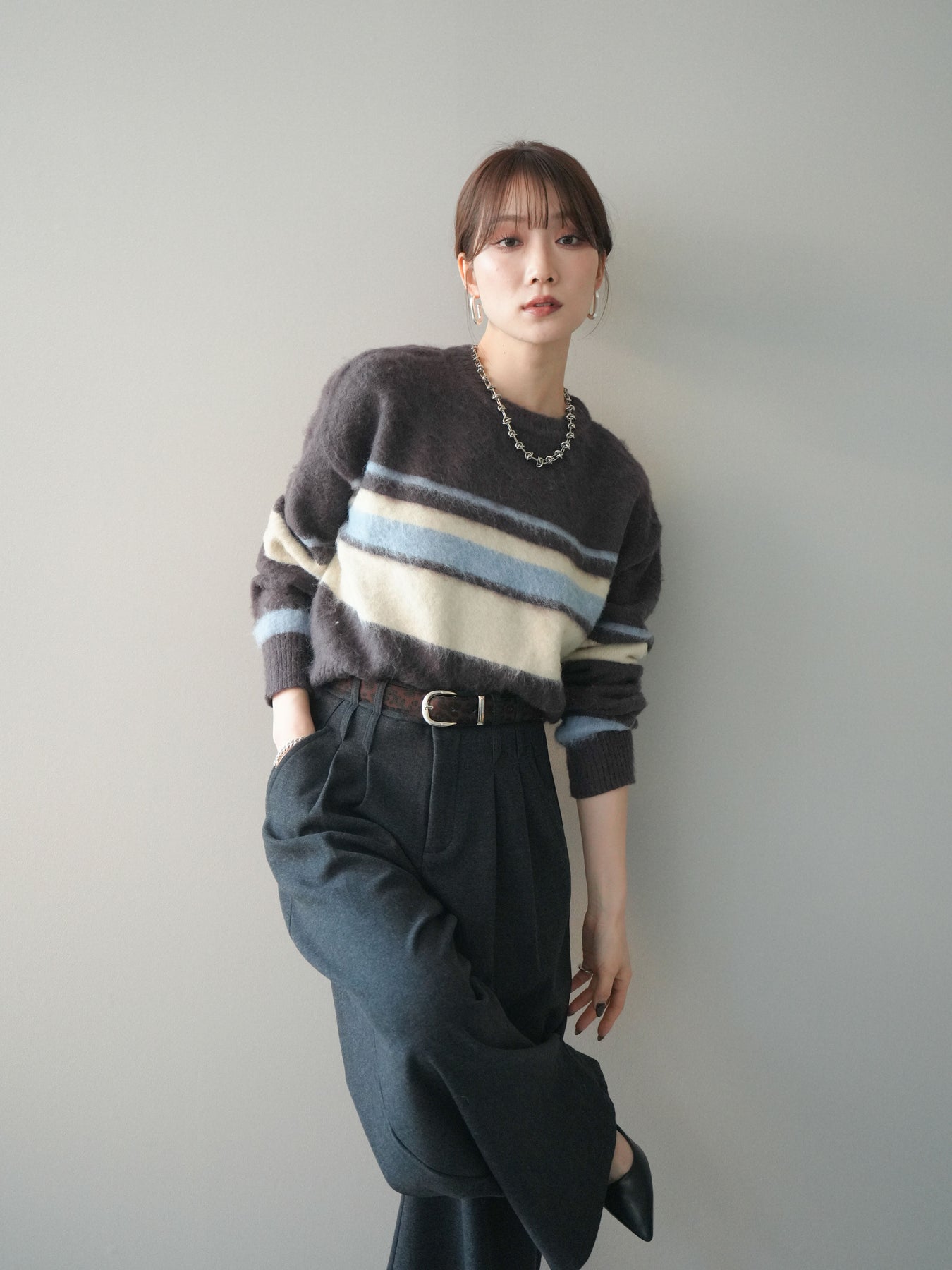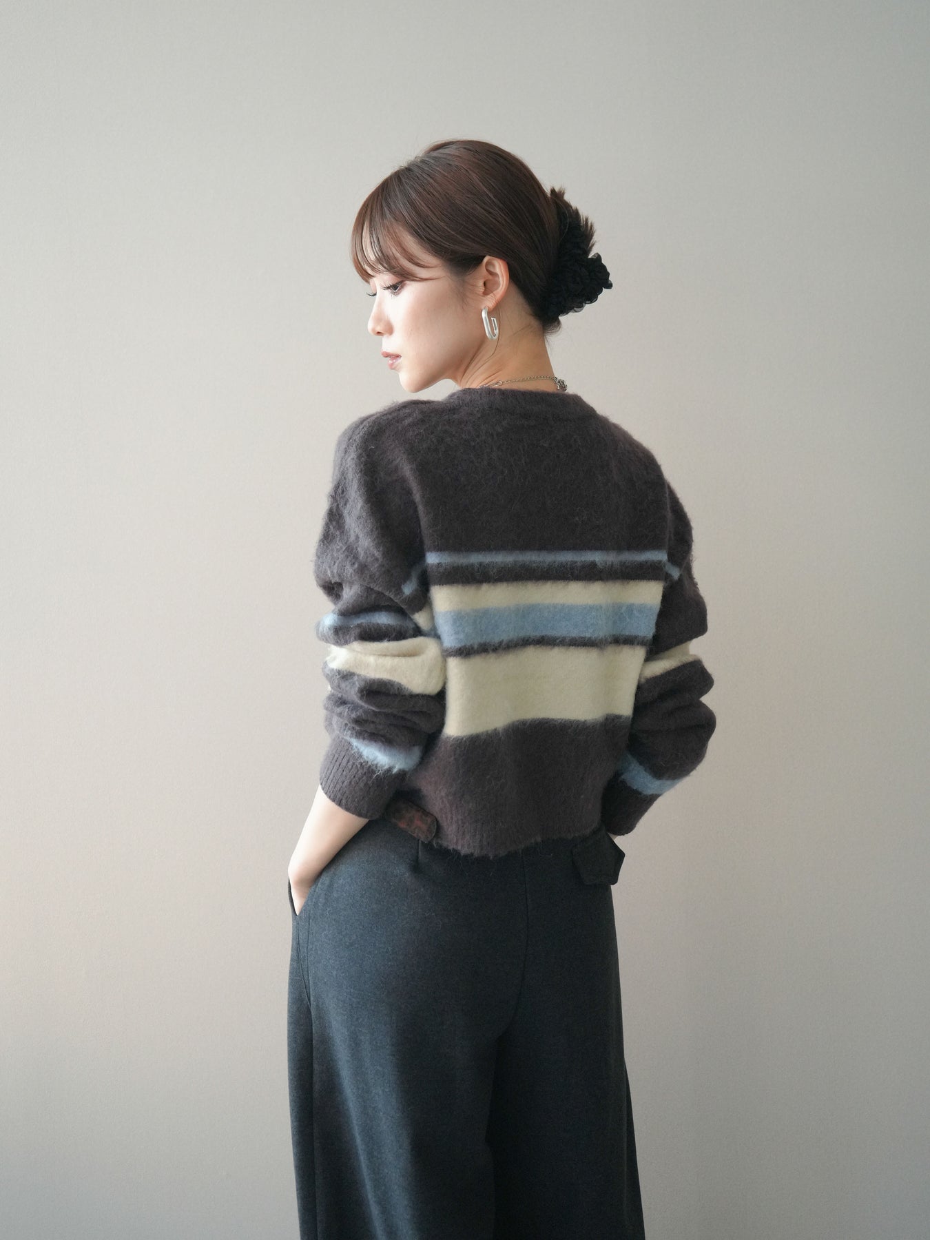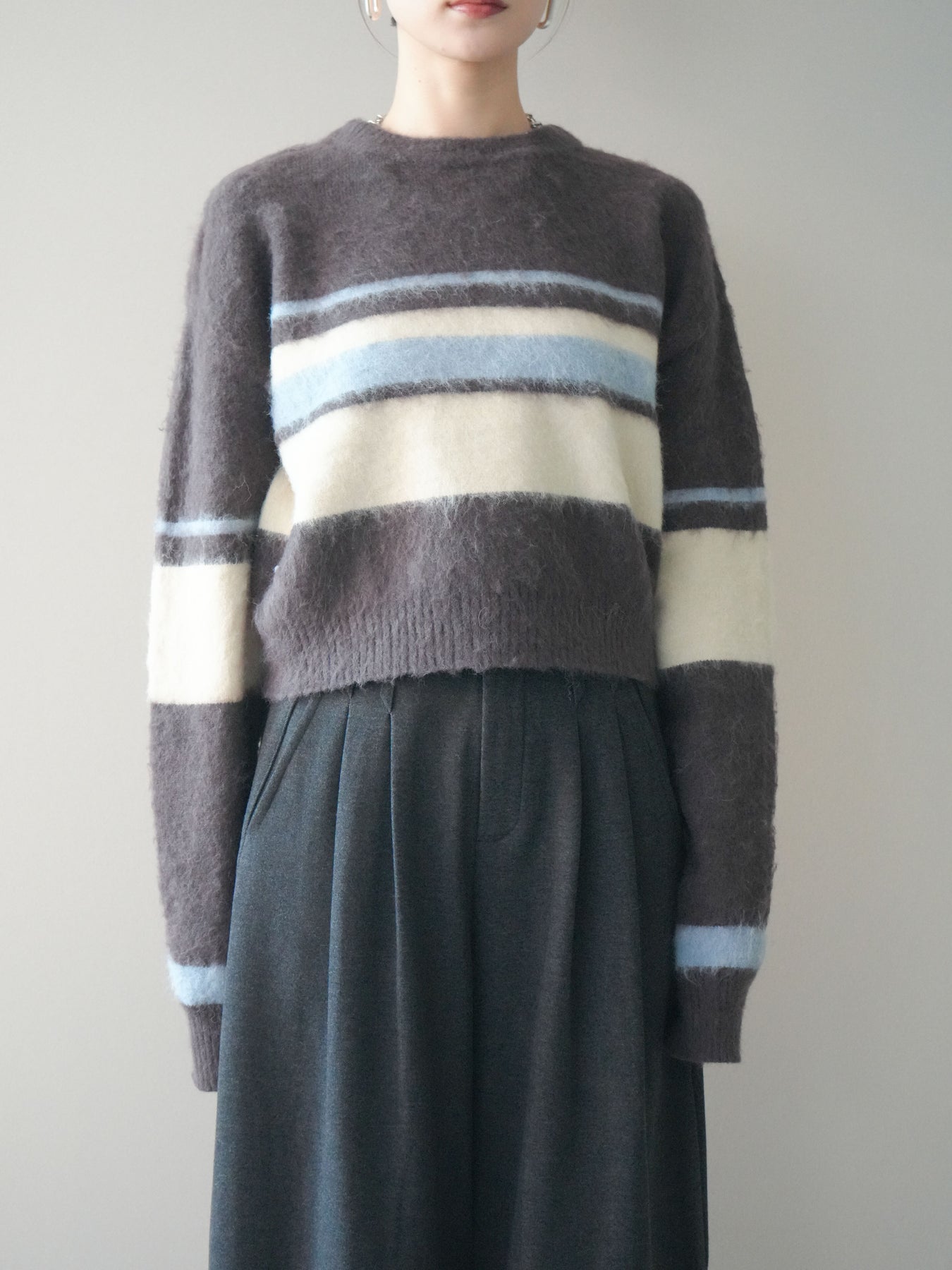 [予約]ソフトタッチボーダークロップドニットプルオーバー/brown