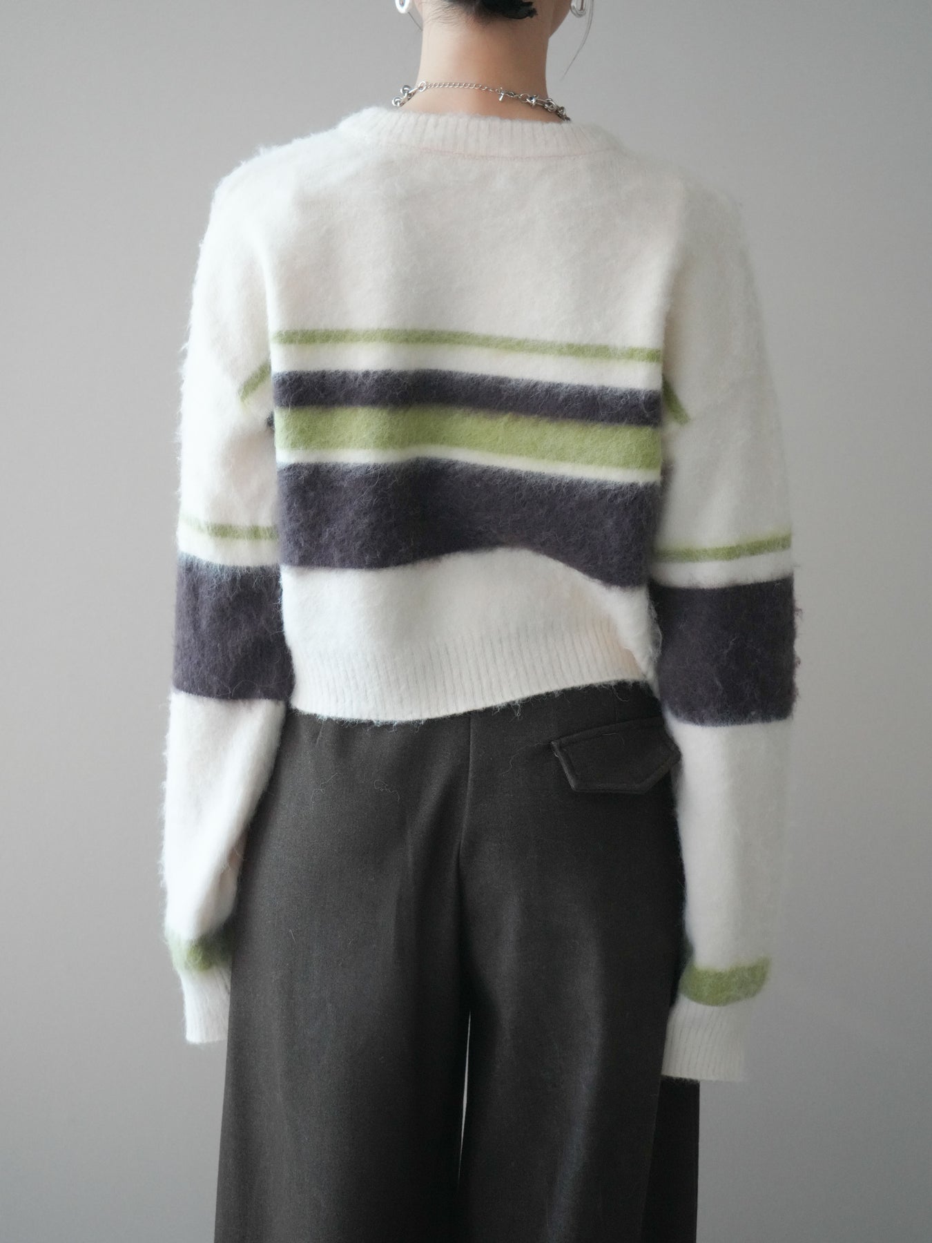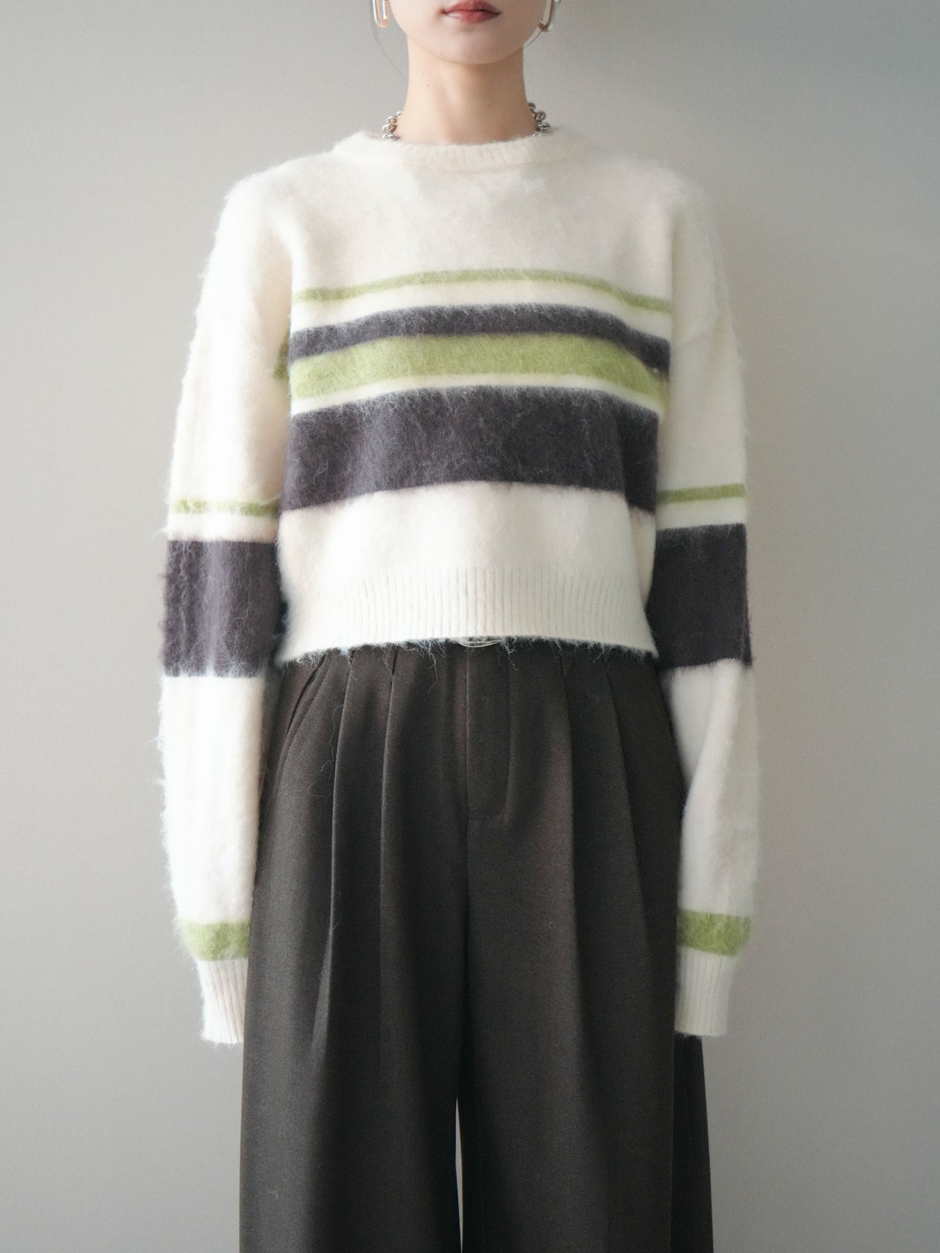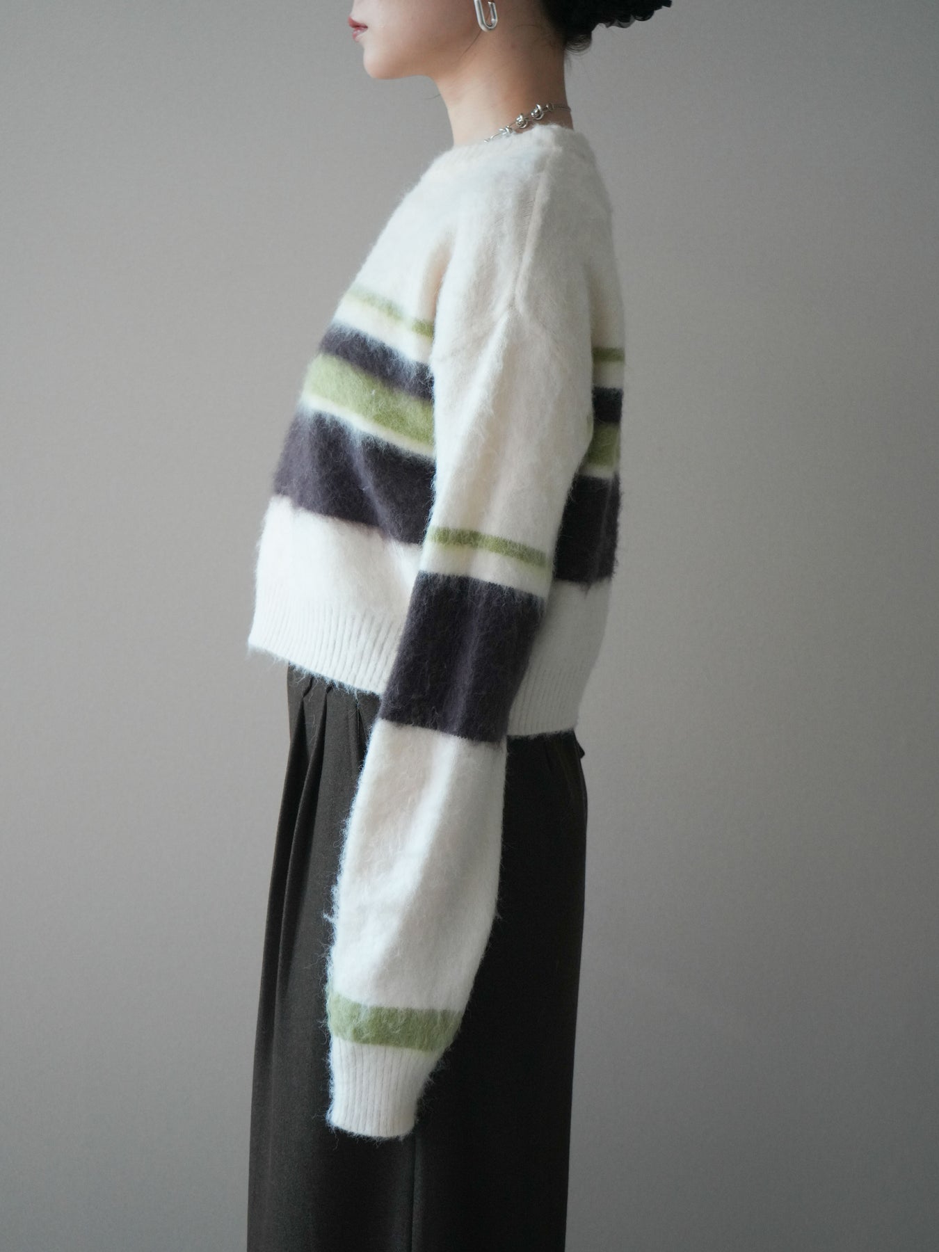 [予約]ソフトタッチボーダークロップドニットプルオーバー/ivory