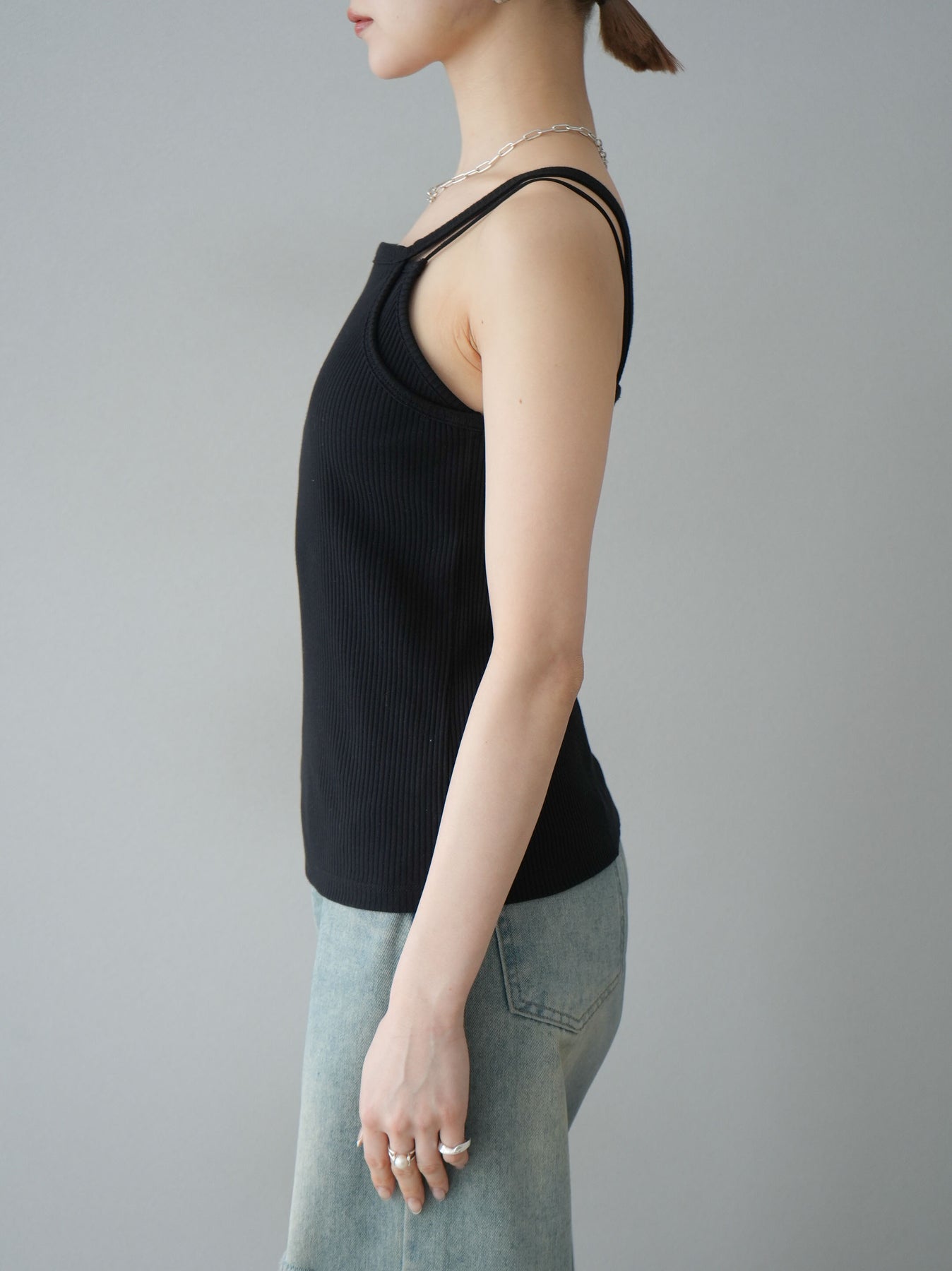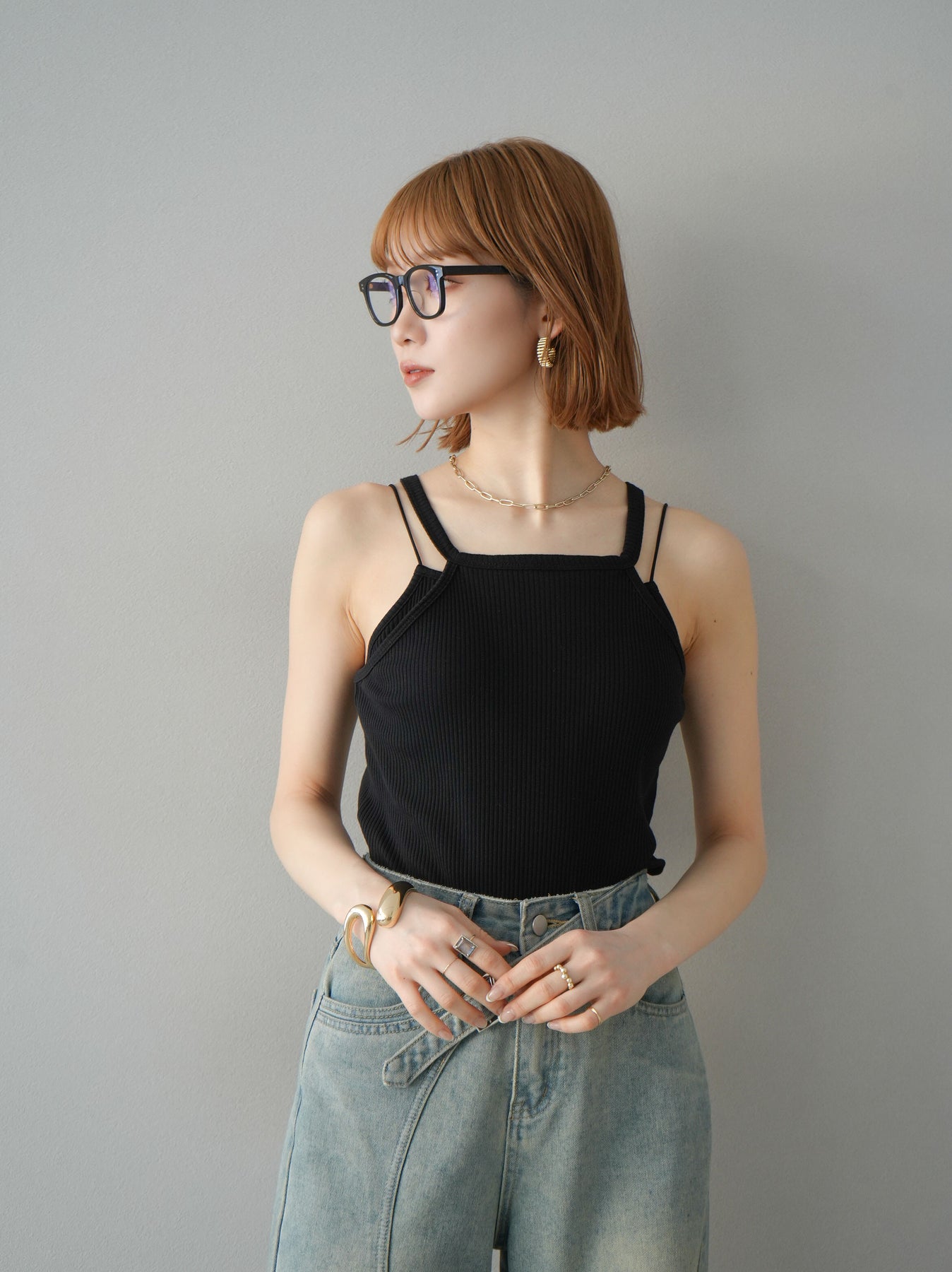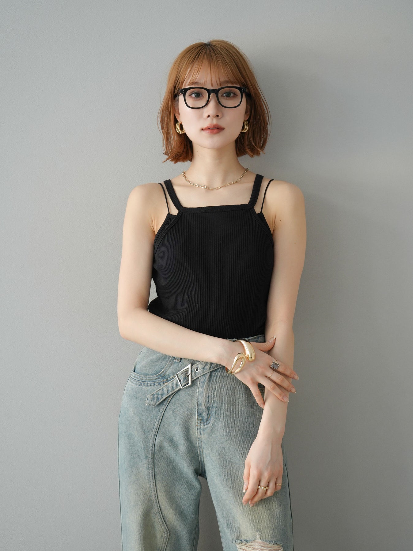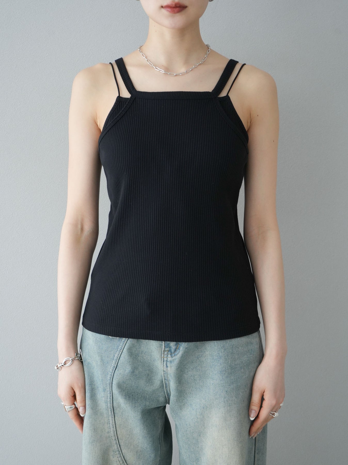 [予約]レイヤードデザインカットリブブラキャミソール/ブラック
