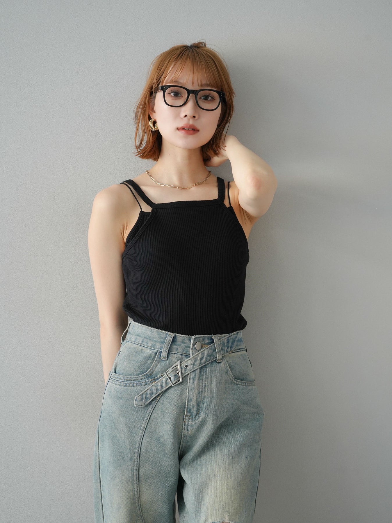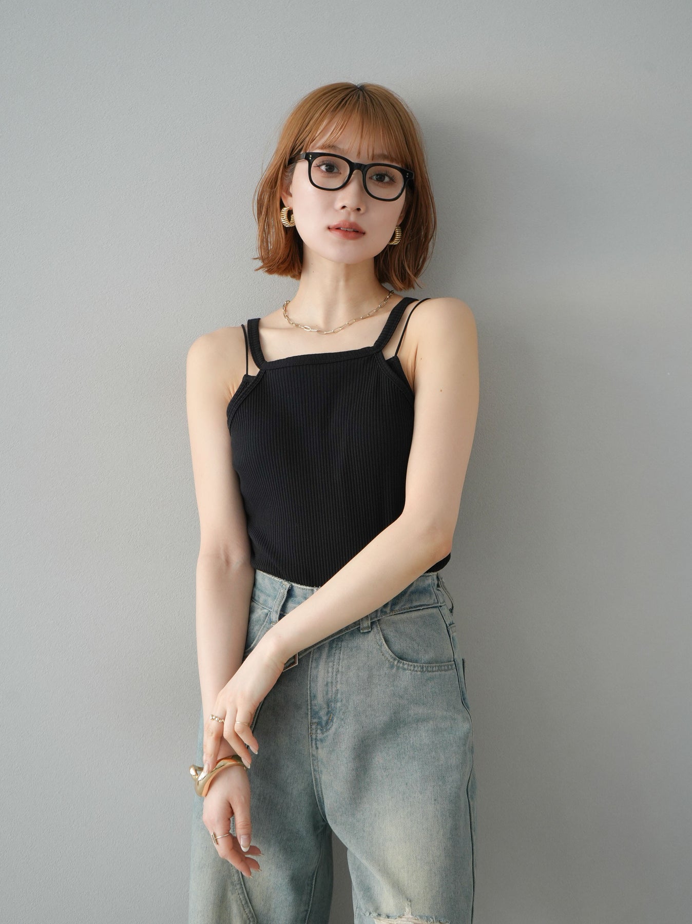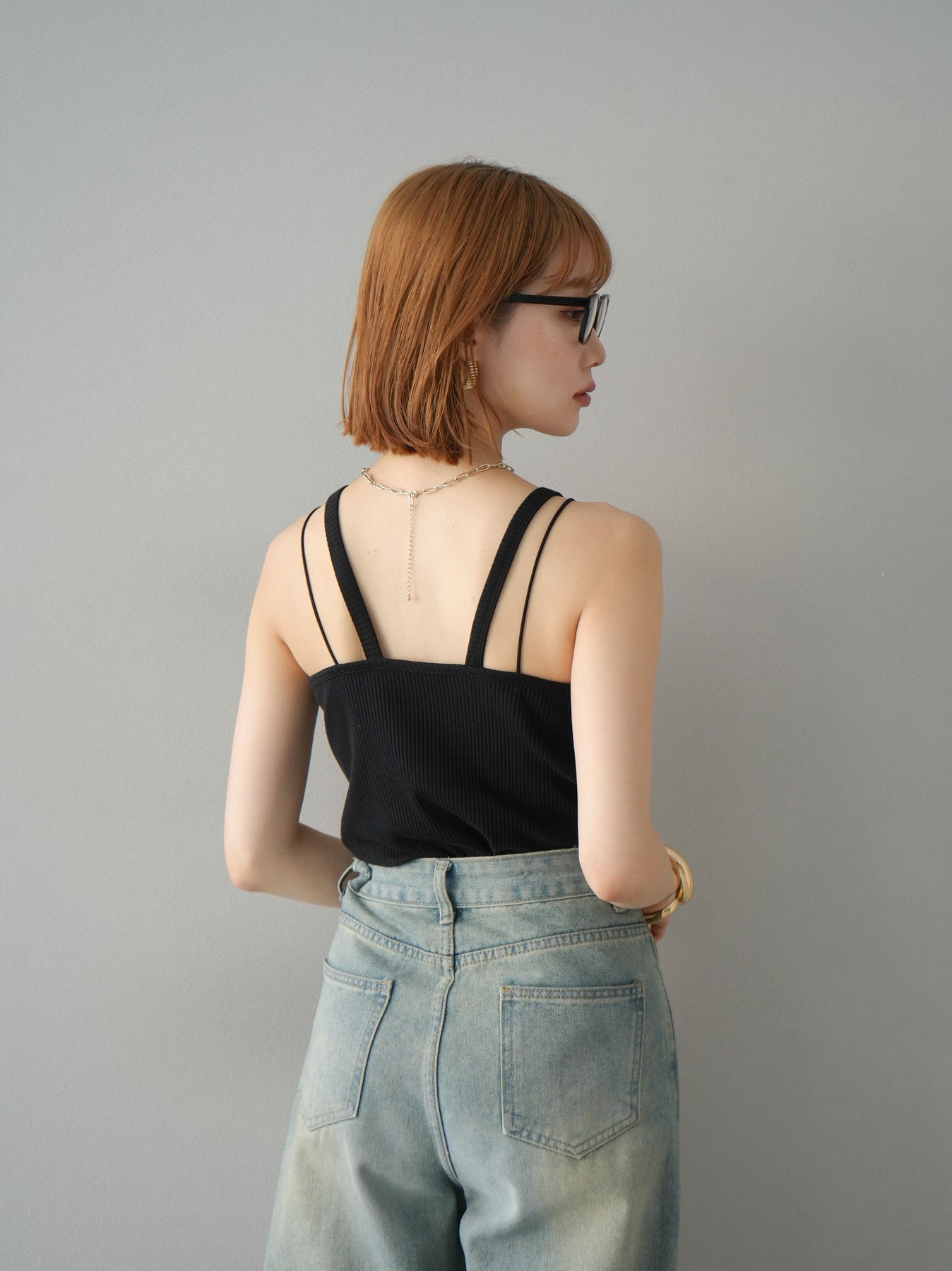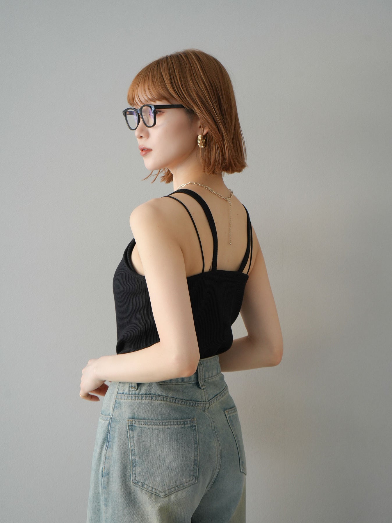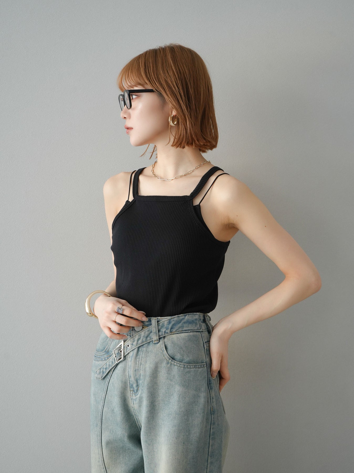 [予約]レイヤードデザインカットリブブラキャミソール/ブラック