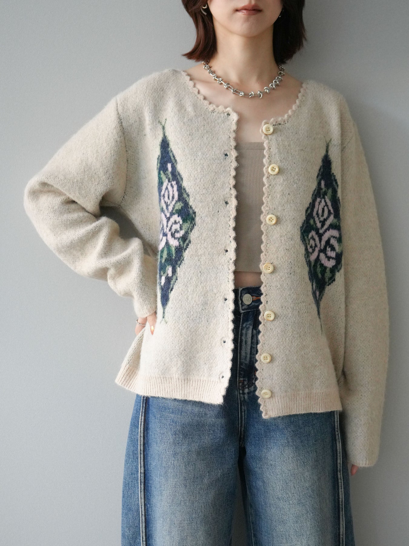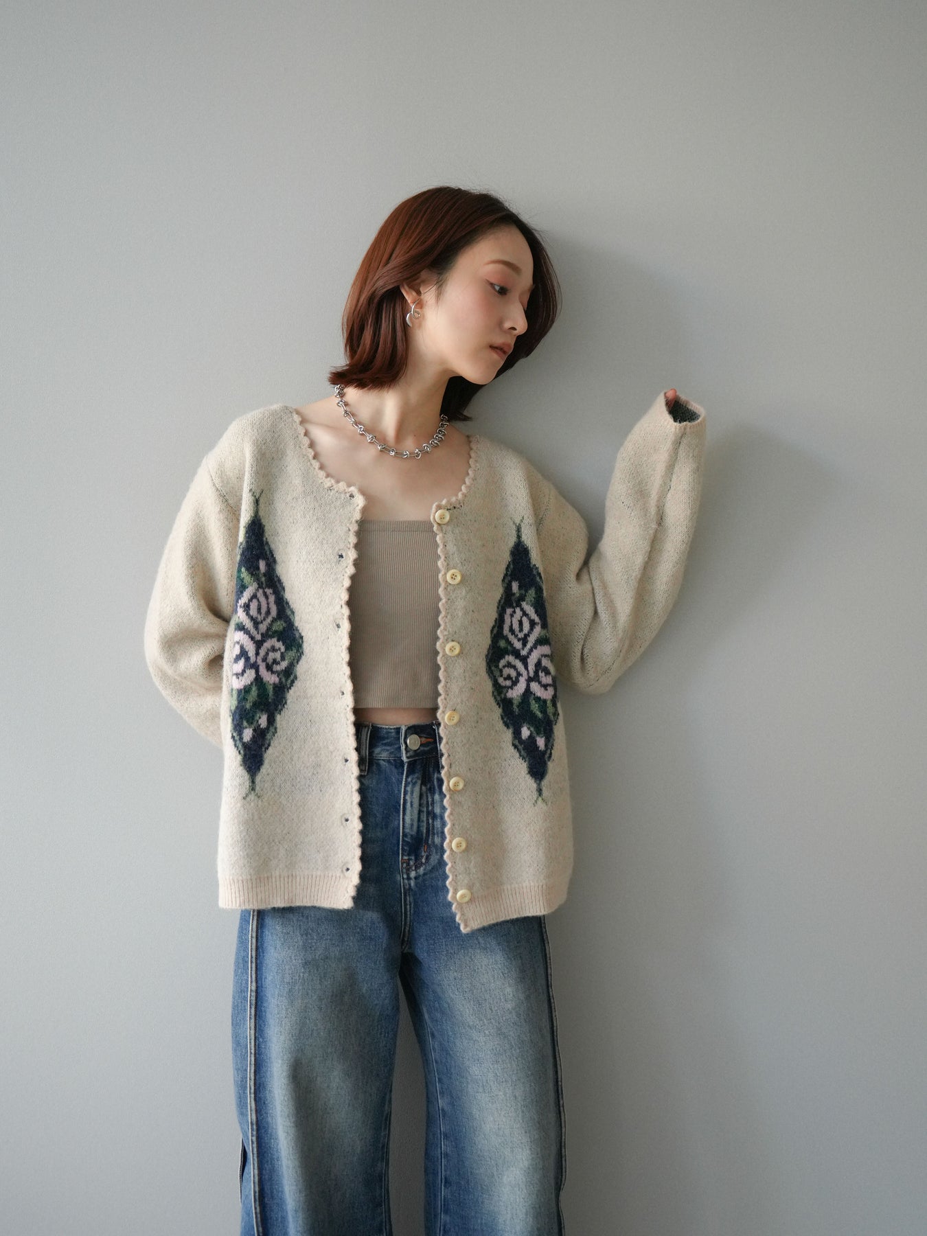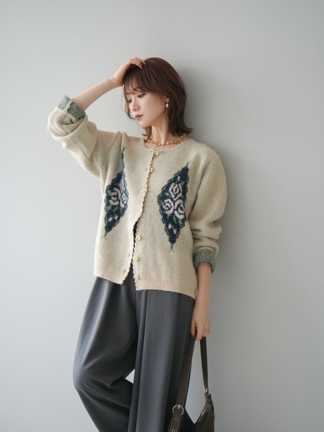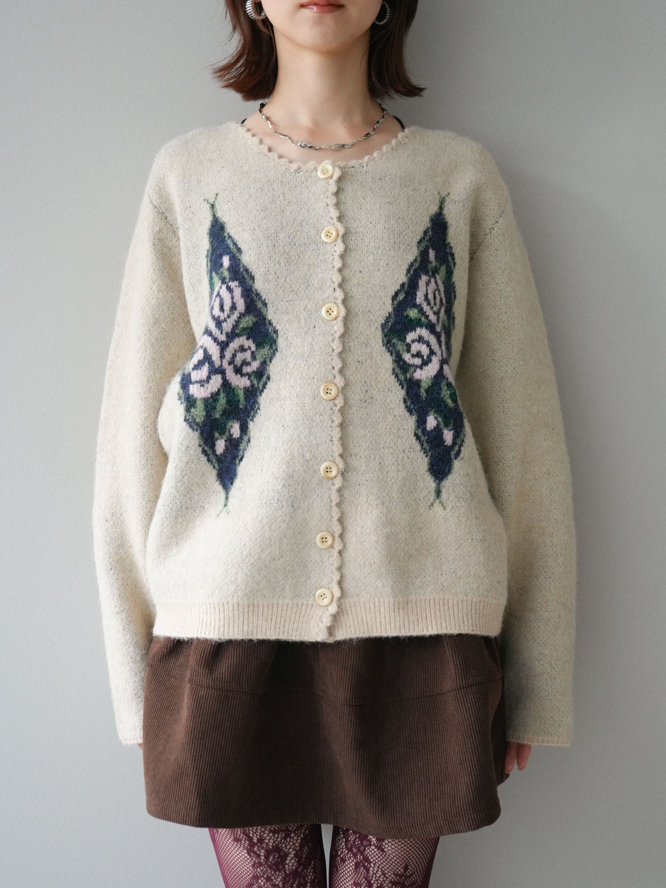 [予約]アンティークフラワージャガードニットカーディガンに関連する商品を探す↓