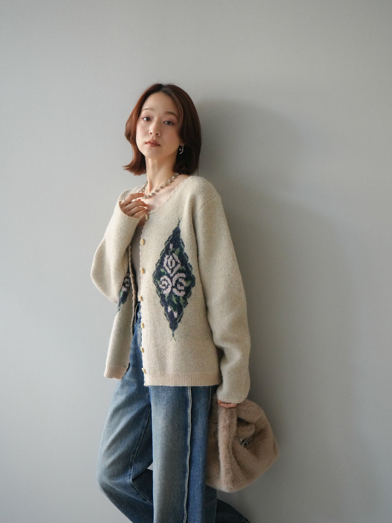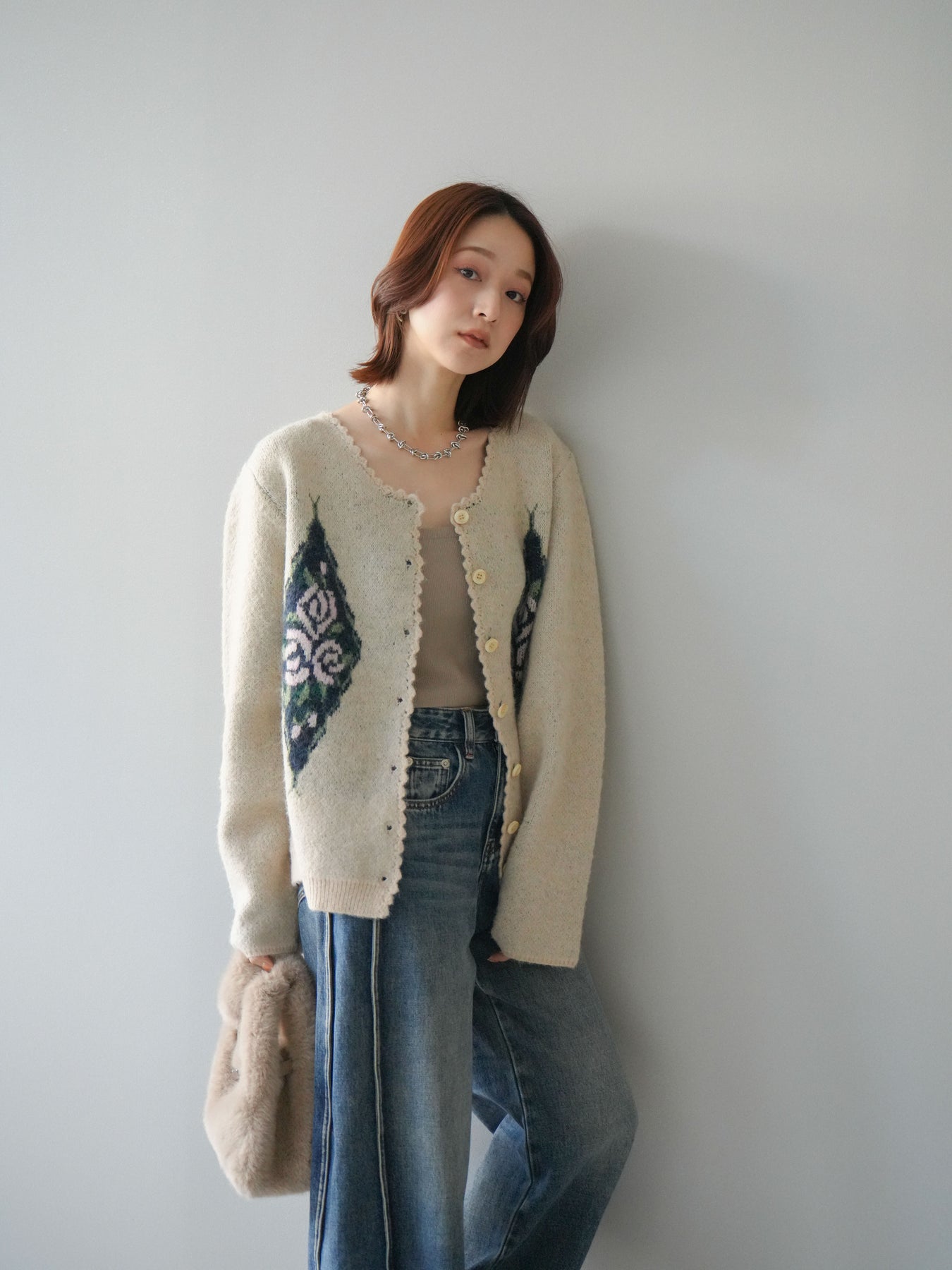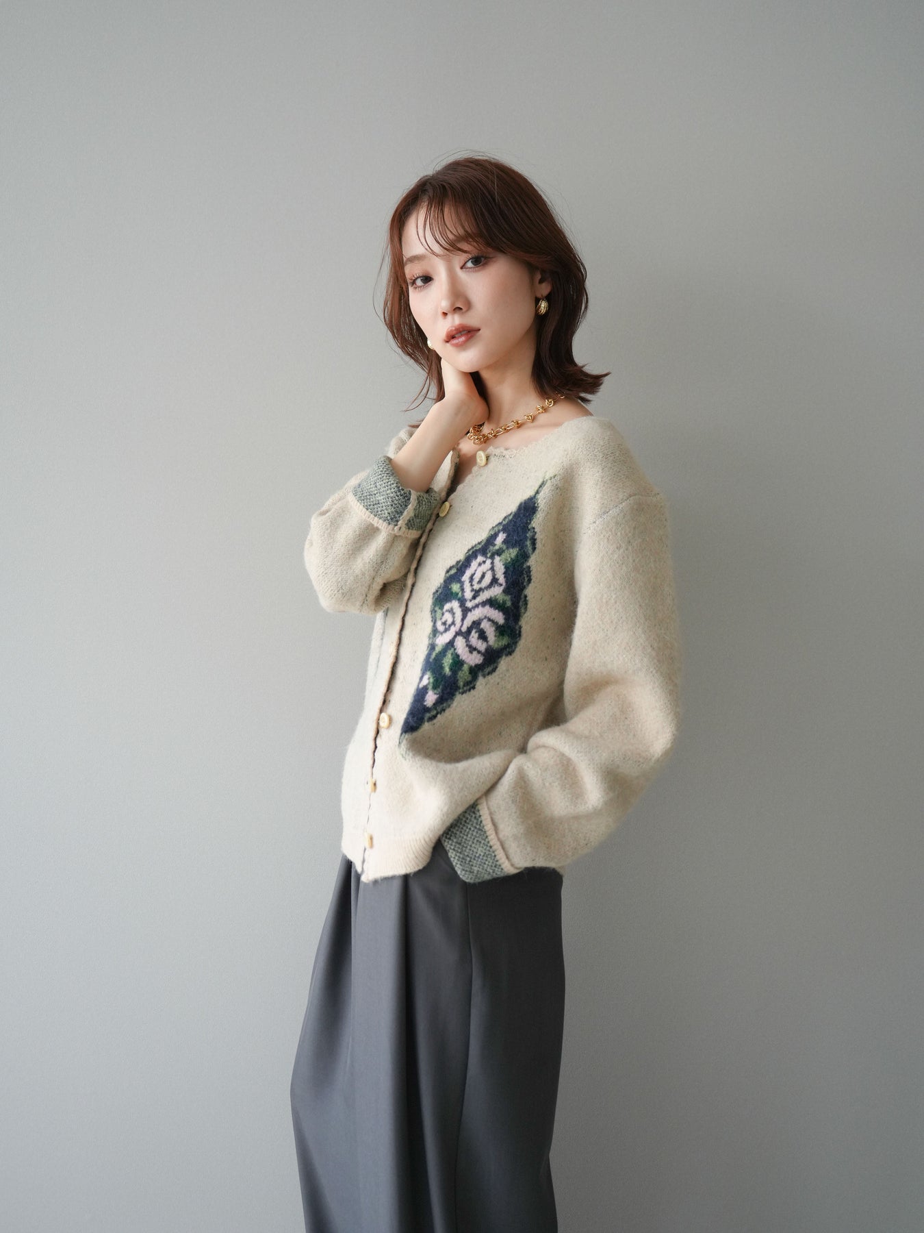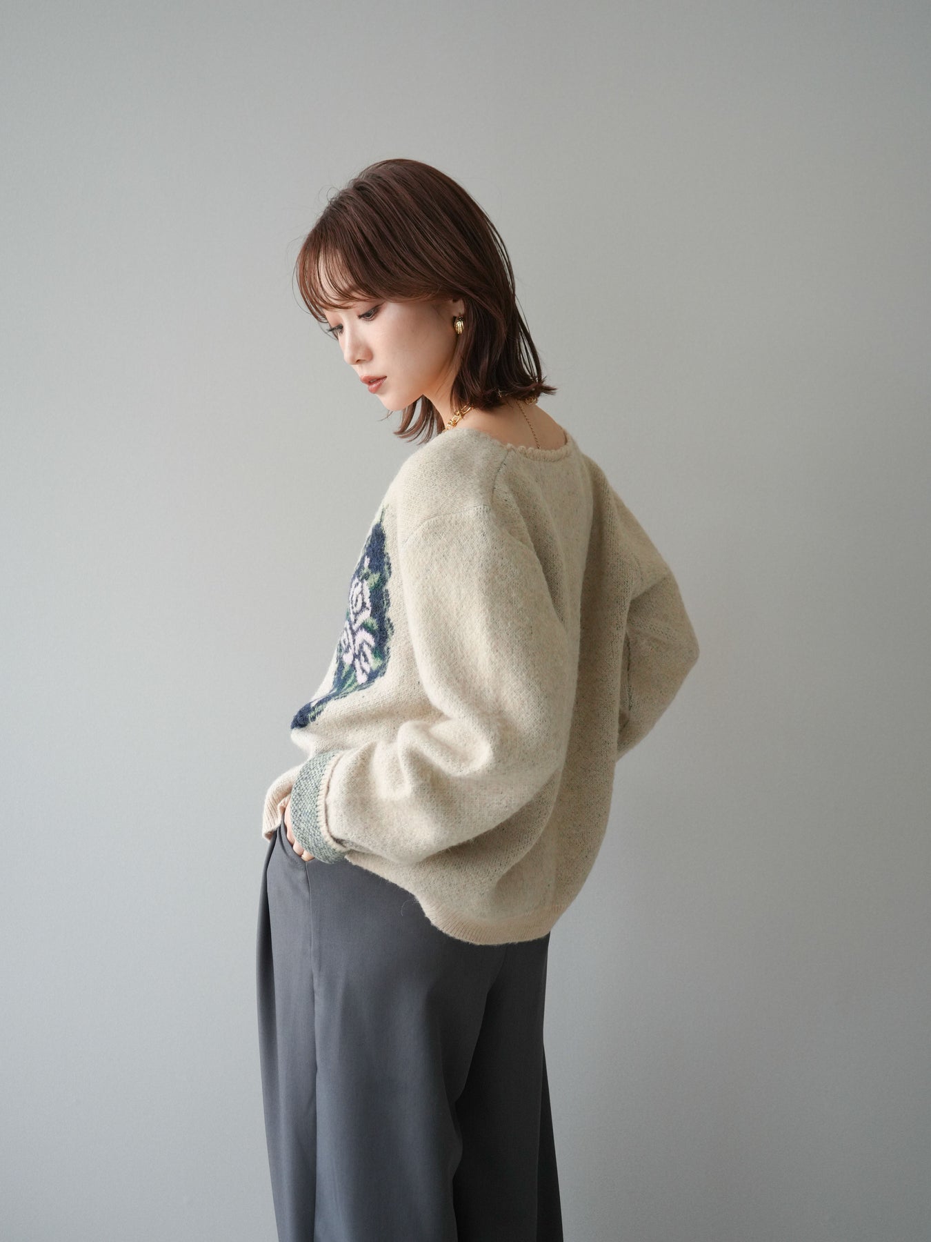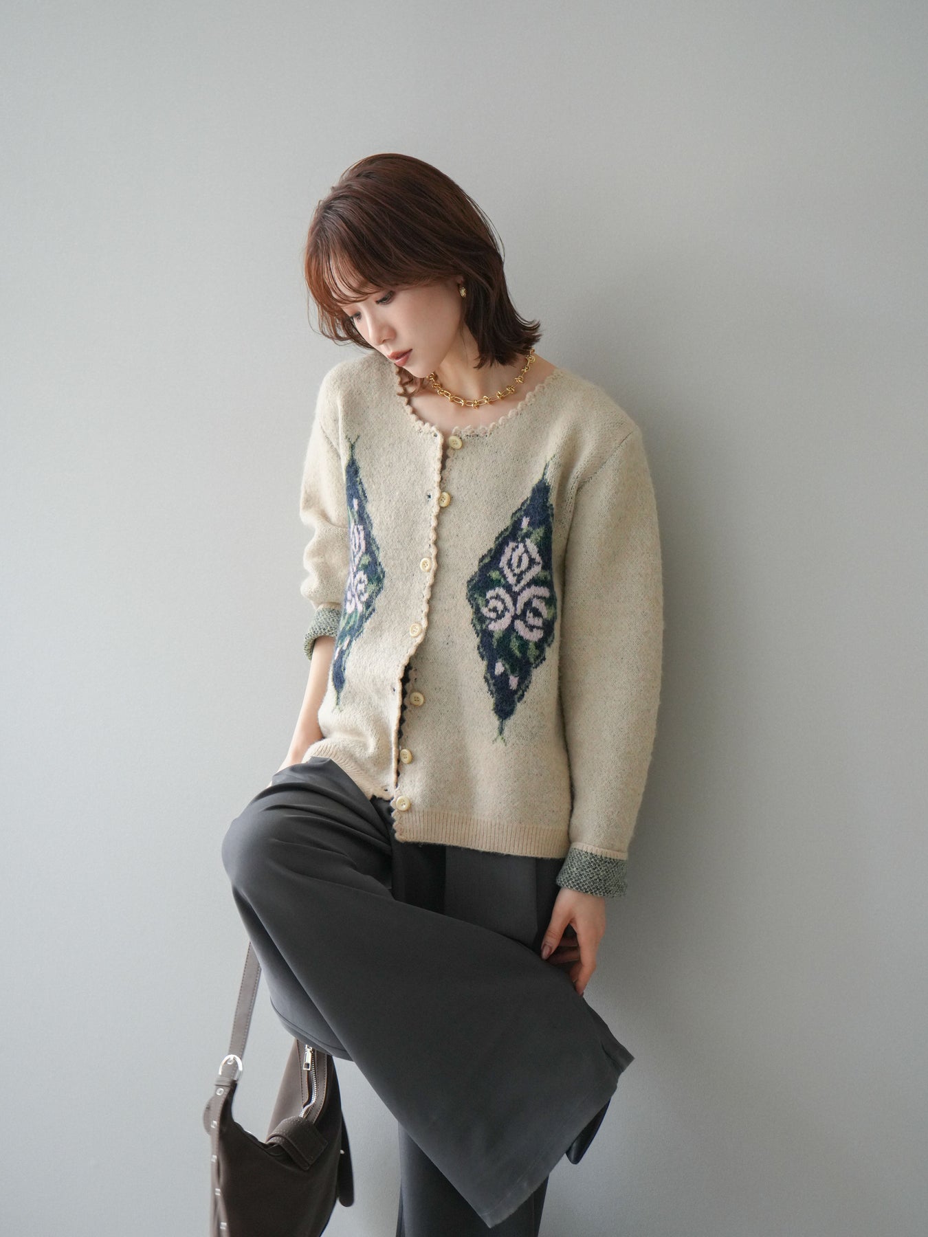 [予約]アンティークフラワージャガードニットカーディガンに関連する商品を探す↓