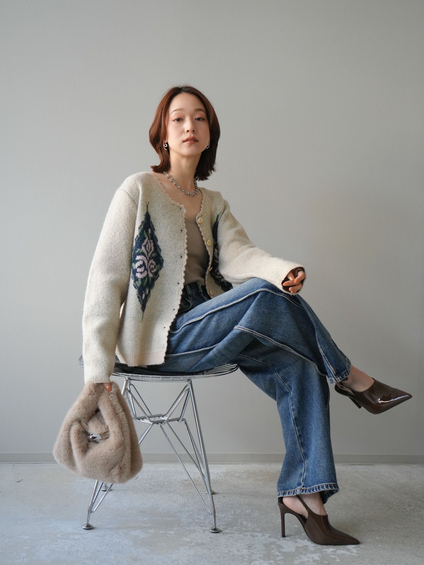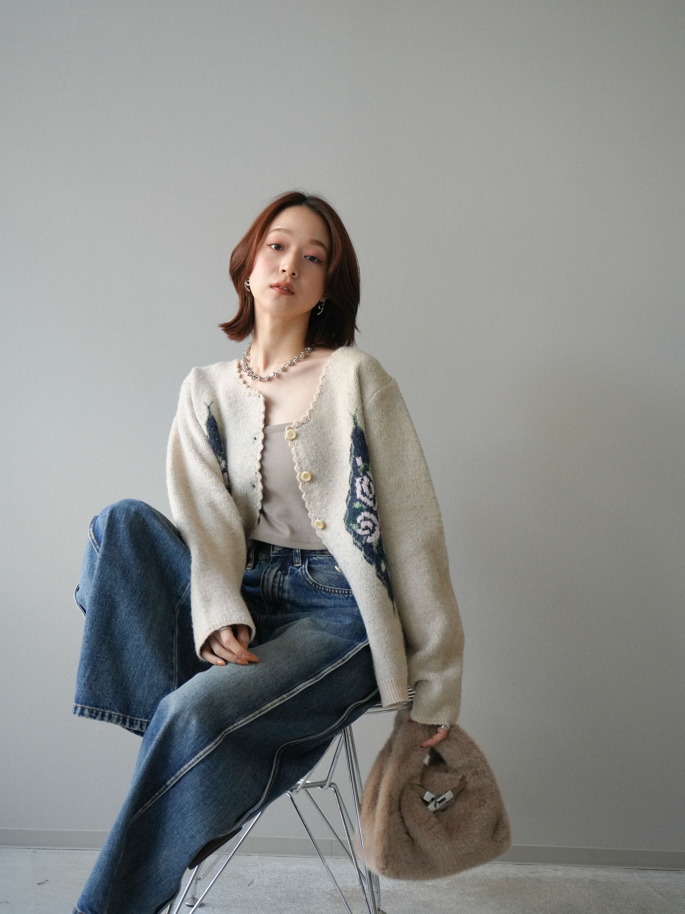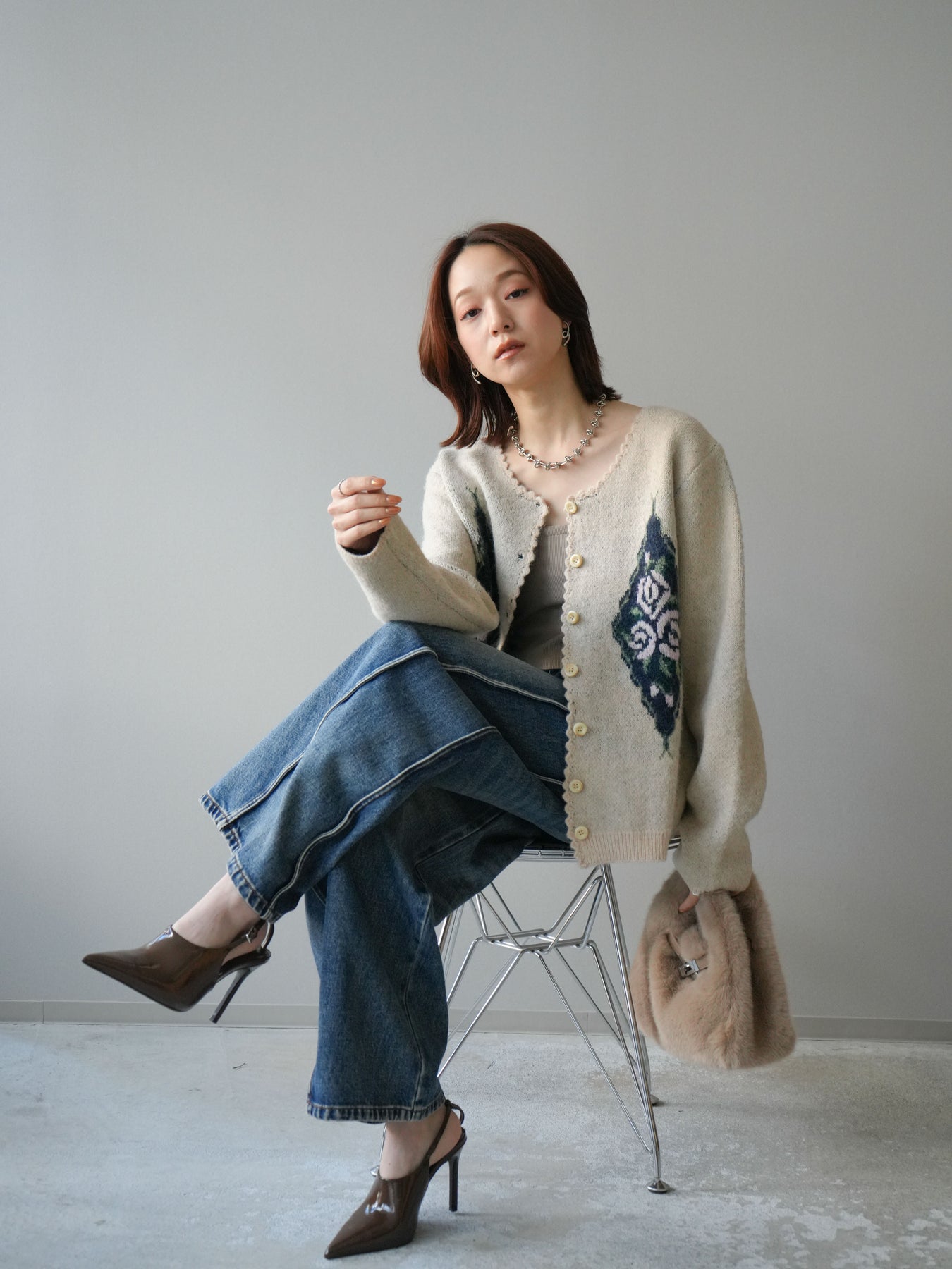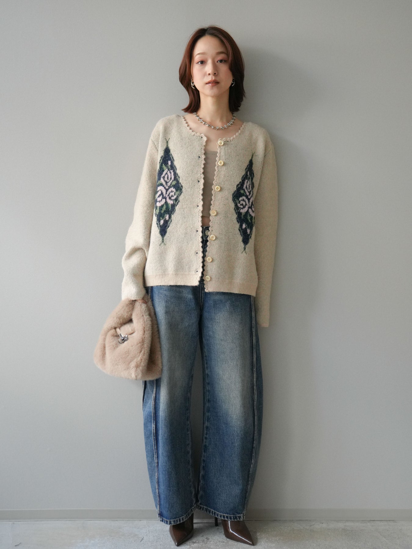 [予約]アンティークフラワージャガードニットカーディガンに関連する商品を探す↓