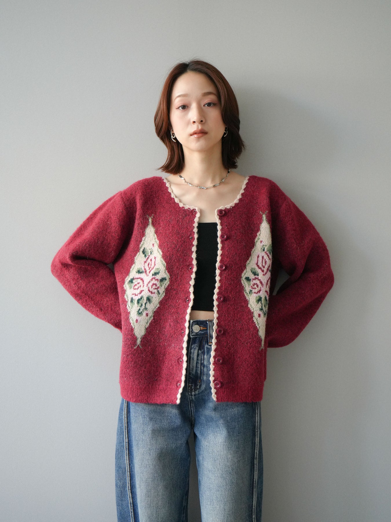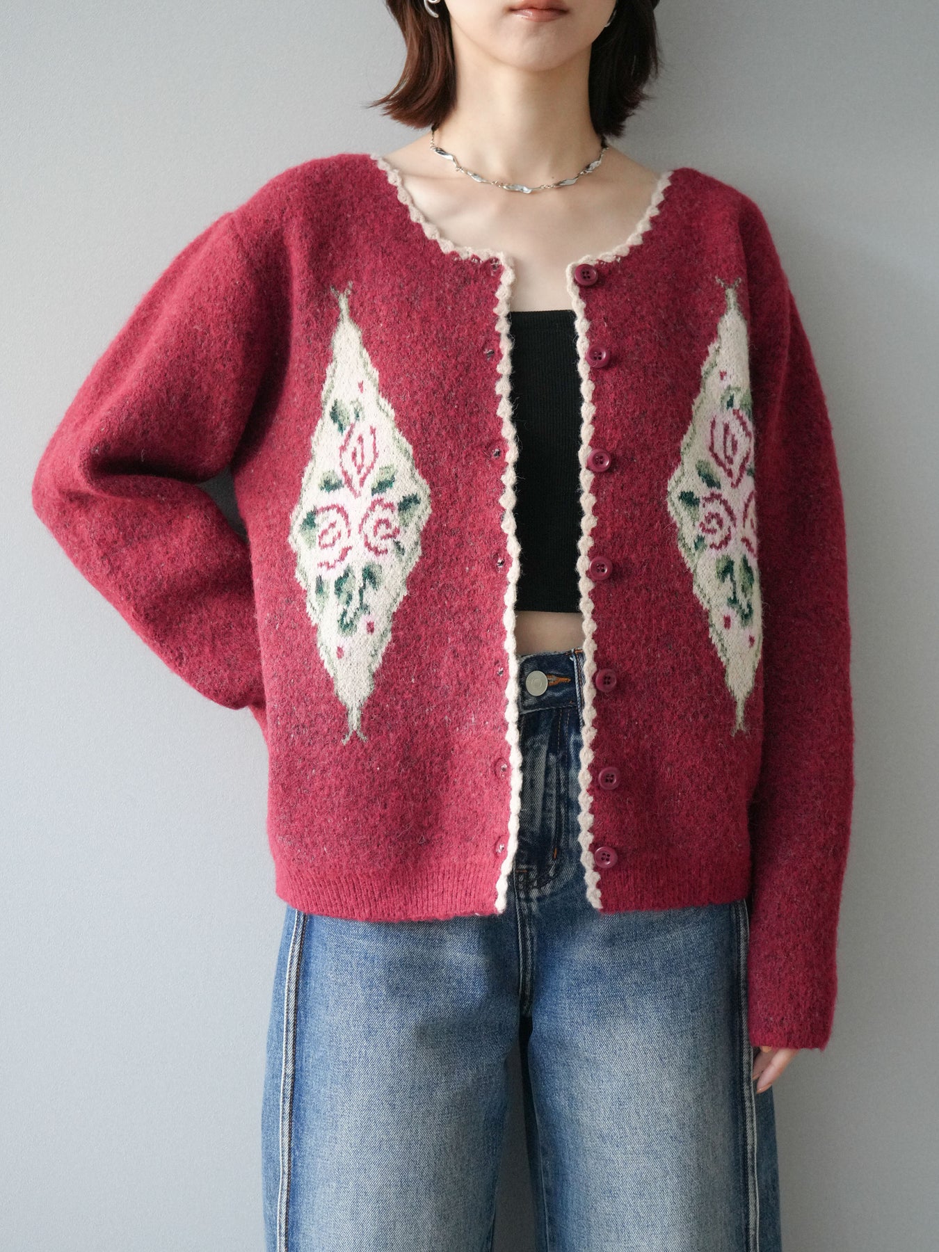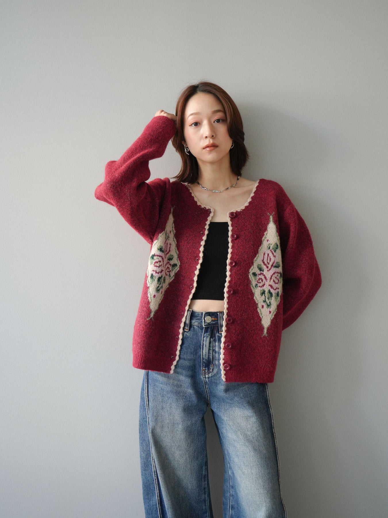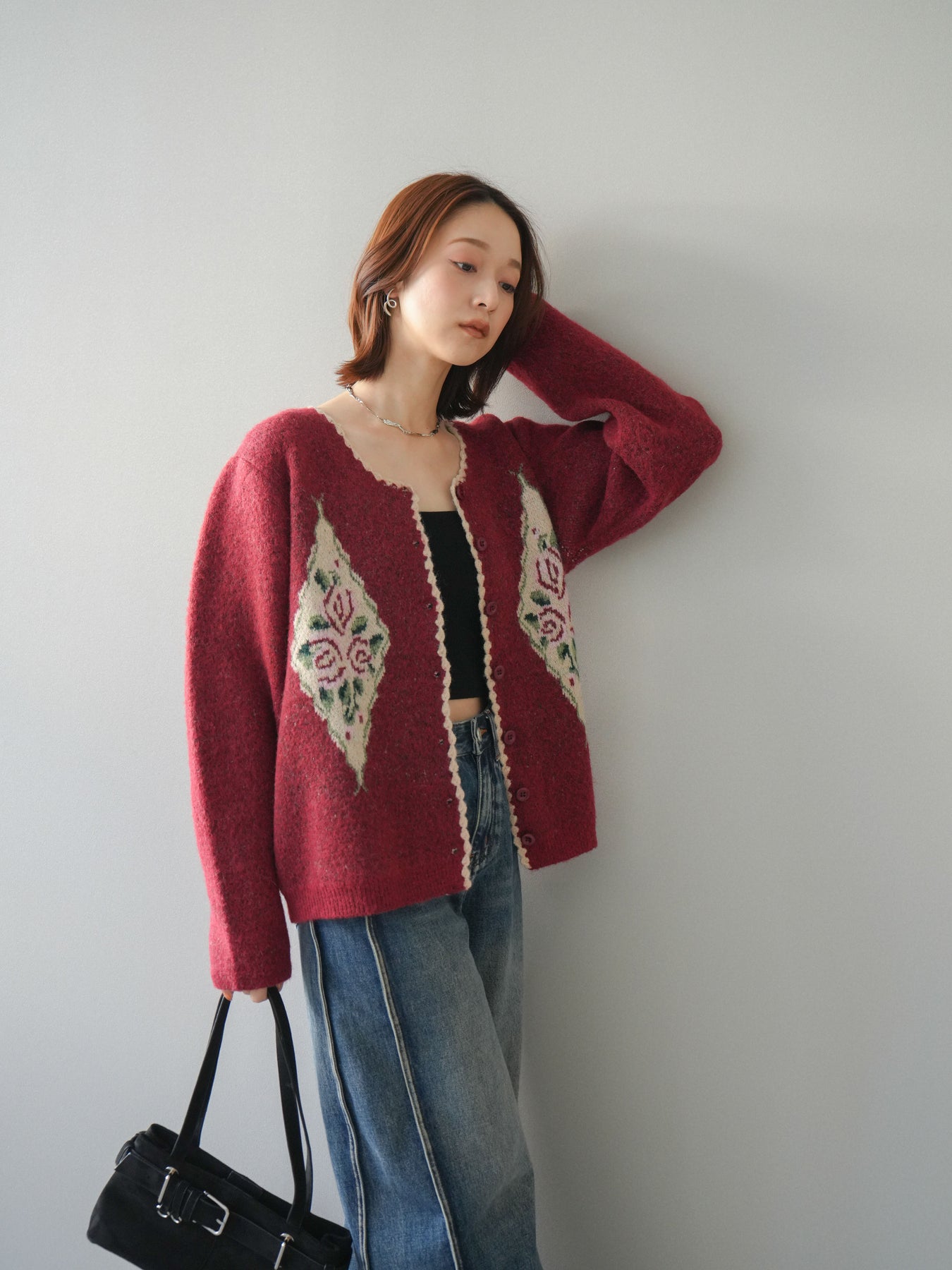 [予約]アンティークフラワージャガードニットカーディガンに関連する商品を探す↓