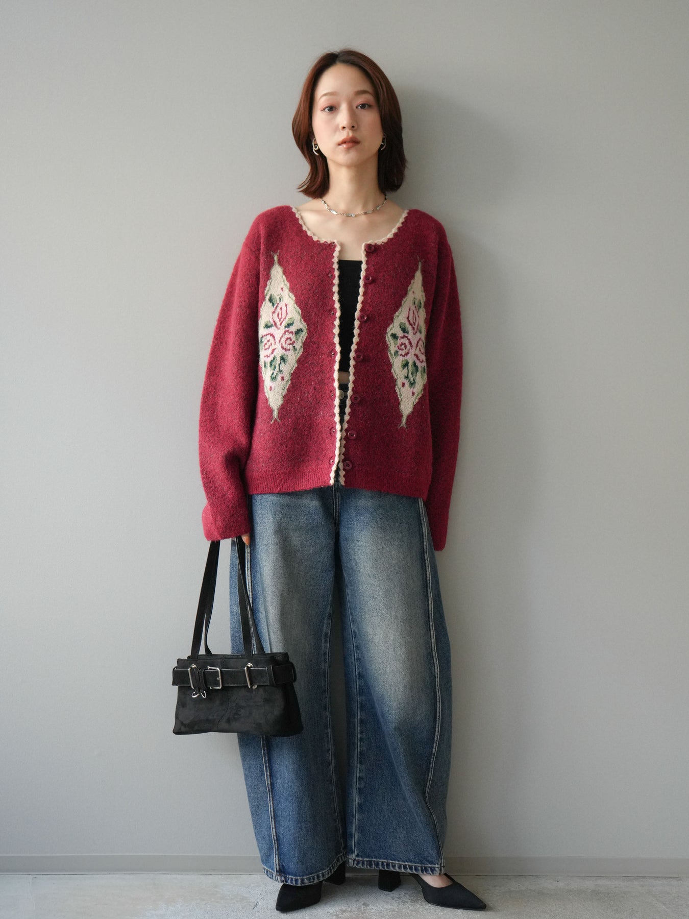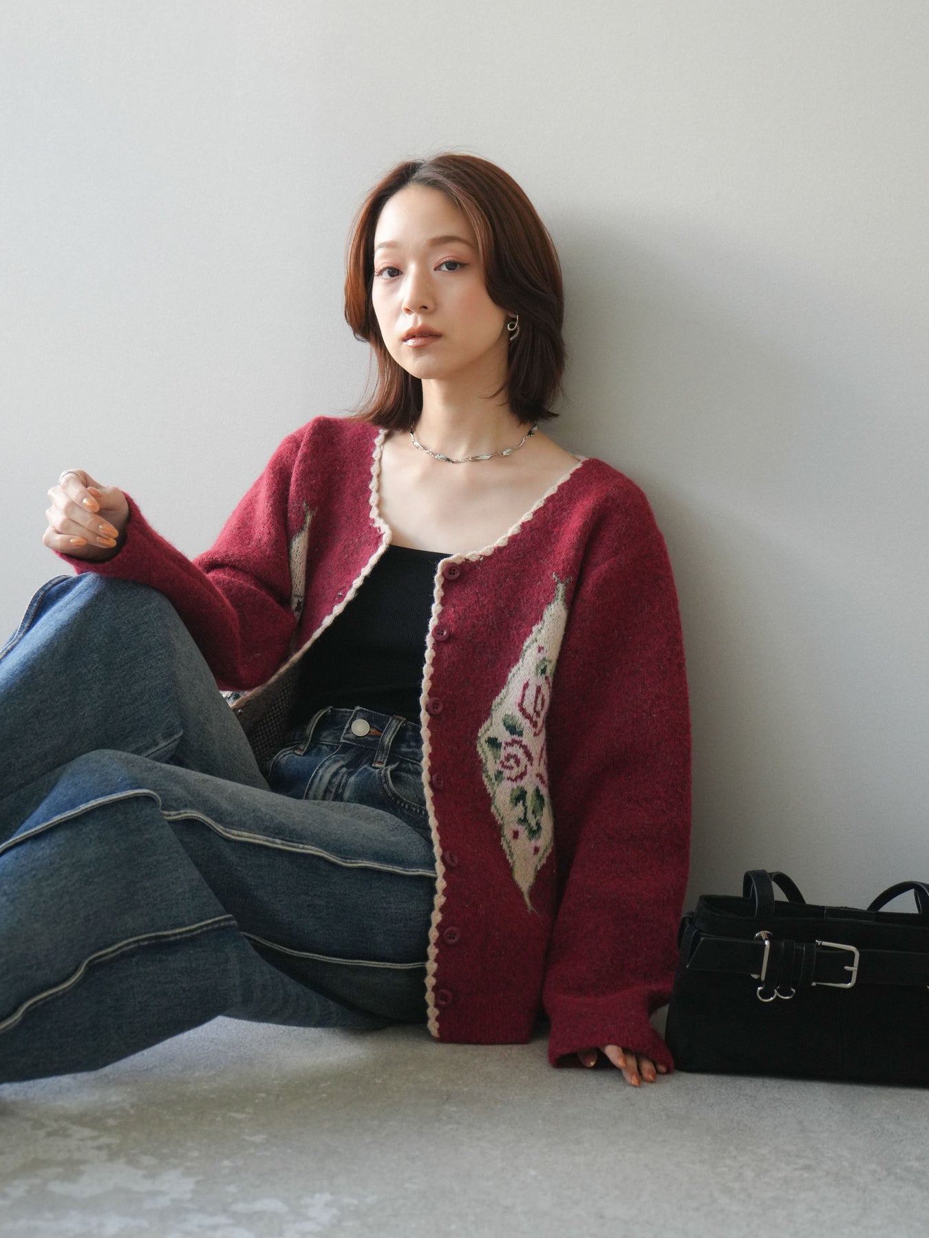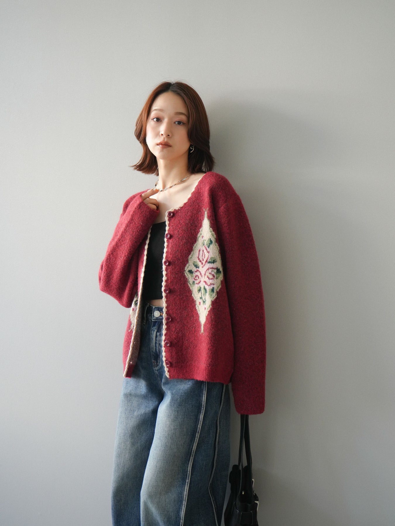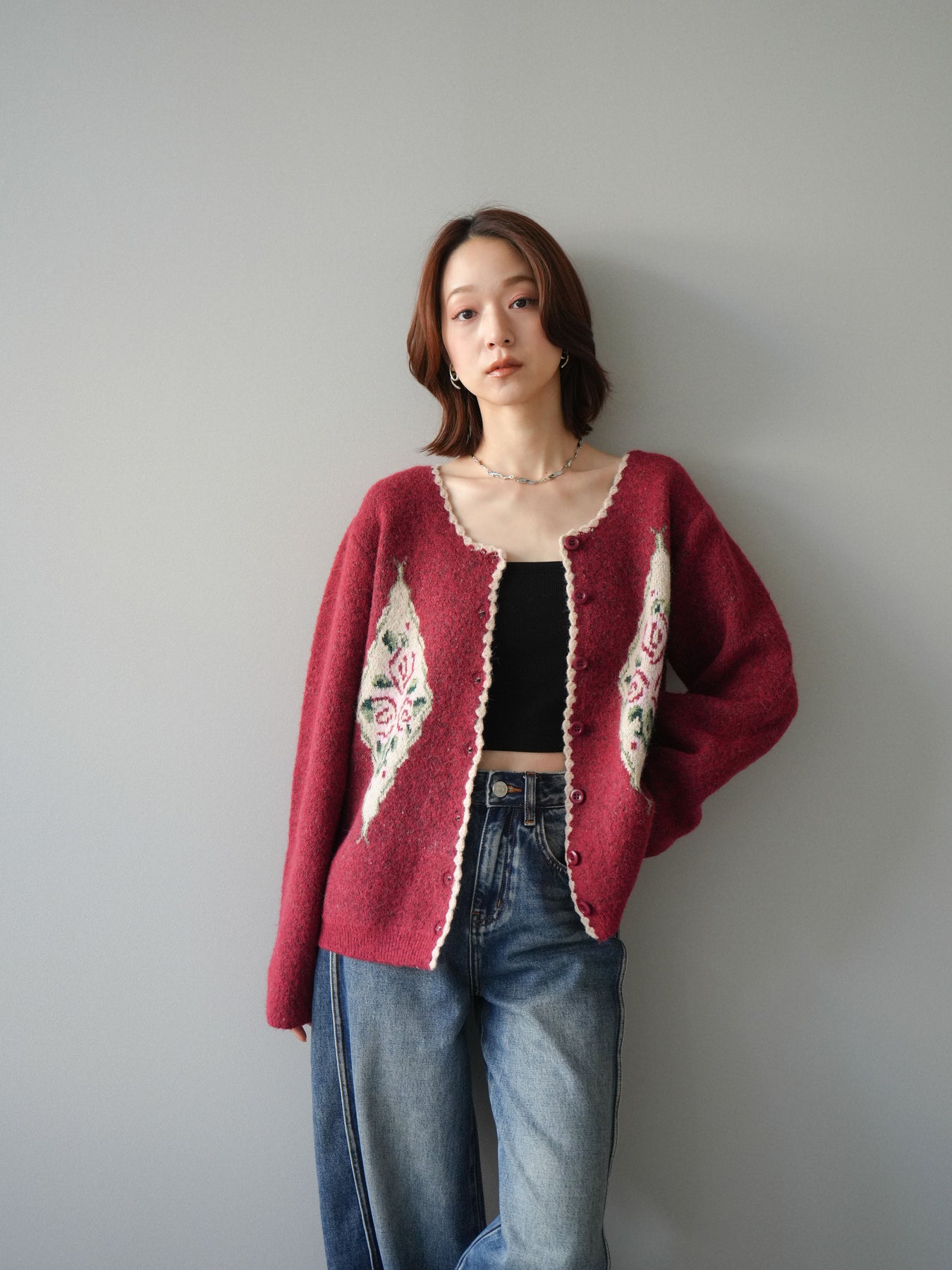 [予約]アンティークフラワージャガードニットカーディガンに関連する商品を探す↓