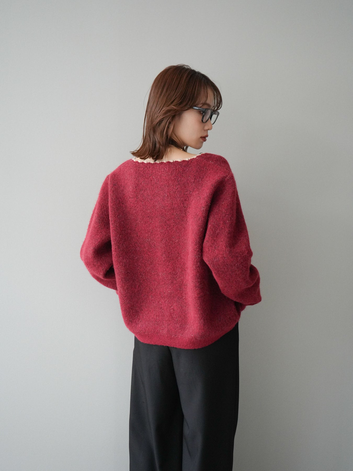 ・お手入れ方法:水温30℃以下手洗いでのお洗濯をお薦めします。素材の特性上、洗濯の際に色落ち・縮みが生じる恐れがありますので単独で・短時間でのお洗濯をお薦めします。裏返してネットに入れ手洗いコースで洗濯、洗濯後は形を整えてから干してください。※タンブラー乾燥は控えてください。濡れたままの状態で擦れると、色落ち色移りすることがあります。つけ置き洗いや雨や汗で濡れたまま放置は避け、速やかに処理してください。着用中の摩擦や汗、水濡れ、濃淡差があるものとの重ね着にご注意ください。また、素材の特性上伸びやすい為ハンガーの使用はお控えいただき畳んで保管ください。