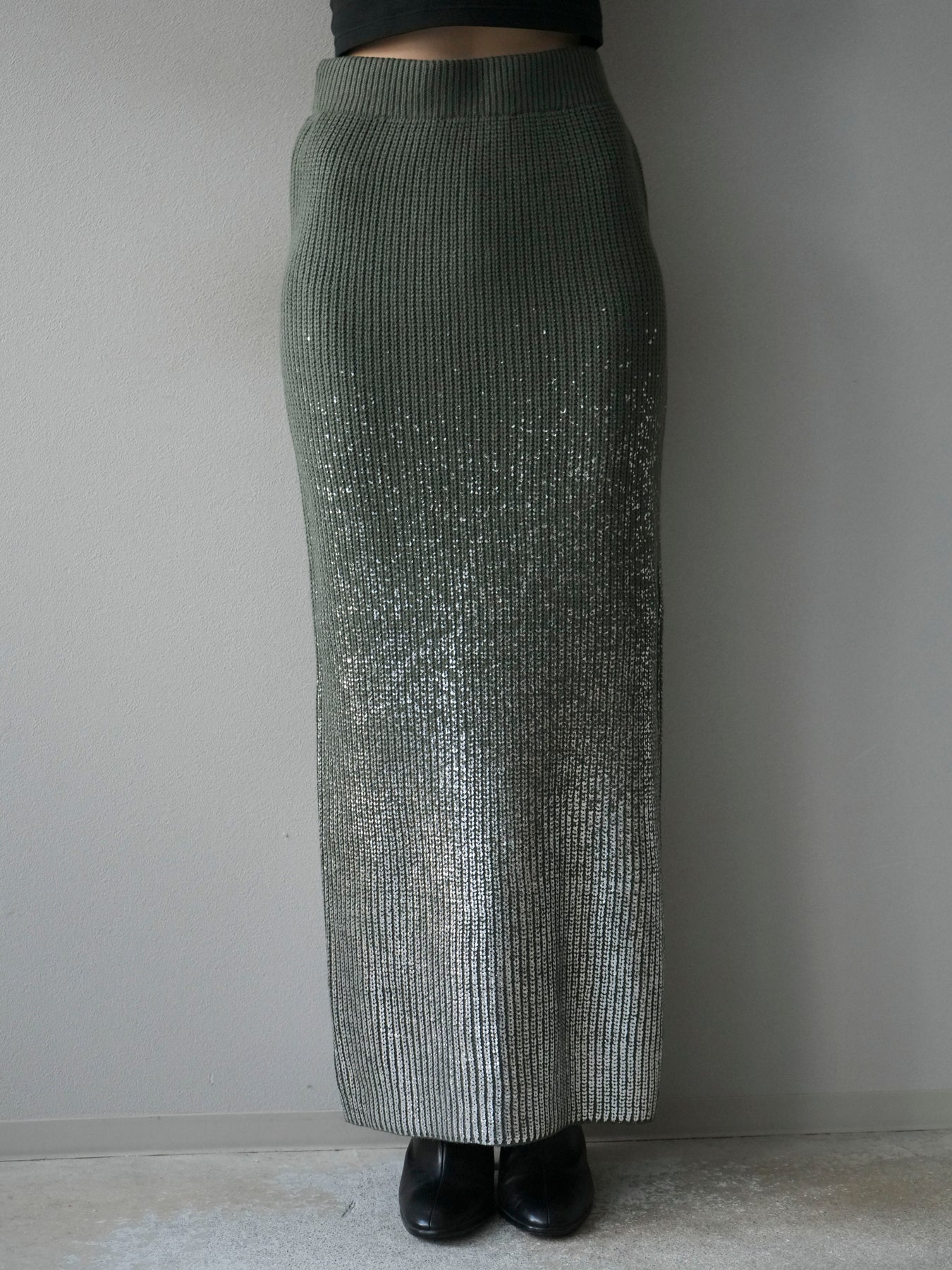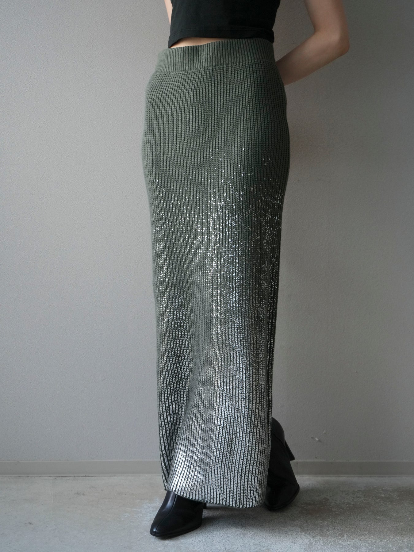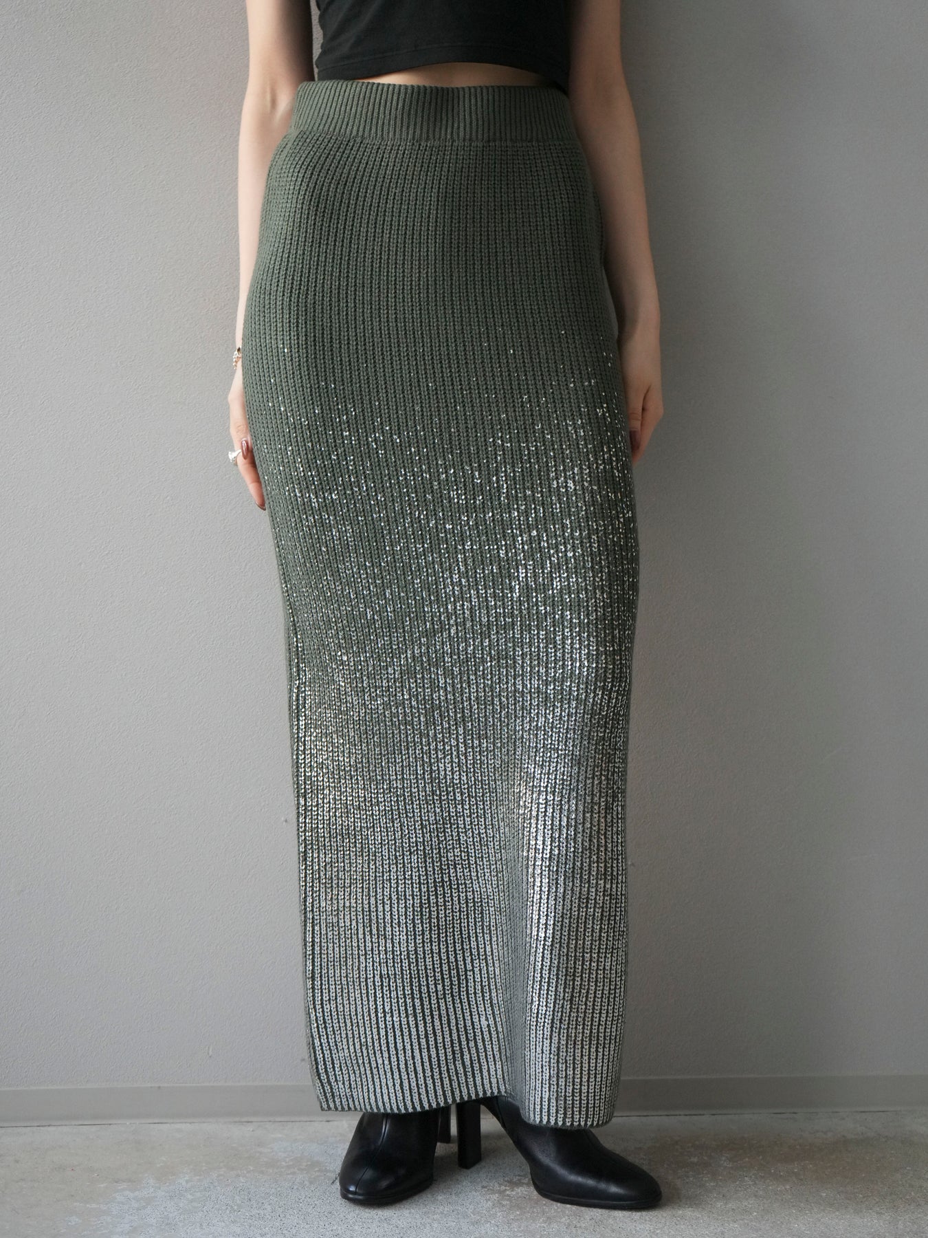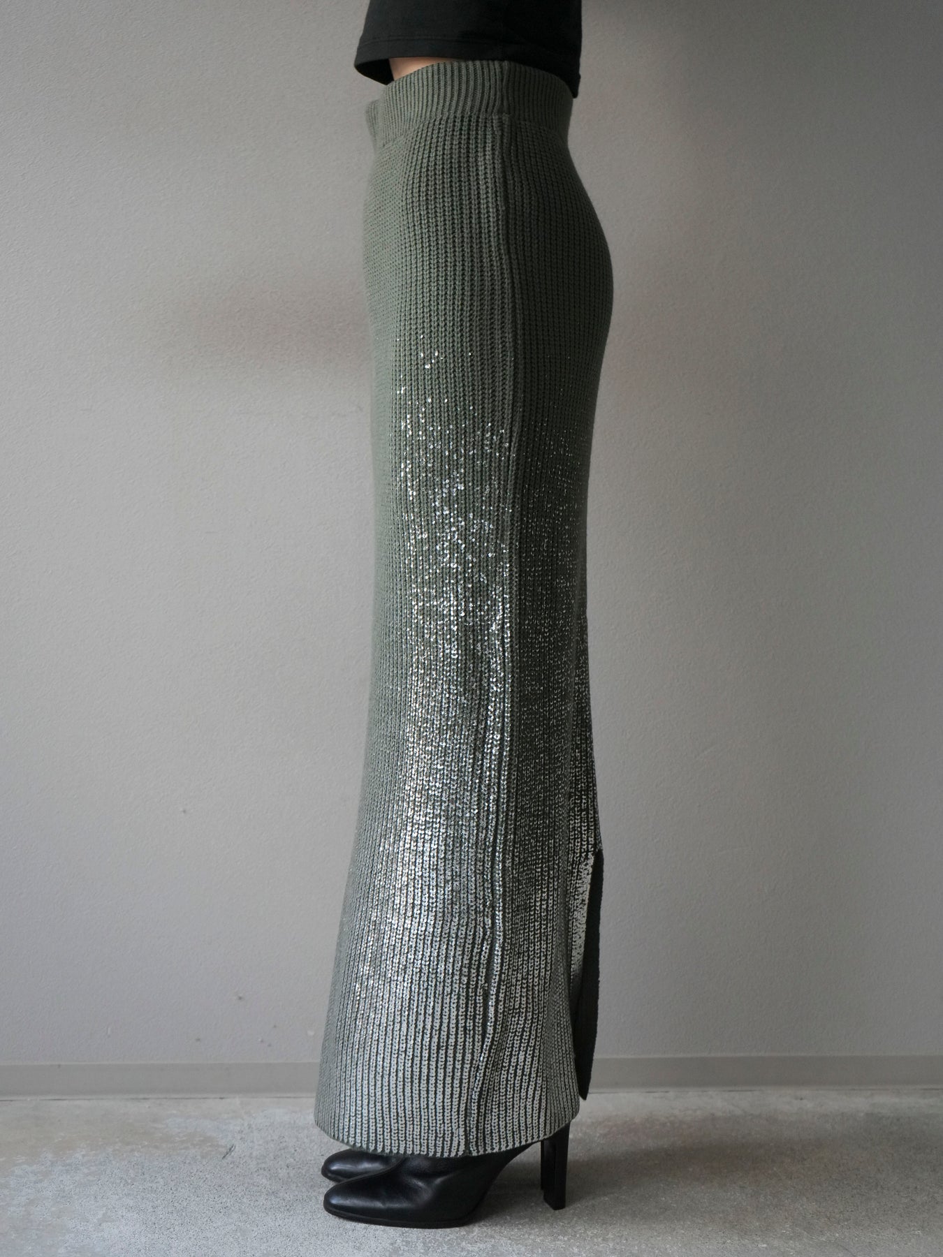 繊細な箔プリントが目を惹く、華やかさとモード感を兼ね備えたニットタイトスカート。 歩くたびにきらめく箔の光沢が女性らしさを引き立て、シンプルなトップスを合わせるだけで洗練された印象に仕上がります。 伸縮性のあるニット素材で穿き心地が良く、体のラインをきれいに見せながらも締め付け感のない快適な着用感。 裾にはスリットを入れ、抜け感と動きやすさをプラスしました。 デイリーから特別なシーンまで活躍する、存在感のある主役級スカートです。