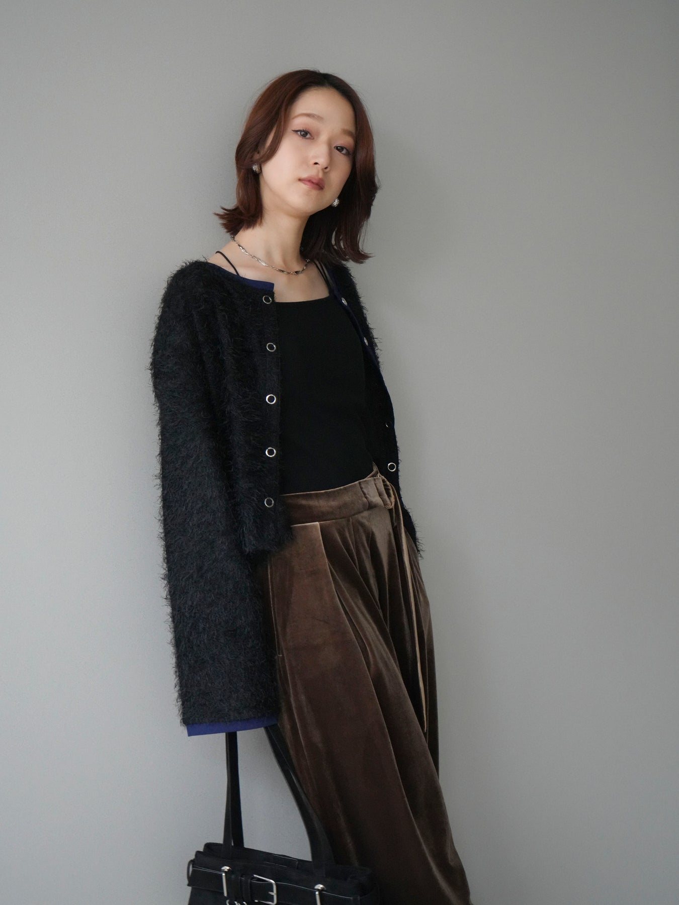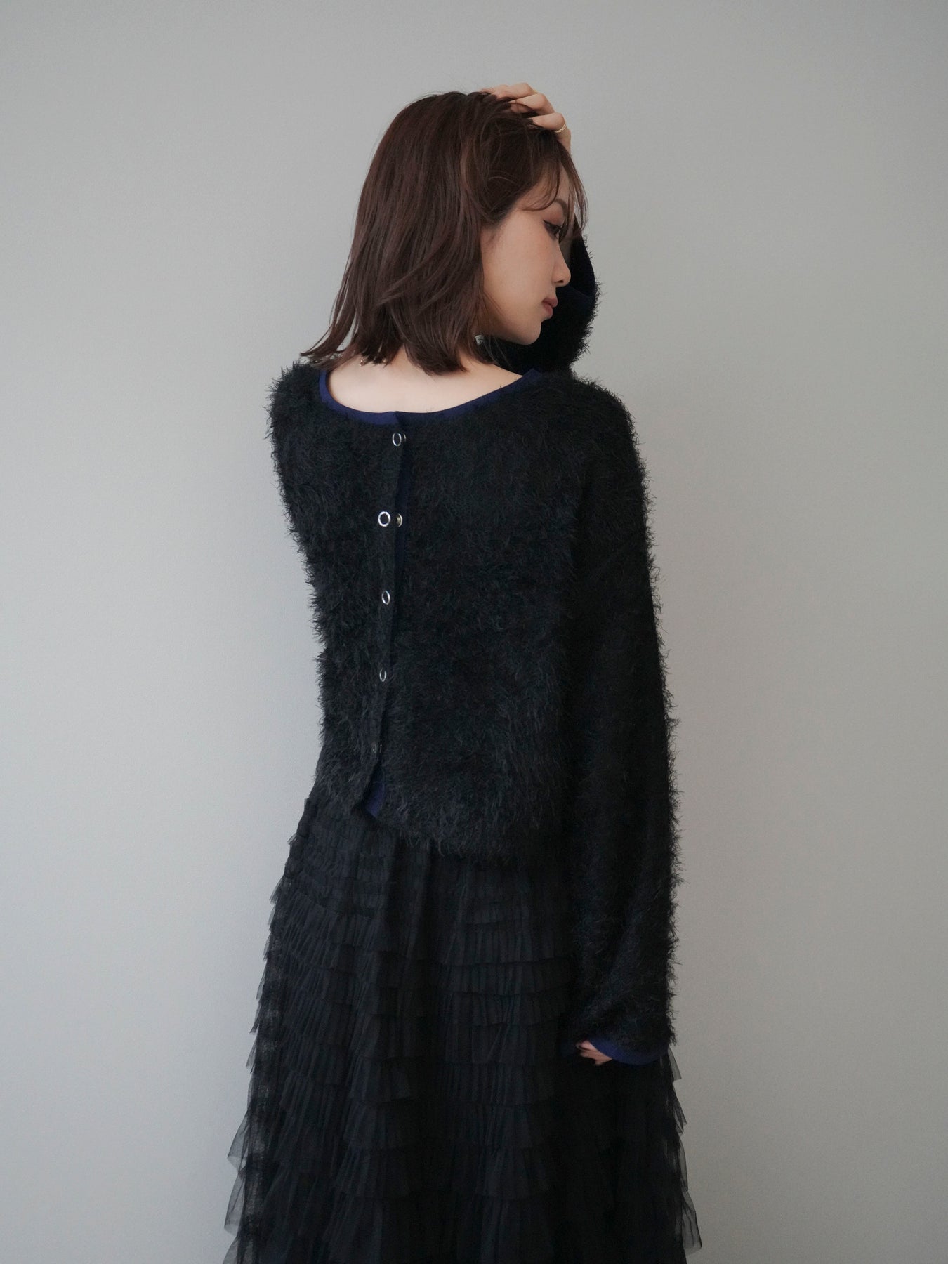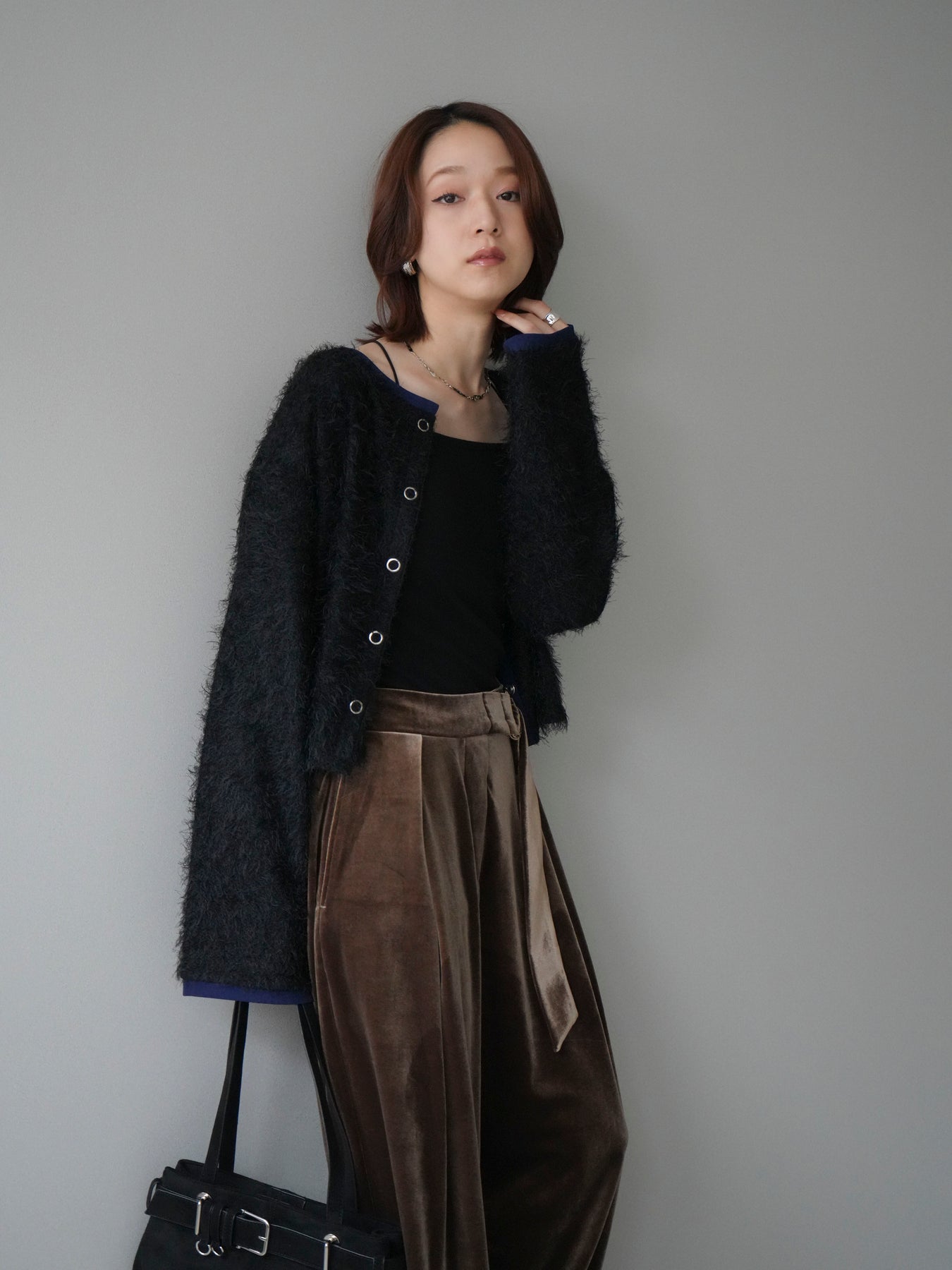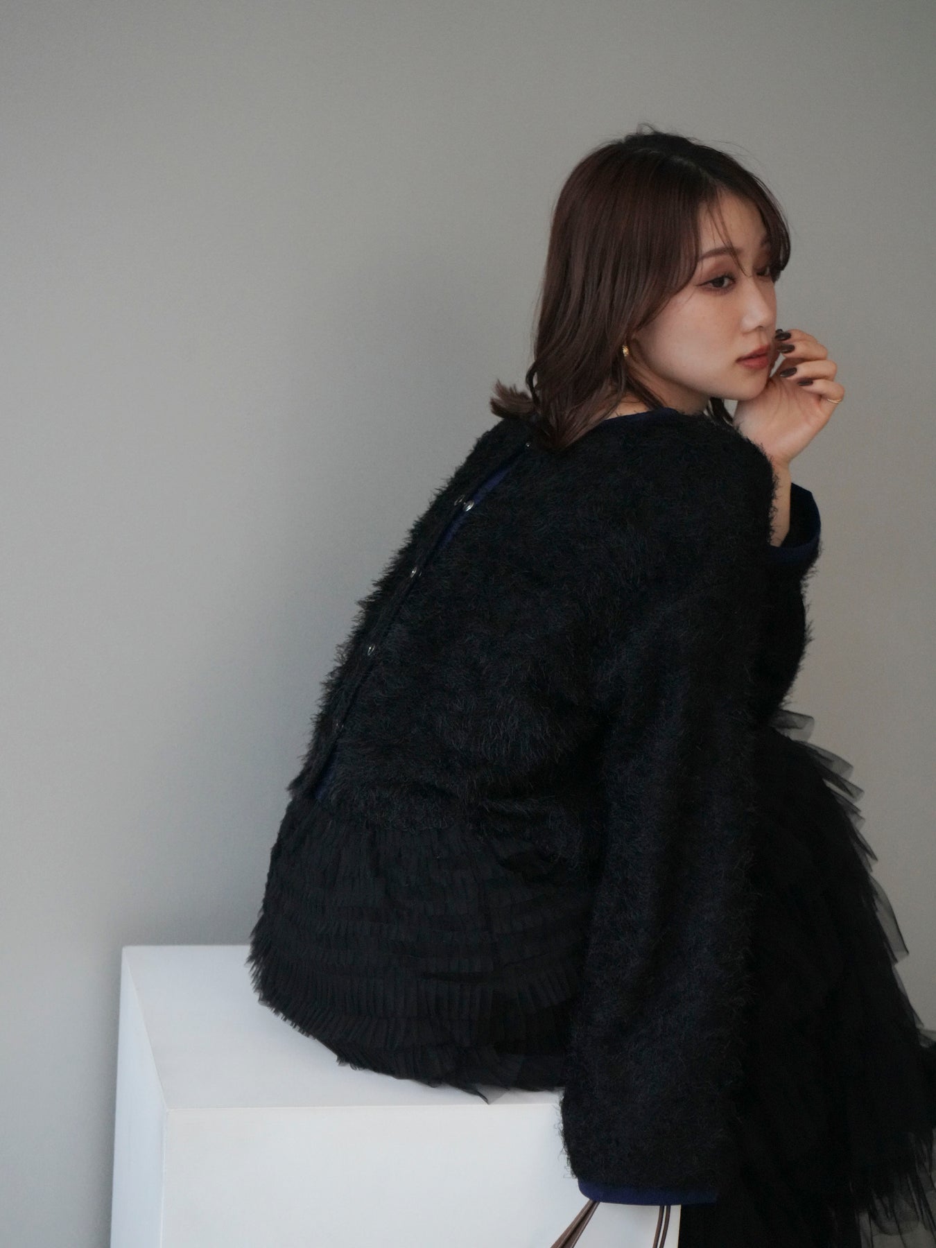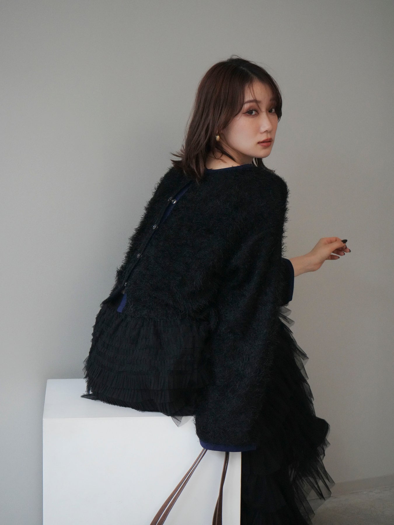 [予約]バイカラー2WAYシャギーニットカーディガン/black