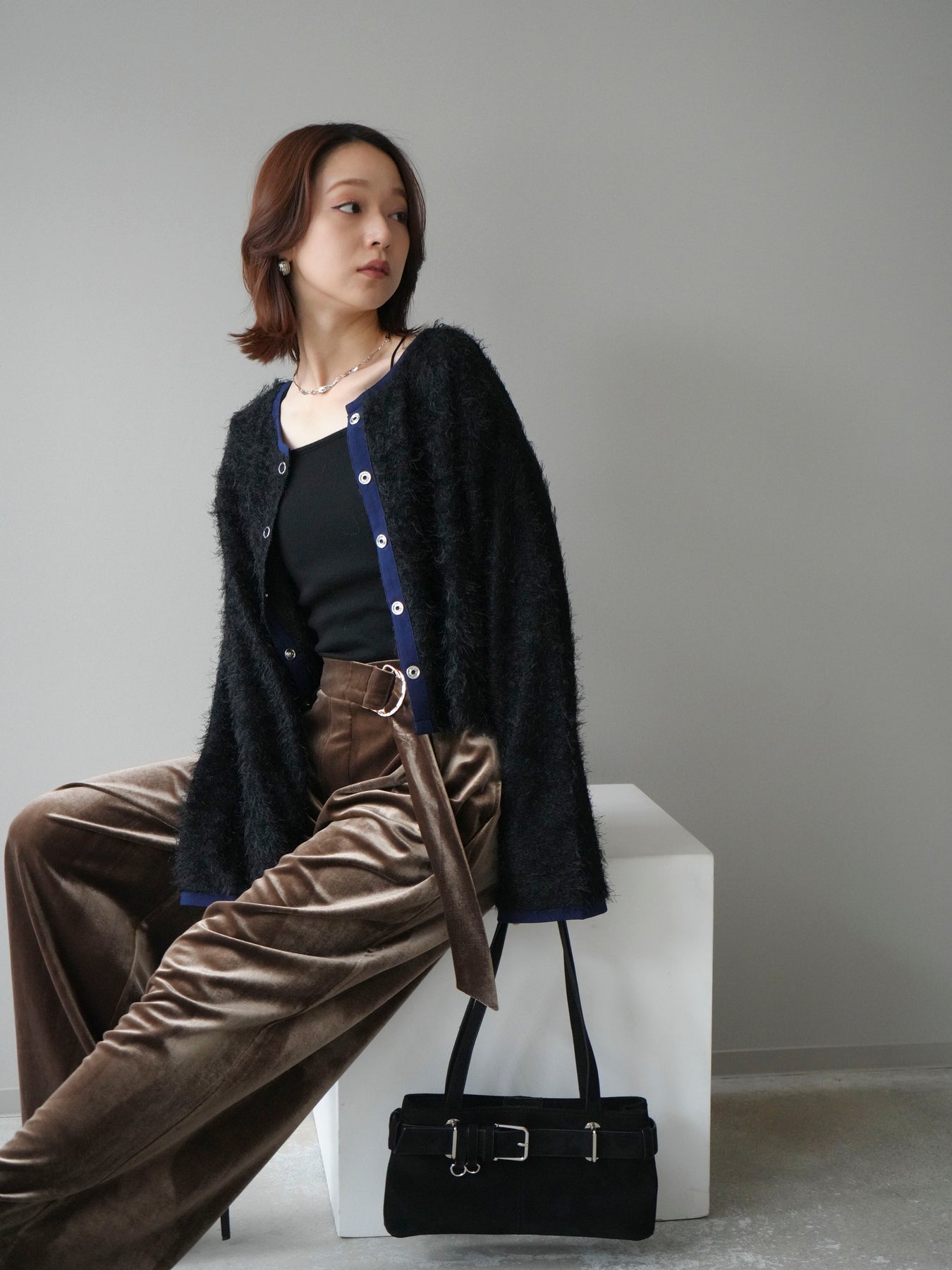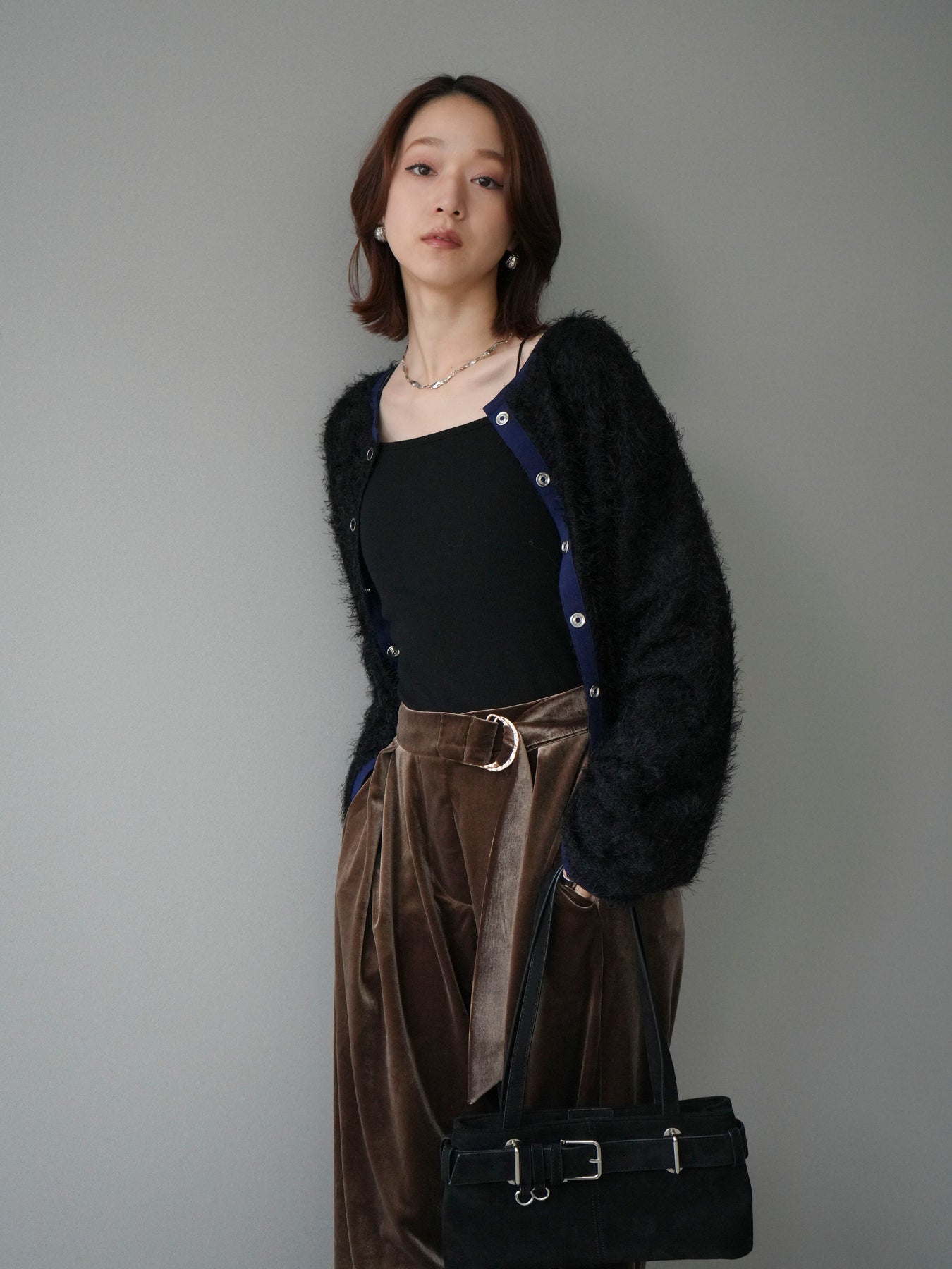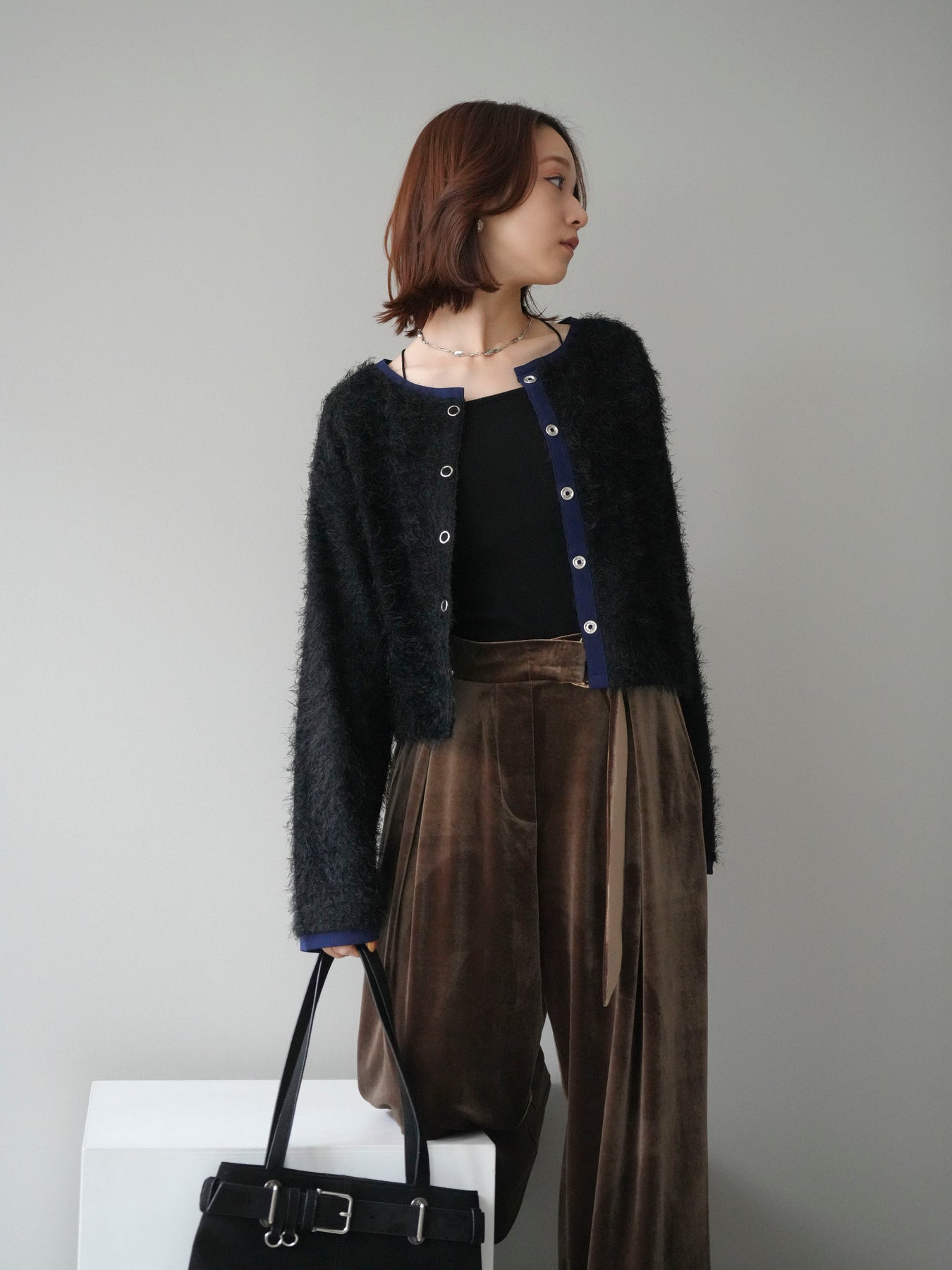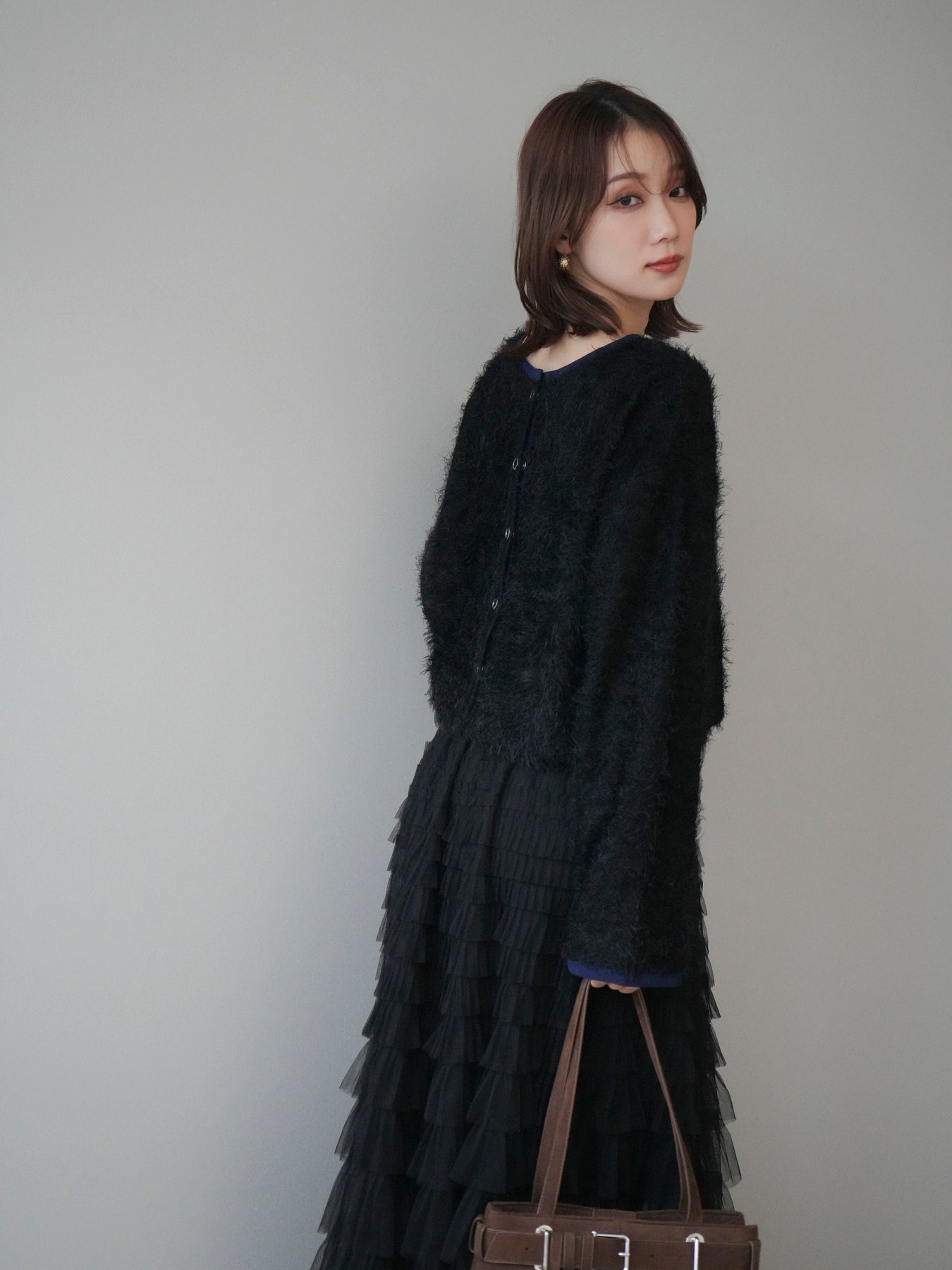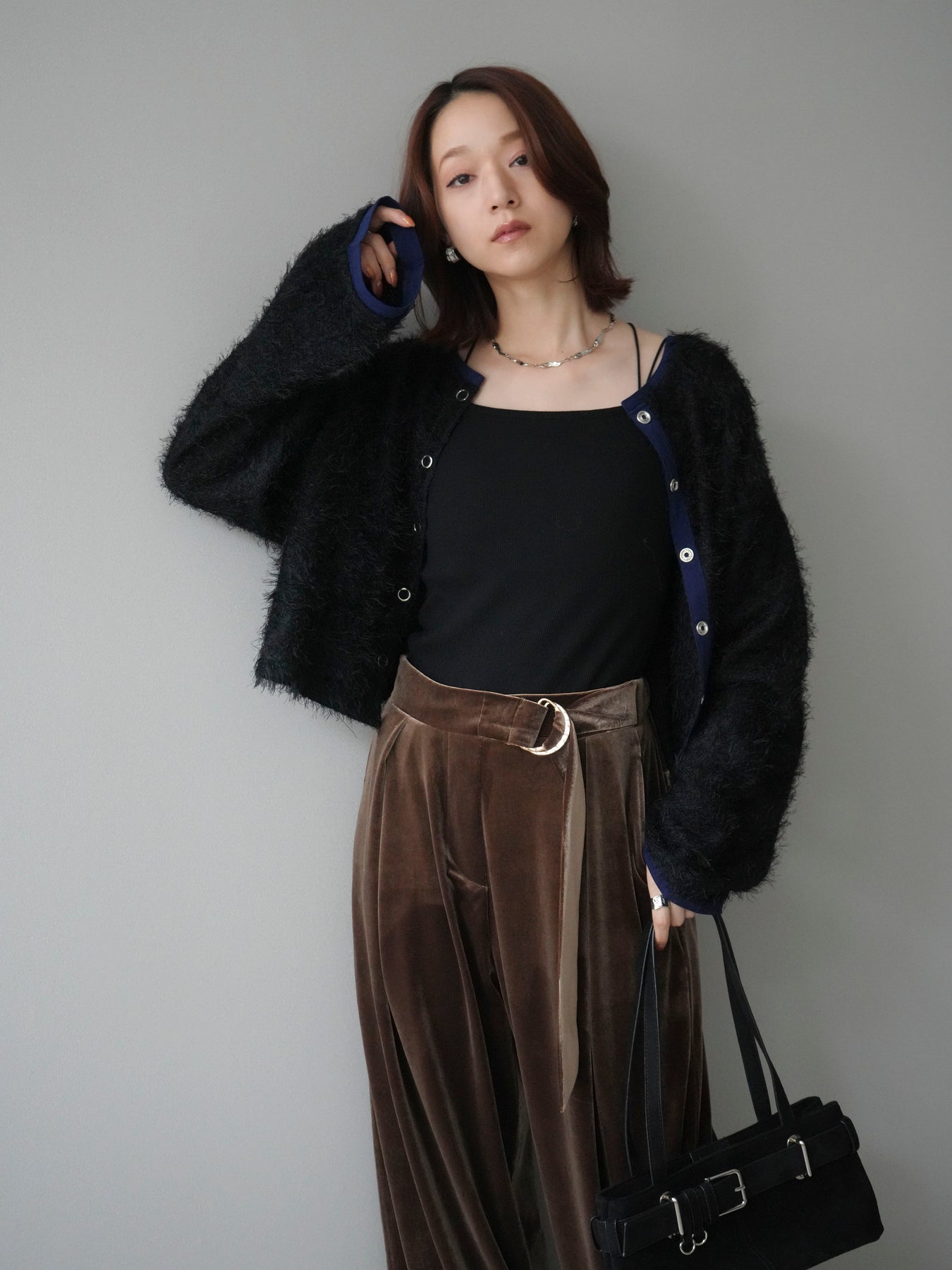 [予約]バイカラー2WAYシャギーニットカーディガン/black