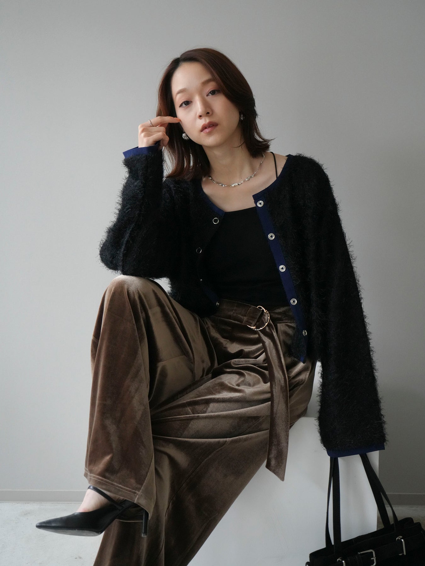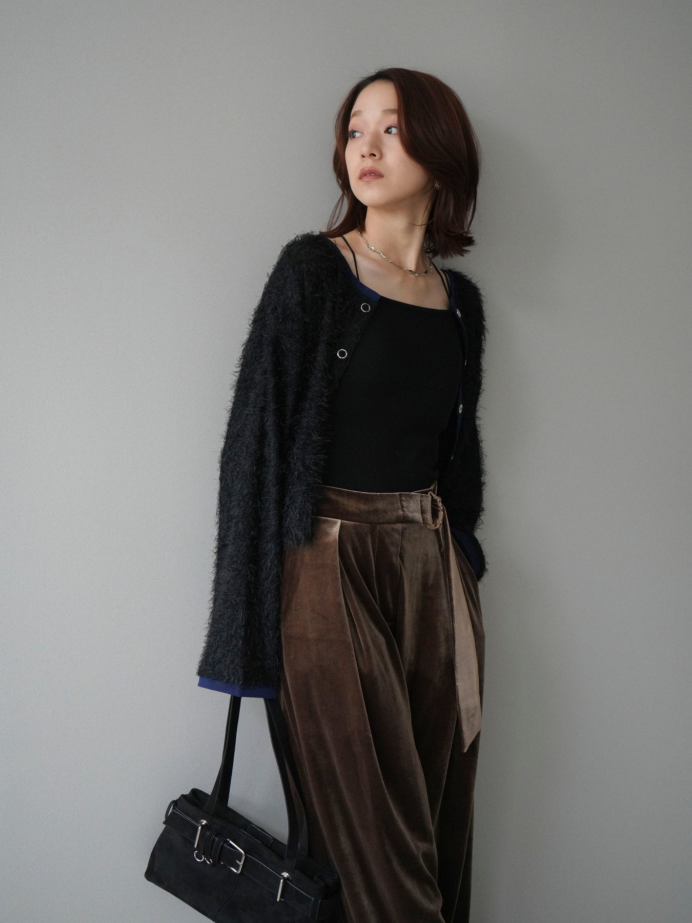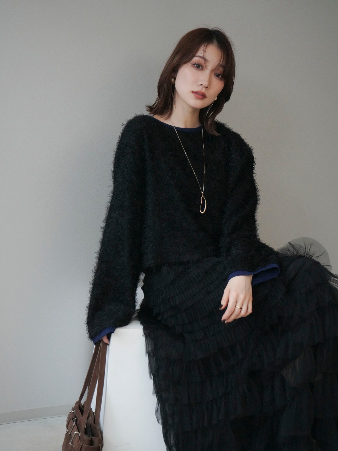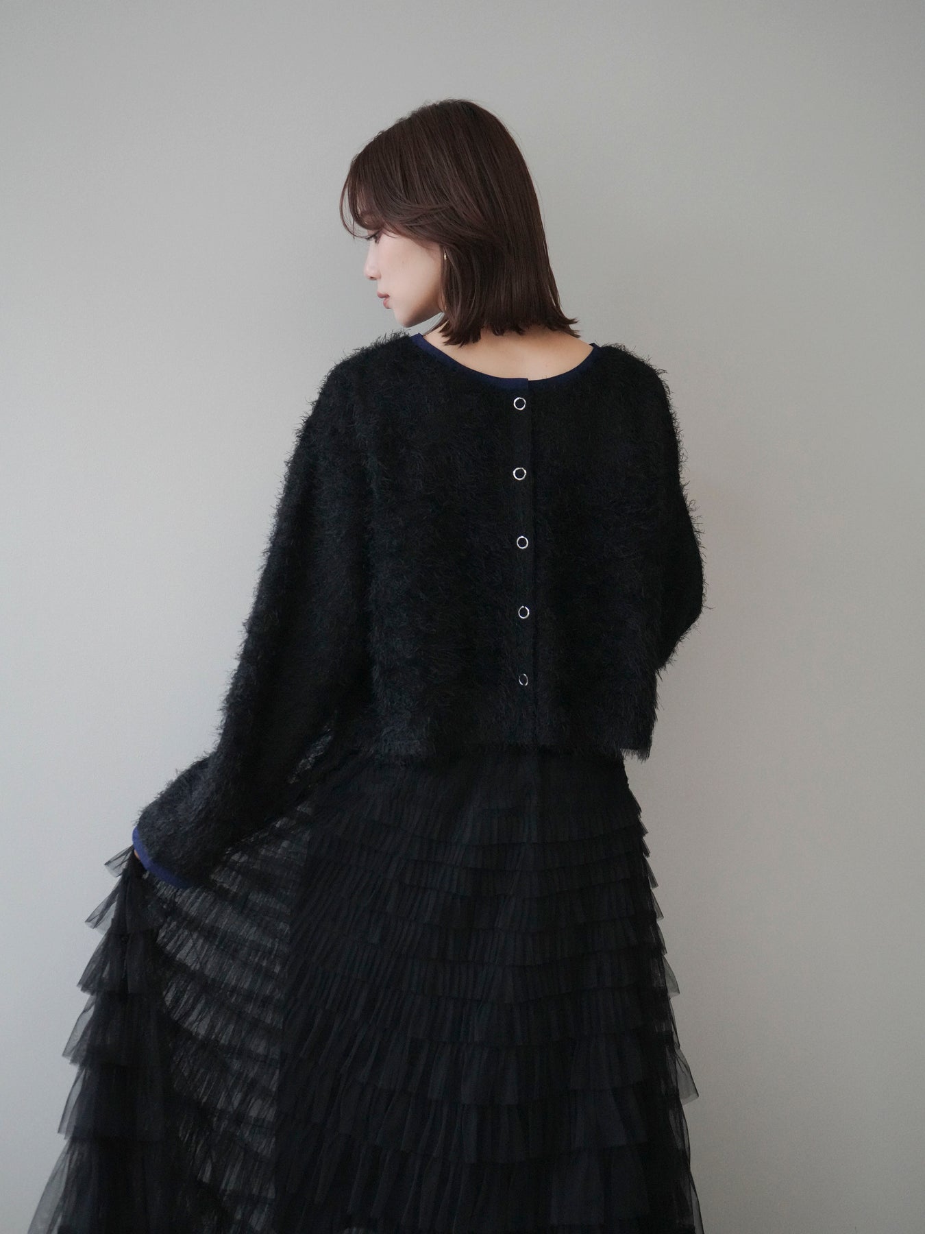 [予約]バイカラー2WAYシャギーニットカーディガン/black