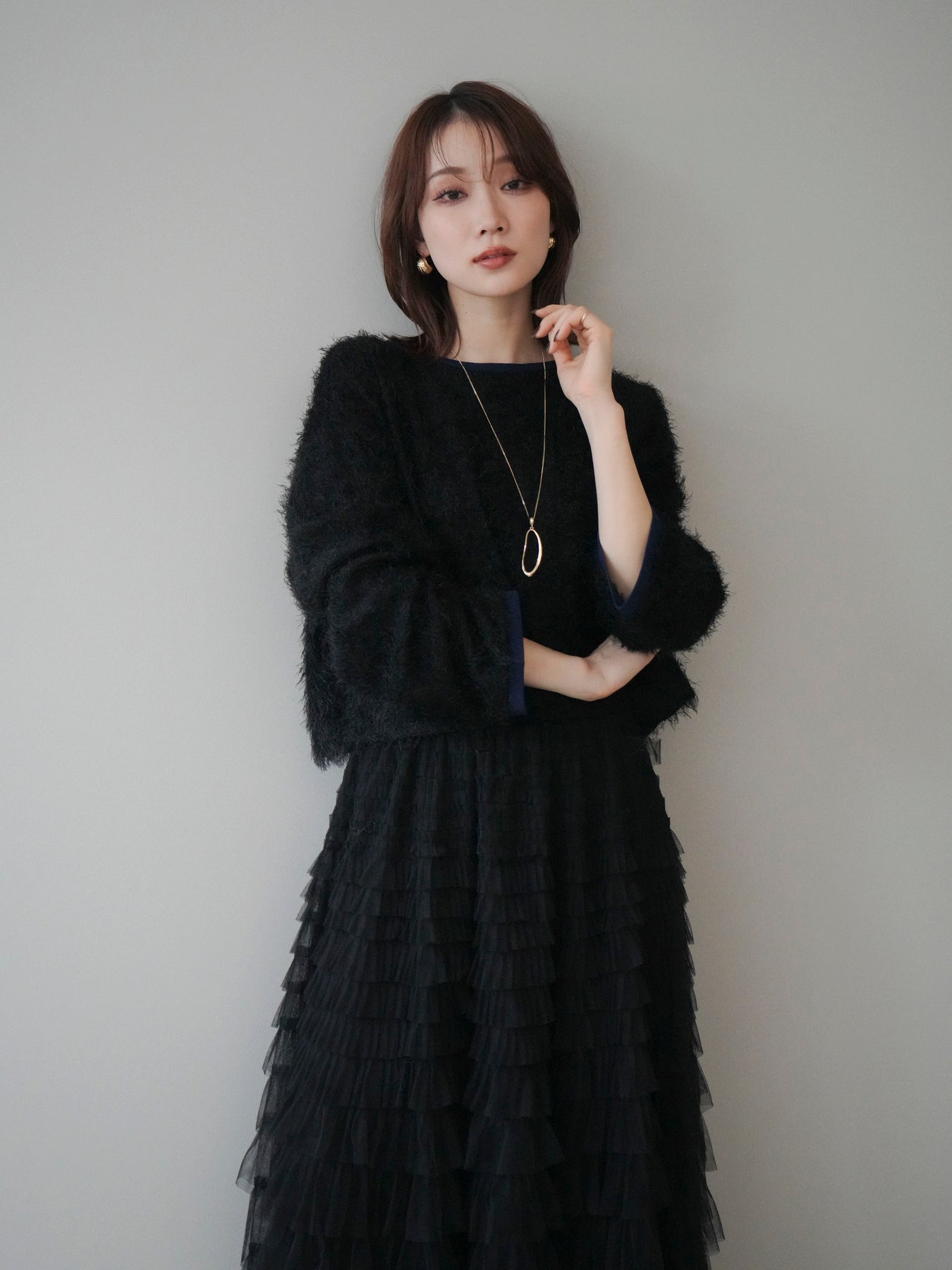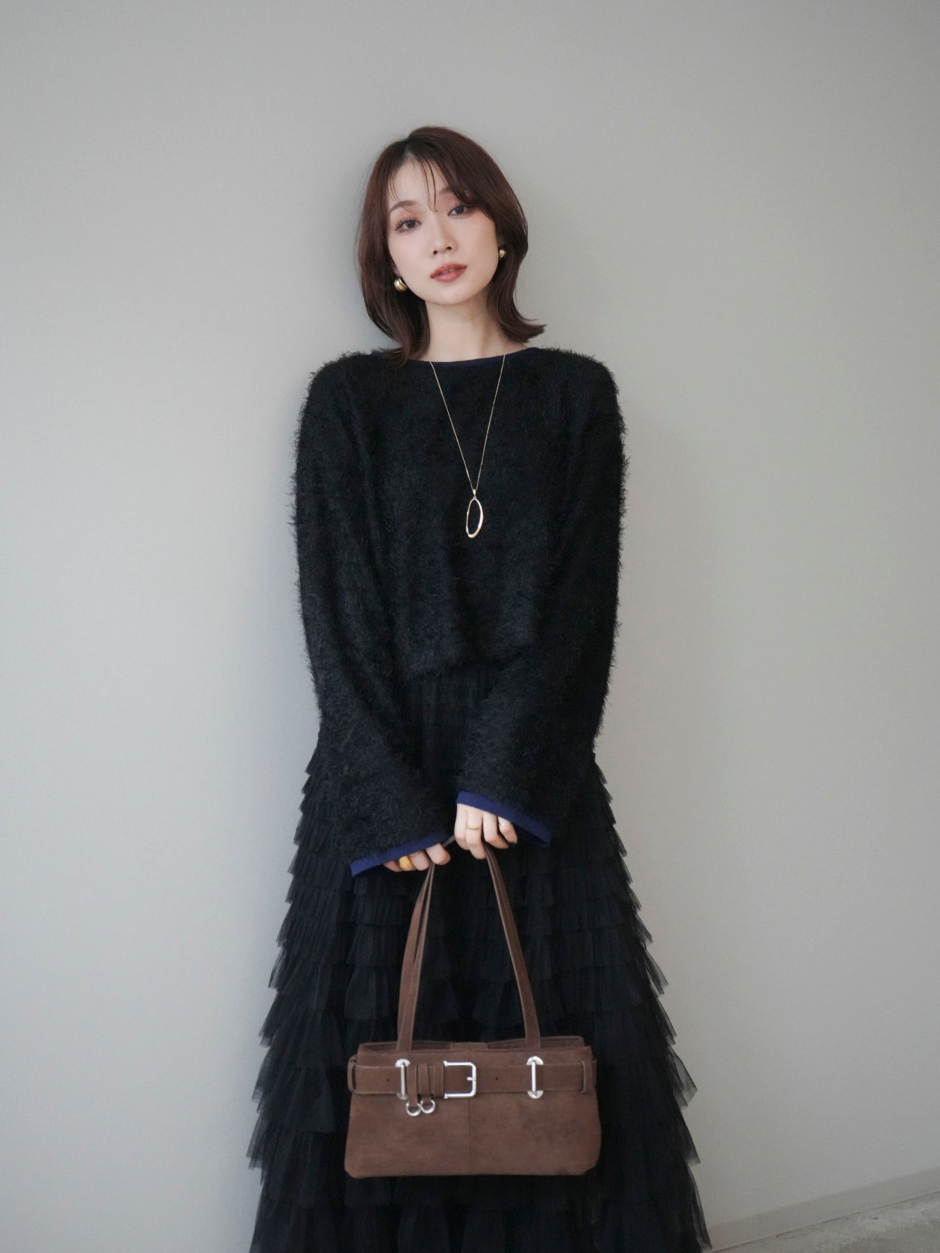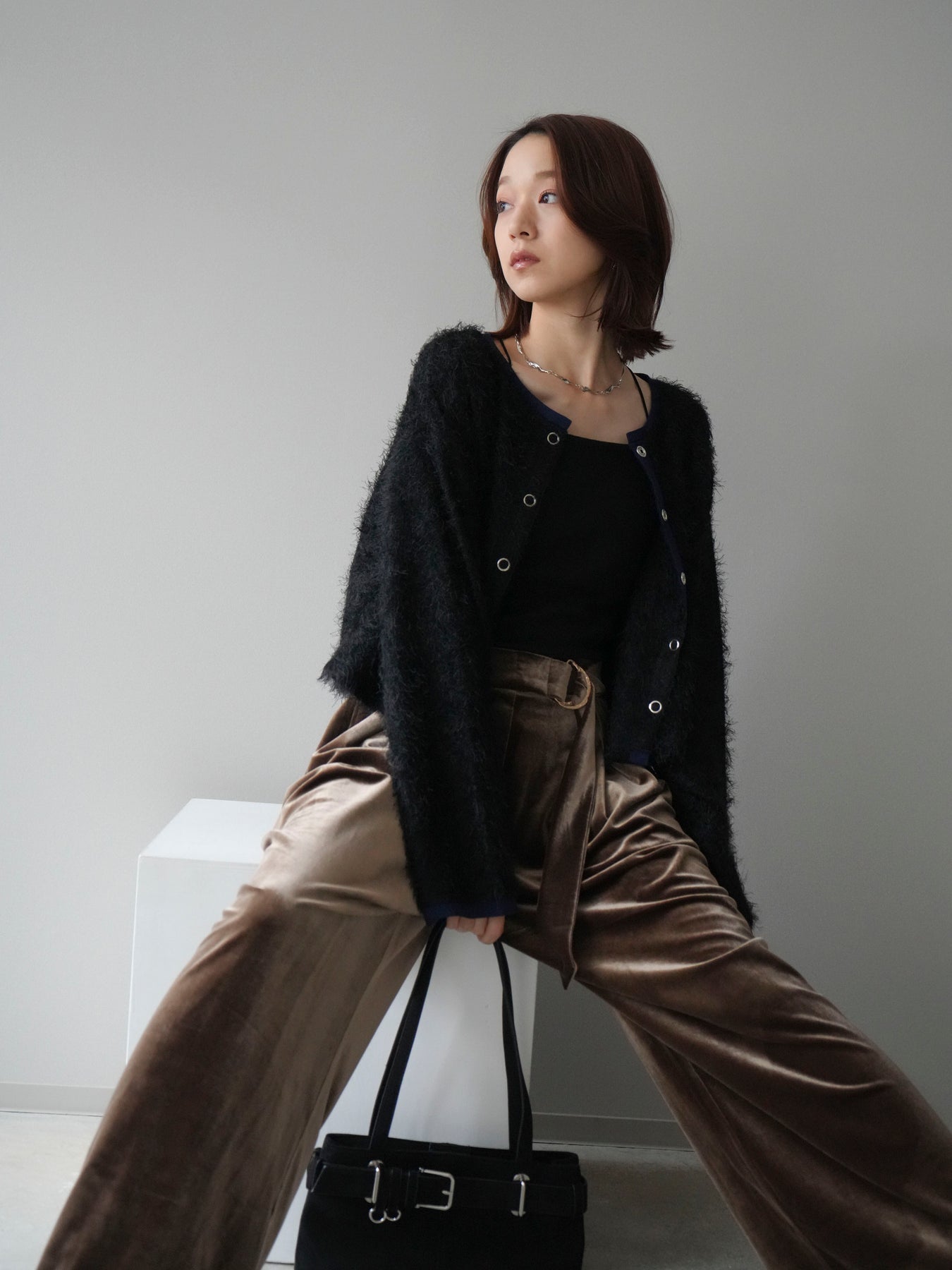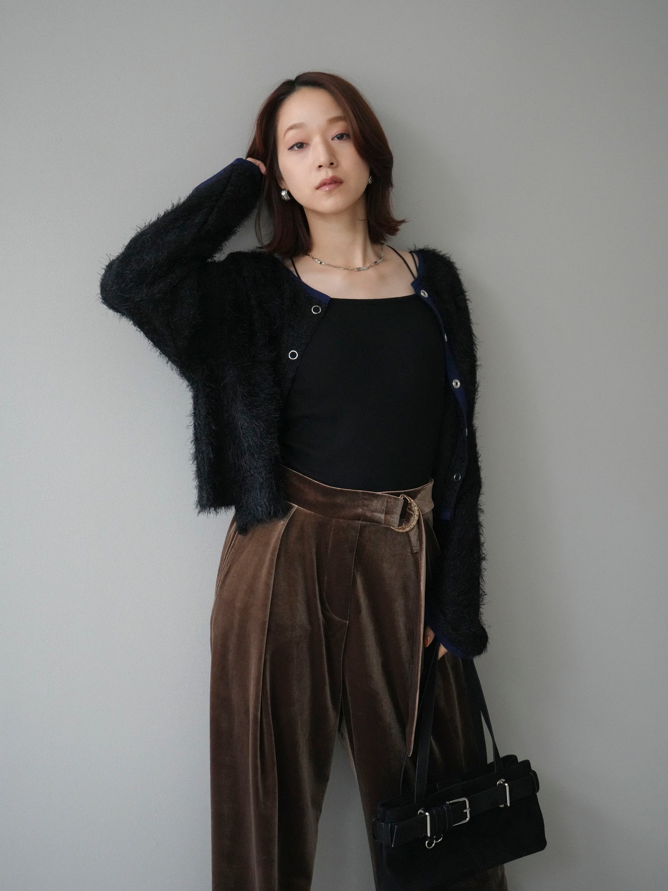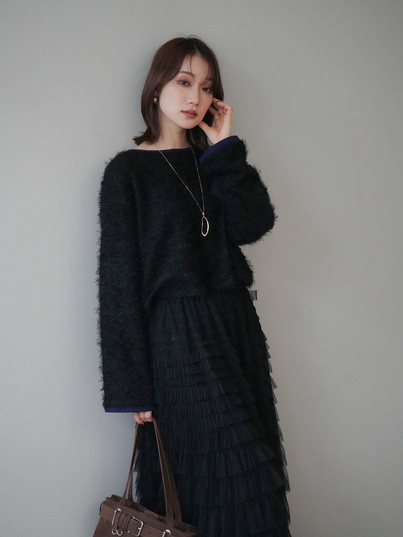 [予約]バイカラー2WAYシャギーニットカーディガン/black