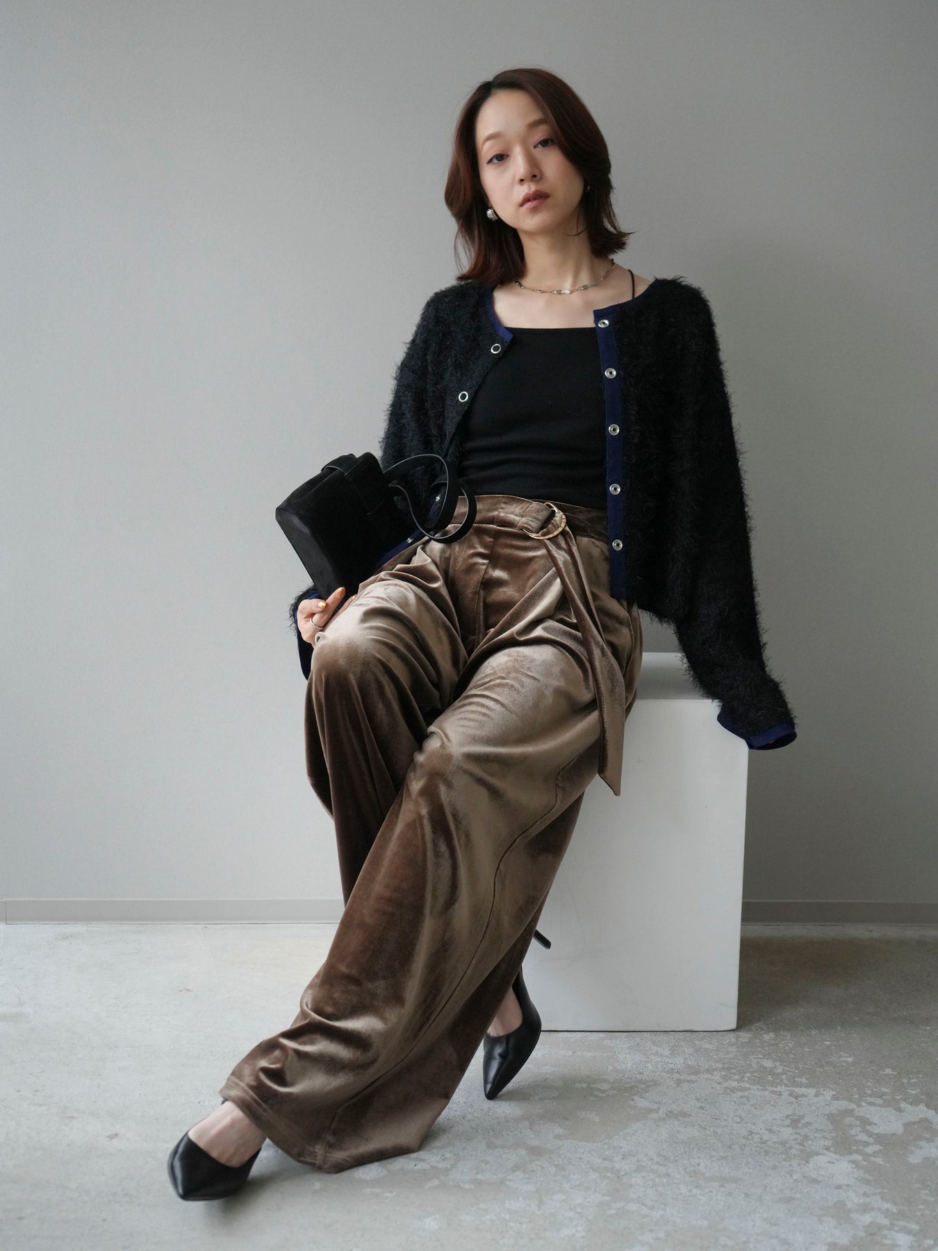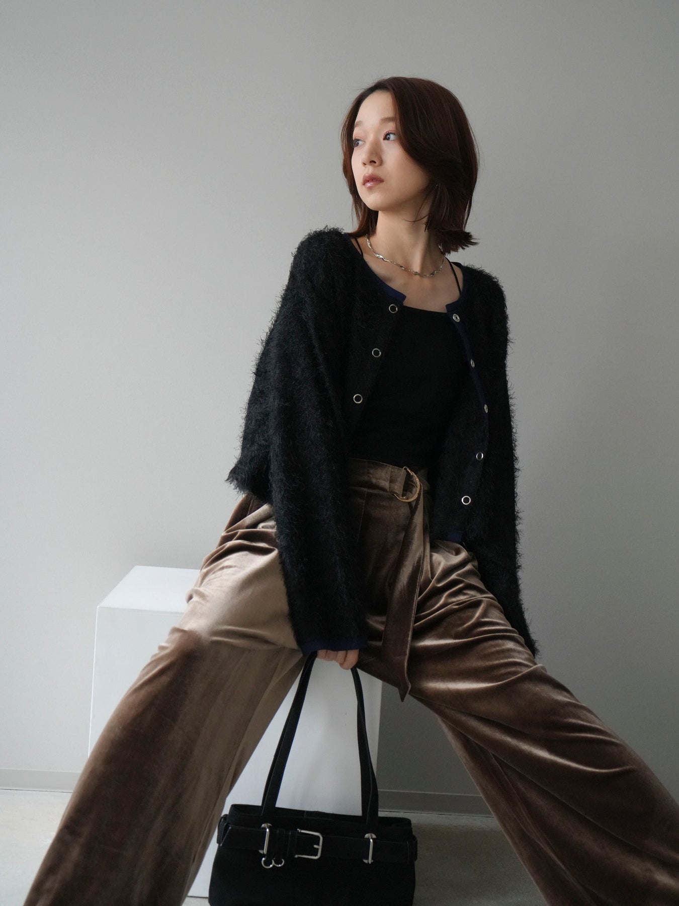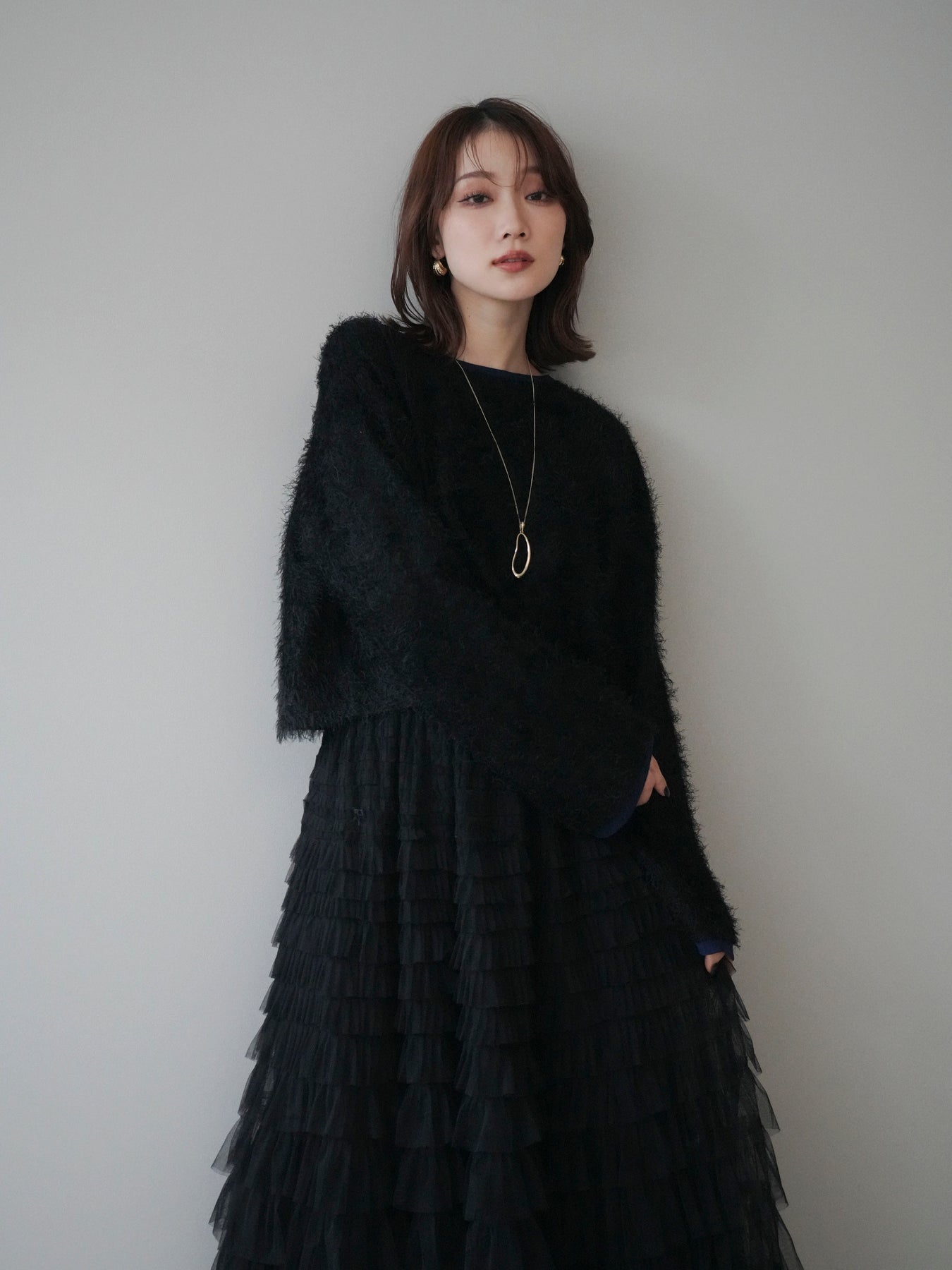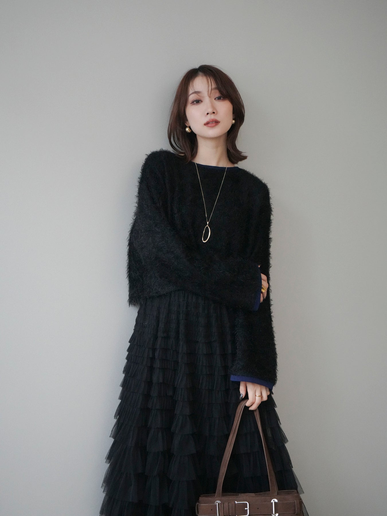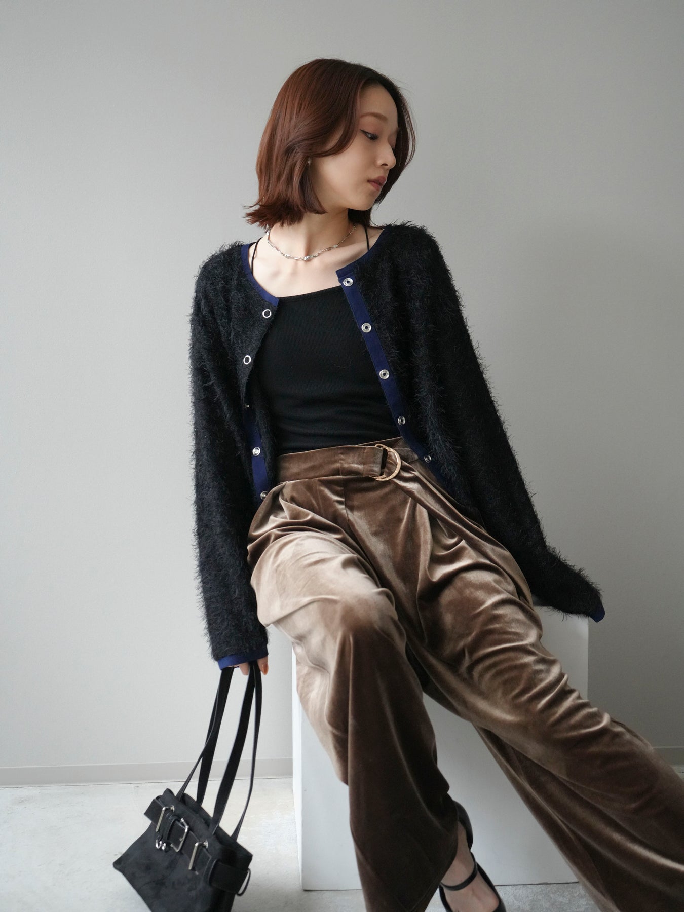 [予約]バイカラー2WAYシャギーニットカーディガン/black
