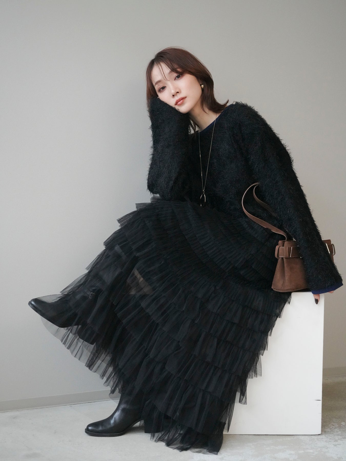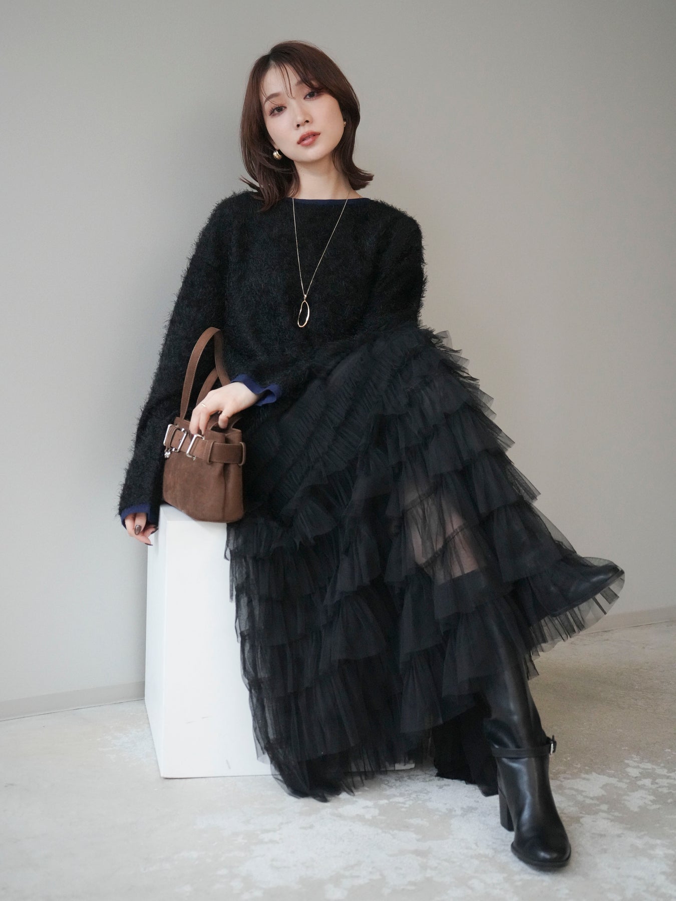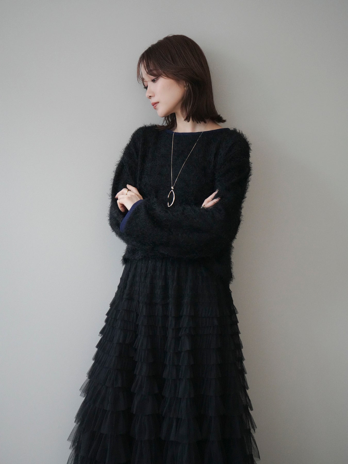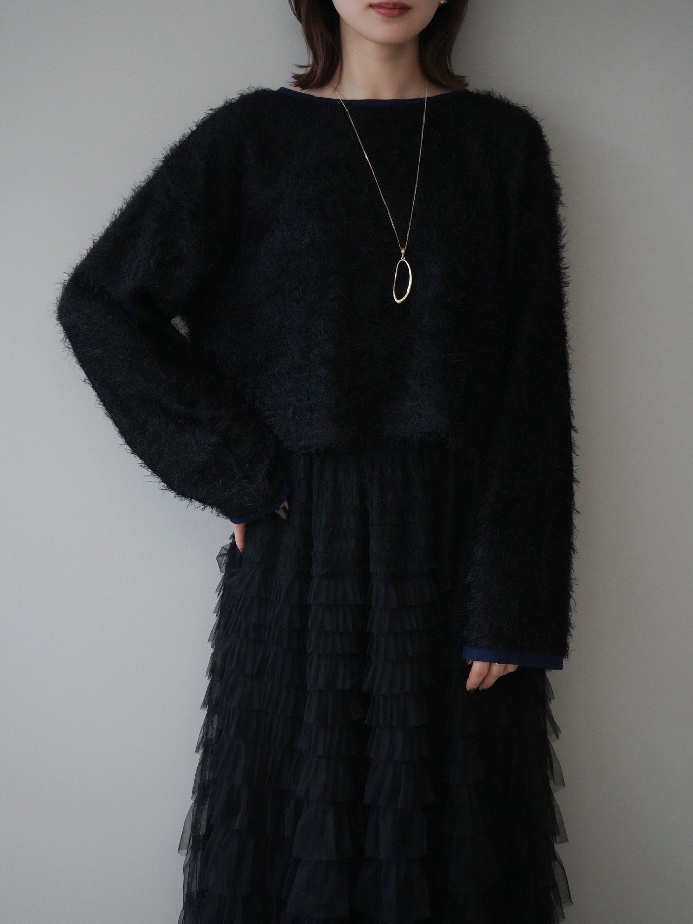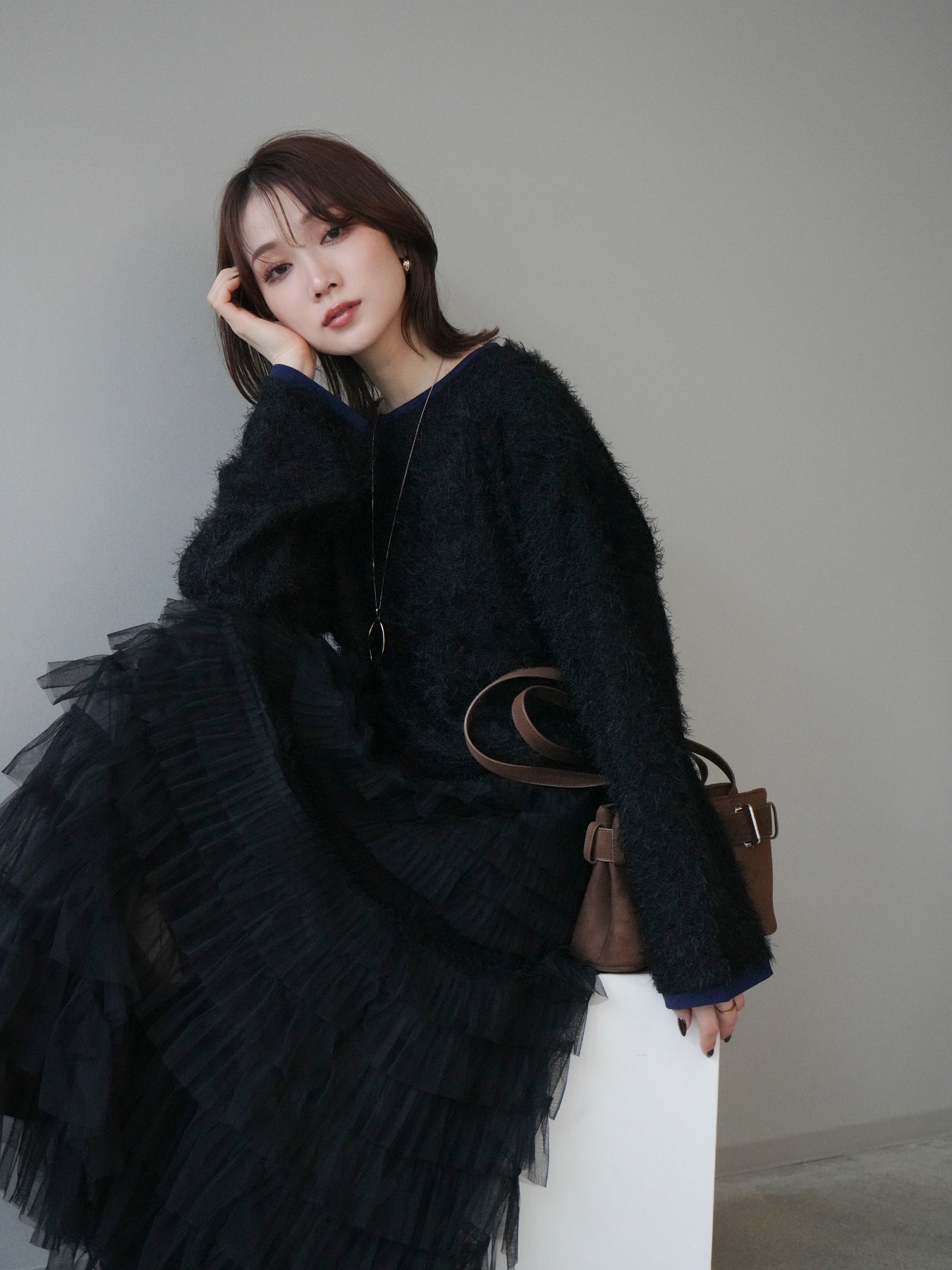[予約]バイカラー2WAYシャギーニットカーディガン/black