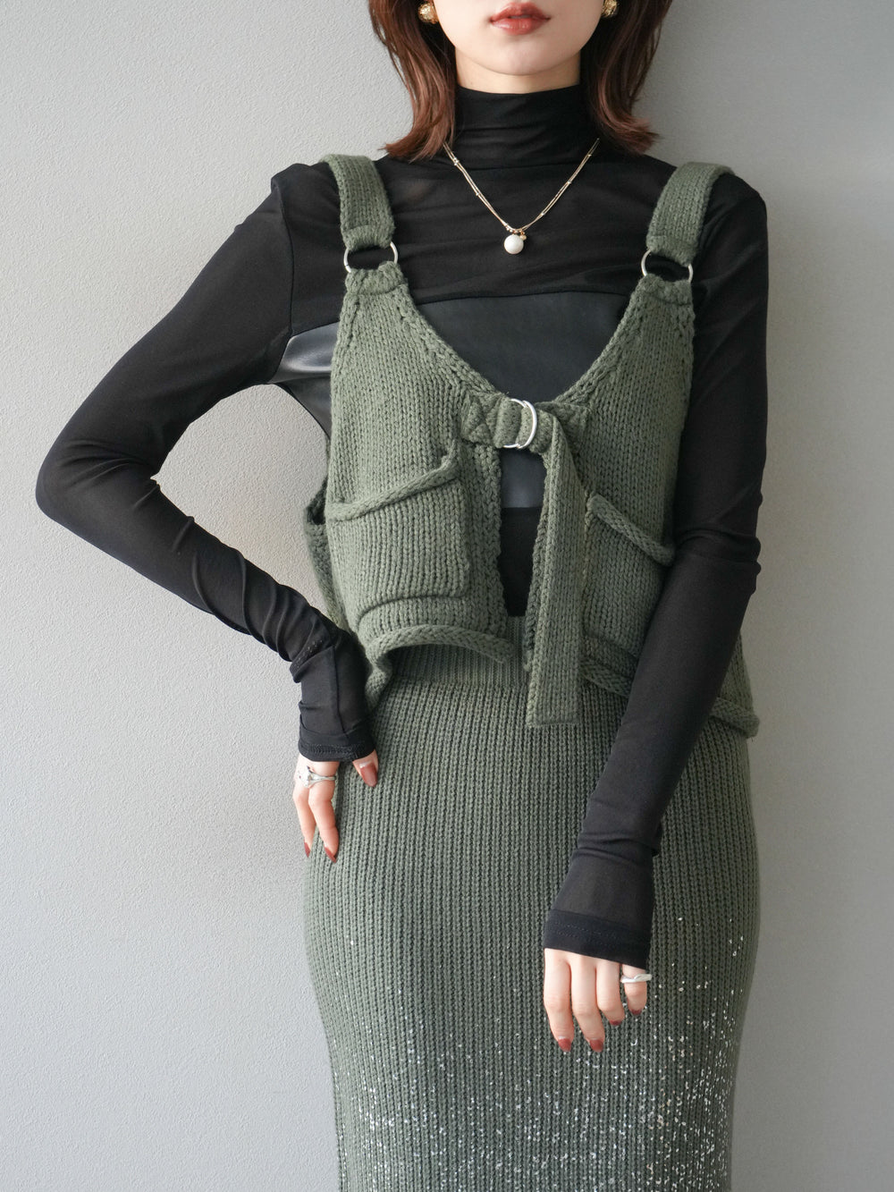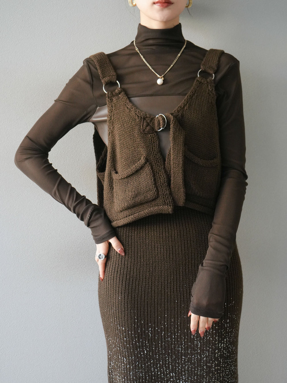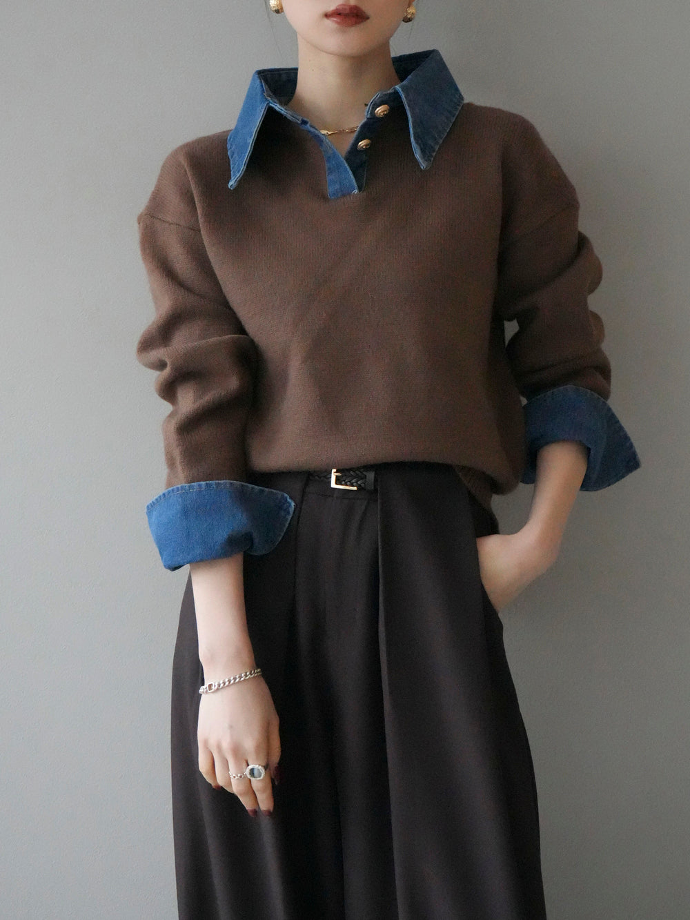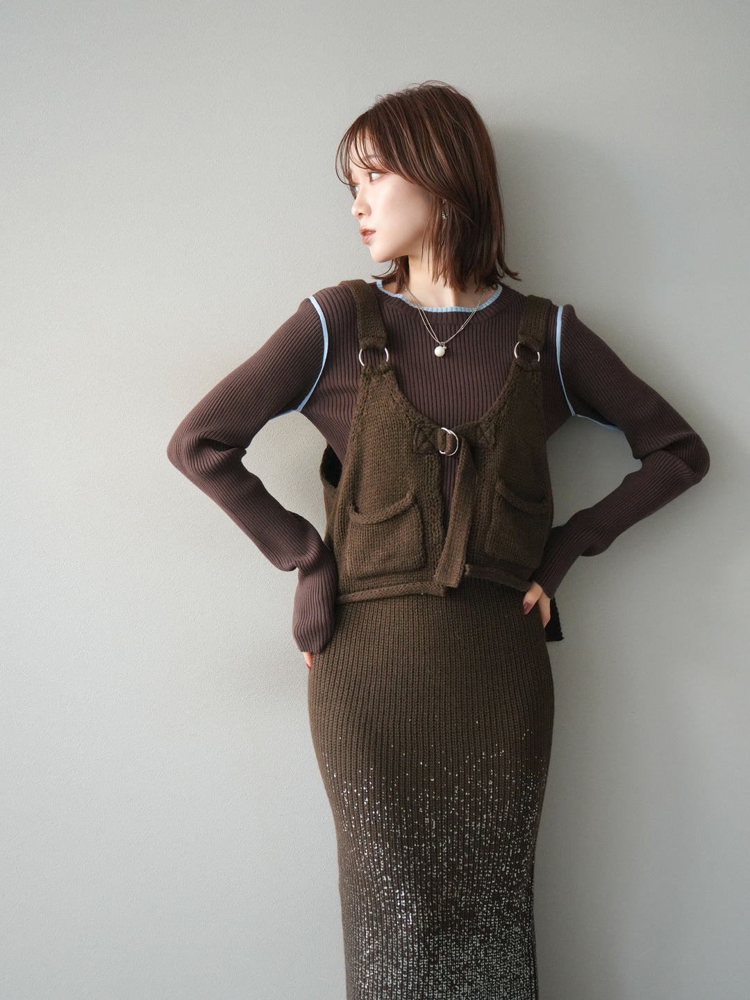 [予約]バイカラーレイヤードデザインニットプルオーバー/apricot