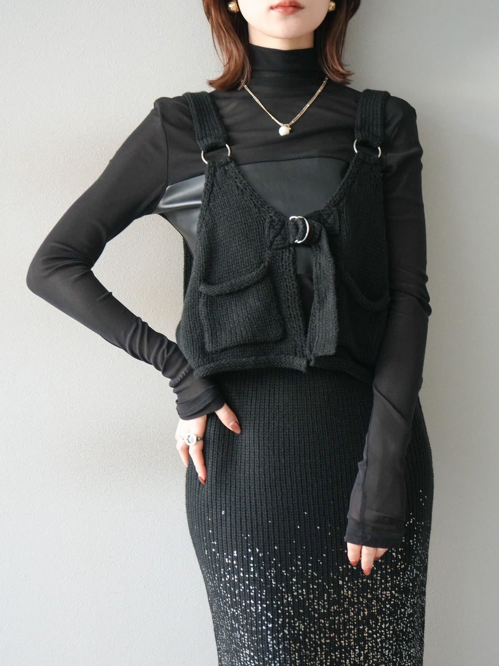 [予約]バイカラーレイヤードデザインニットプルオーバー/gray