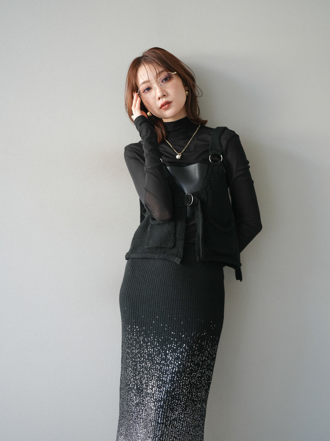 [予約]箔プリントニットタイトスカート/coffeebrown