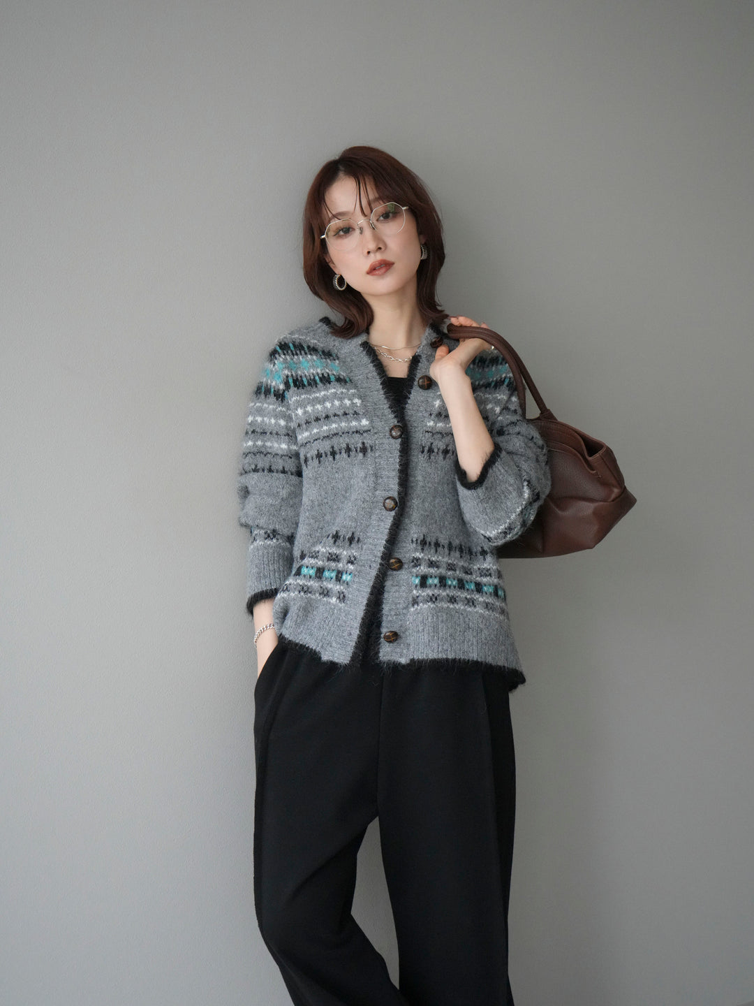[予約]求心柄ウッドボタンニットカーディガン/gray