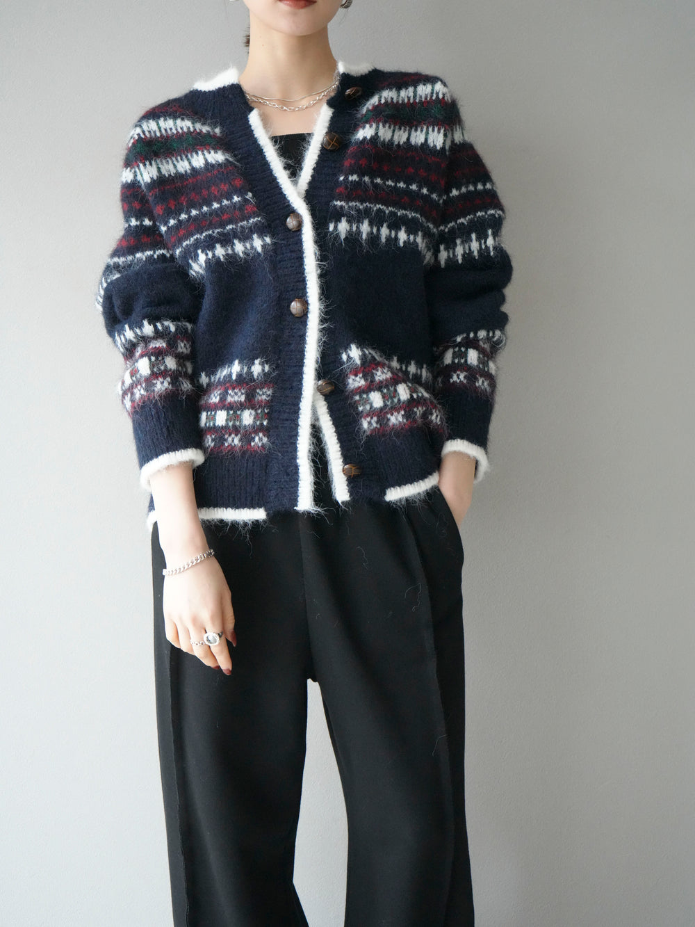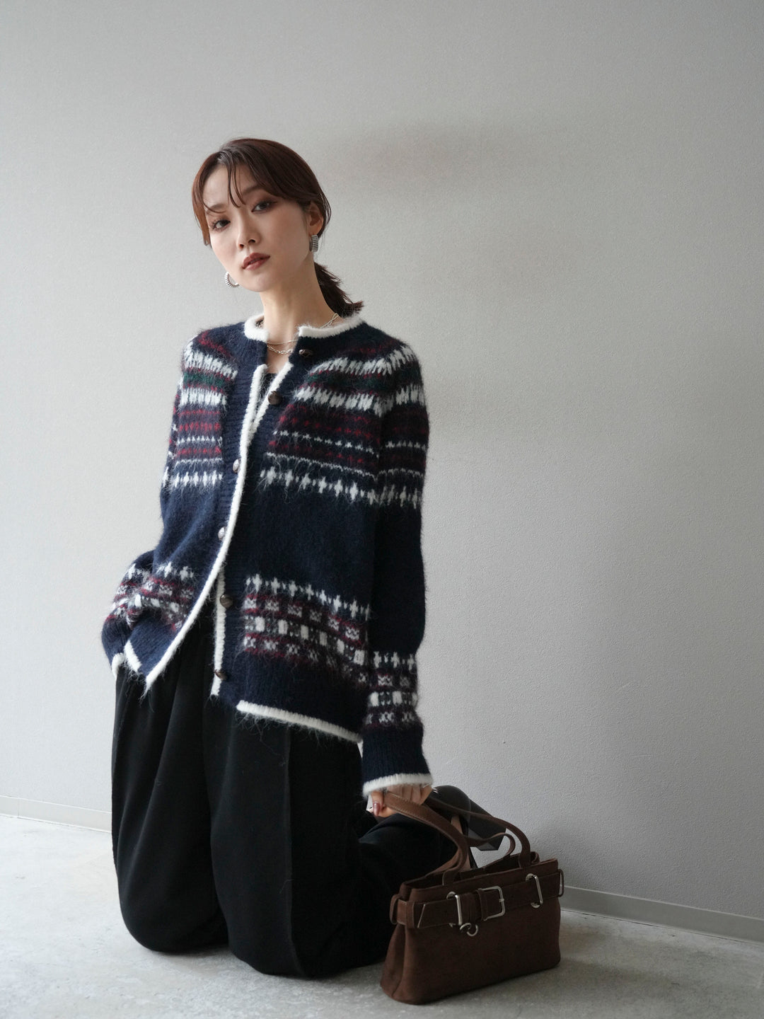 [予約]求心柄ウッドボタンニットカーディガン/navy