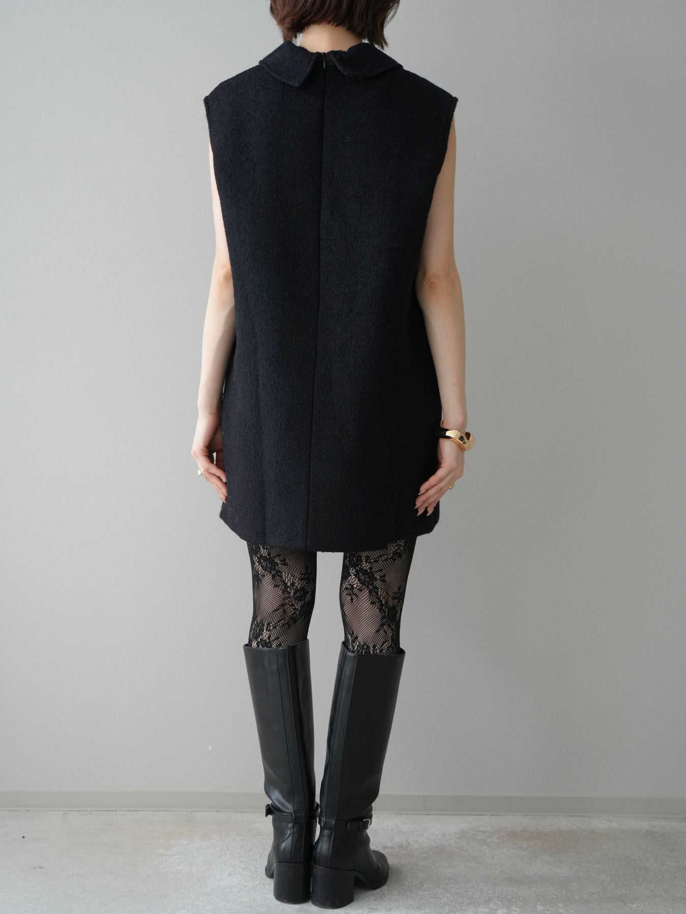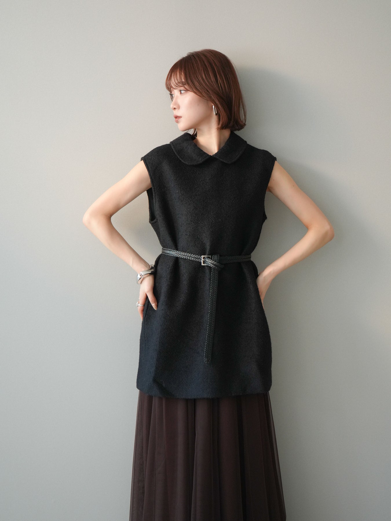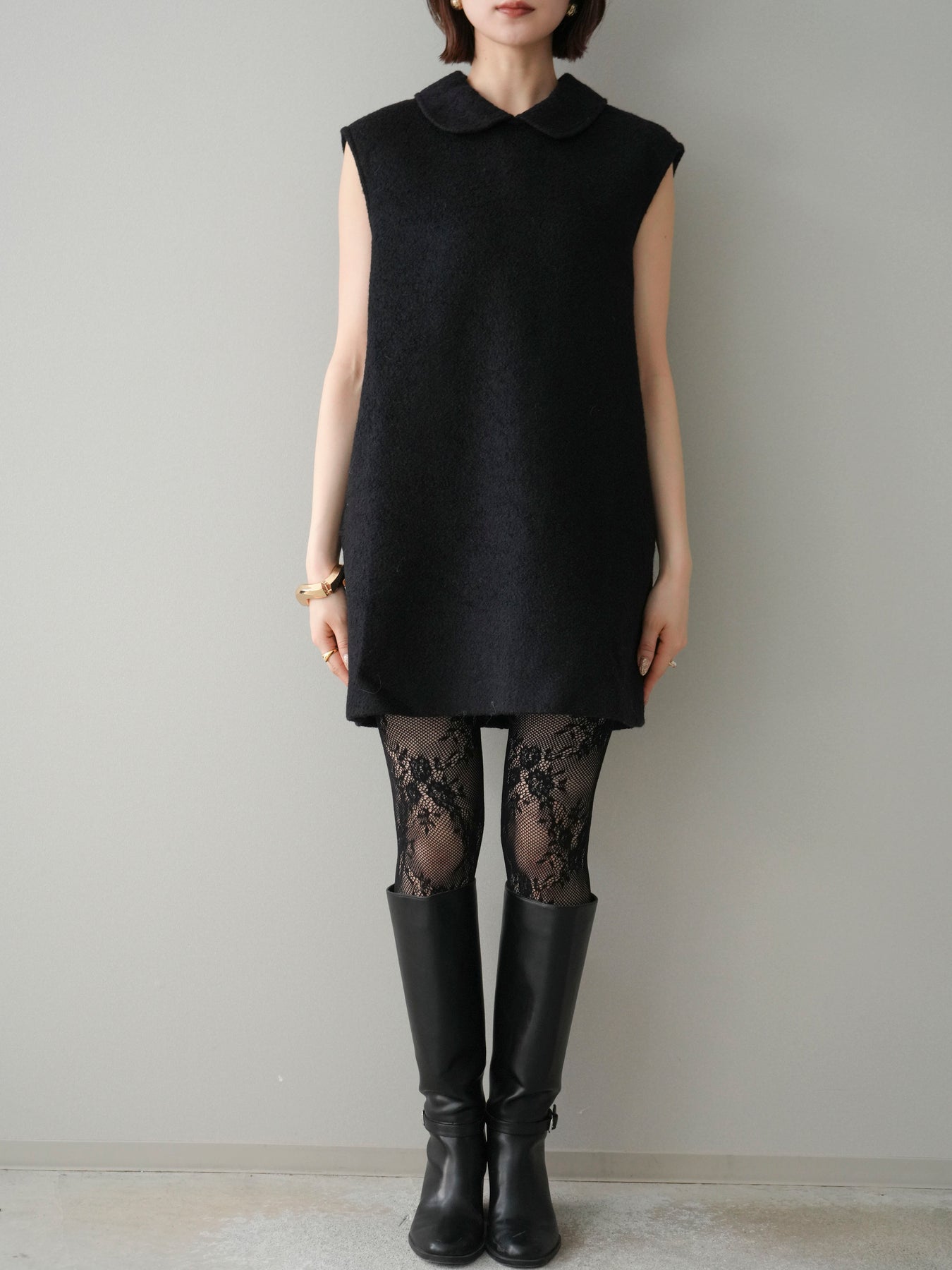 表情のあるブークレ素材が上品な印象を与える、襟付きデザインのミニワンピース。 柔らかな凹凸感のある生地が立体感を生み、シンプルながらも存在感のある一着に仕上がっています。 コンパクトな襟がきちんと感をプラスし、レイヤード次第で幅広いスタイリングが楽しめるデザイン。 程よくゆとりのあるシルエットで、体のラインを拾いすぎず、バランス良く着こなせます。 一枚ではもちろん、ボトムと合わせたレイヤードスタイルもおすすめのアイテムです。 ※ボトムス、キャミソール(インナー)以外の商品は一律でインナーは付属していません。