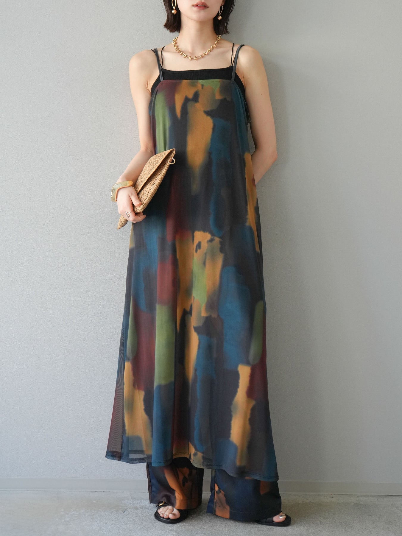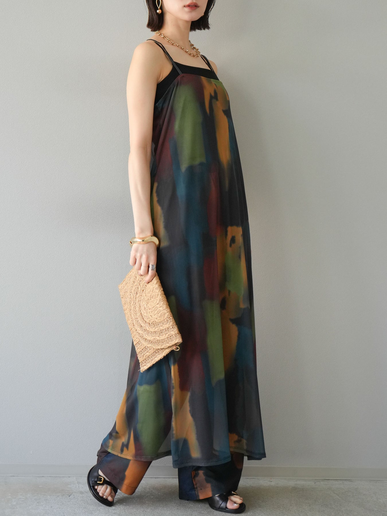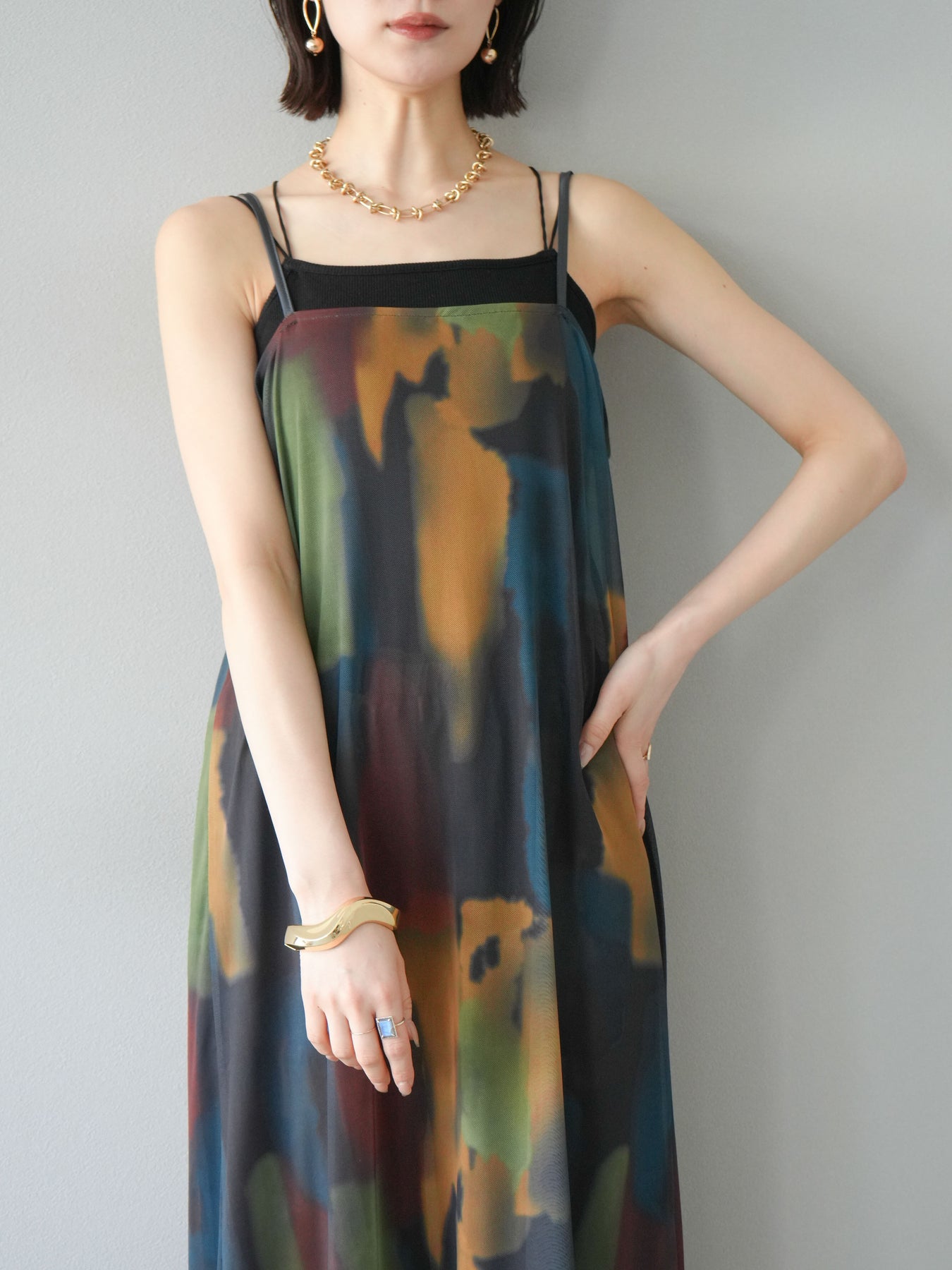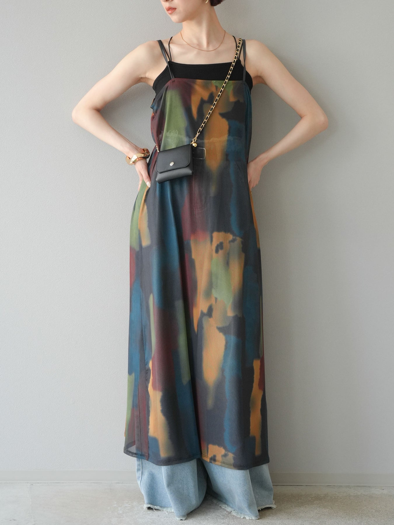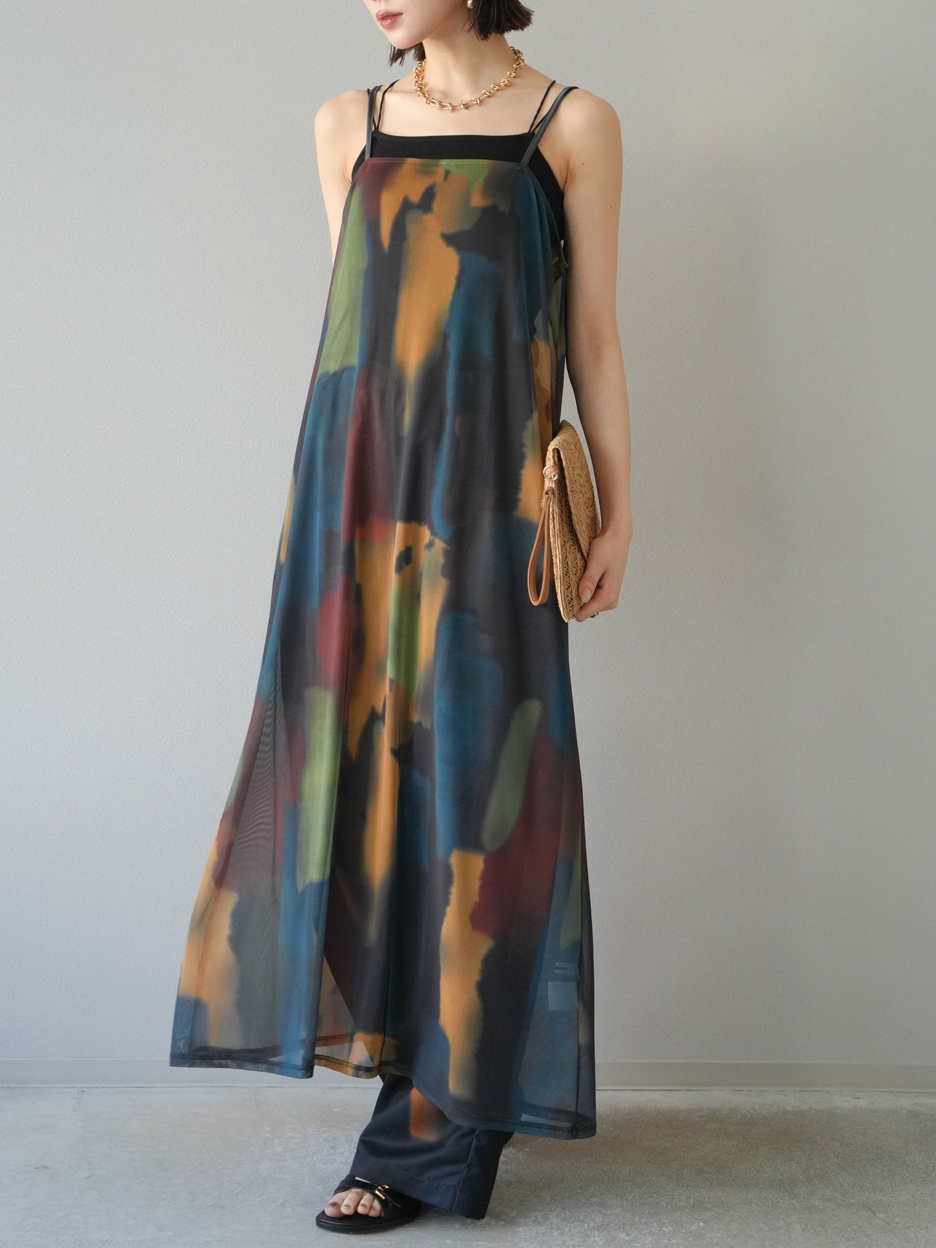 [予約]水彩アートシアーキャミワンピース/チャコール