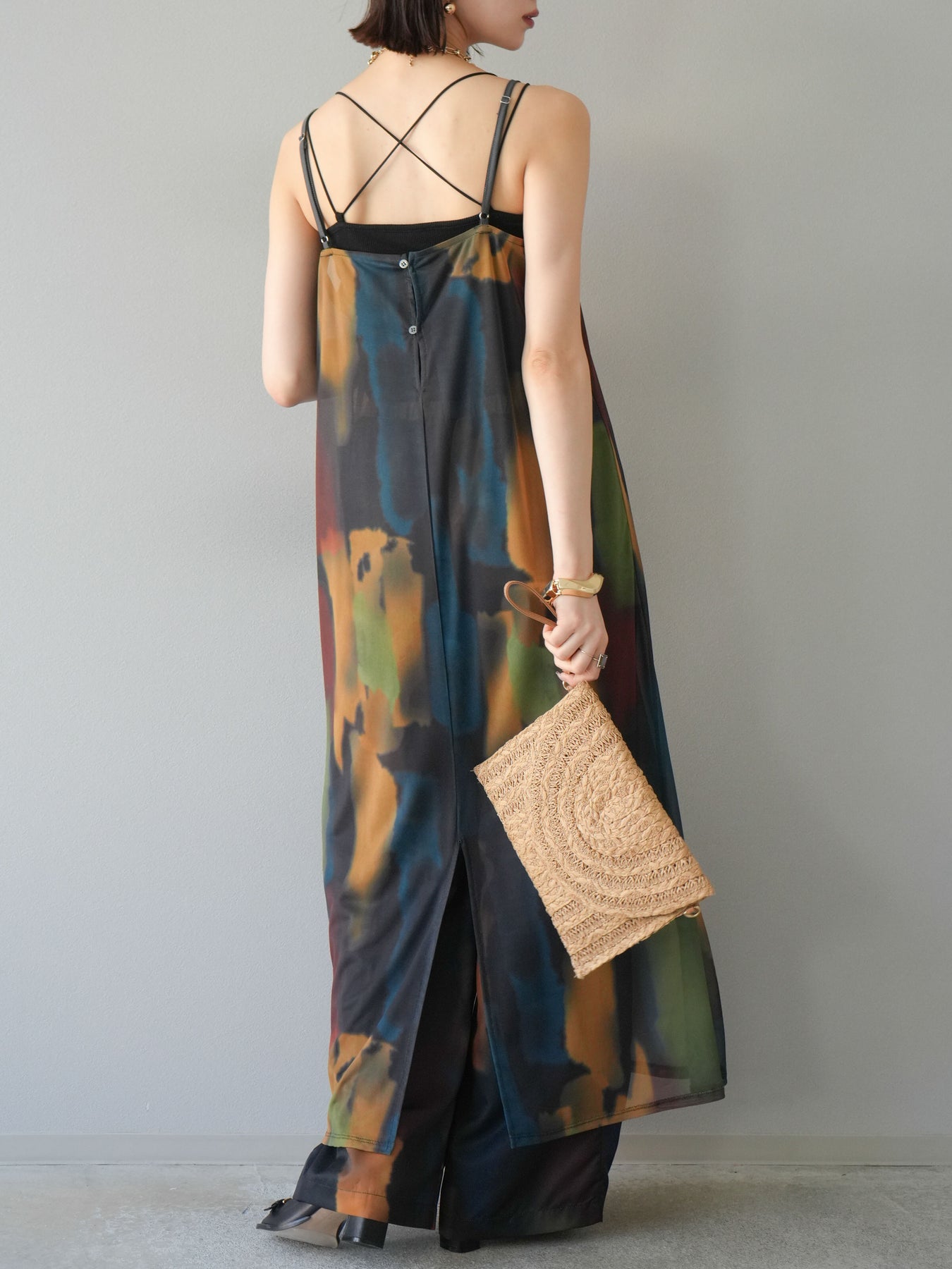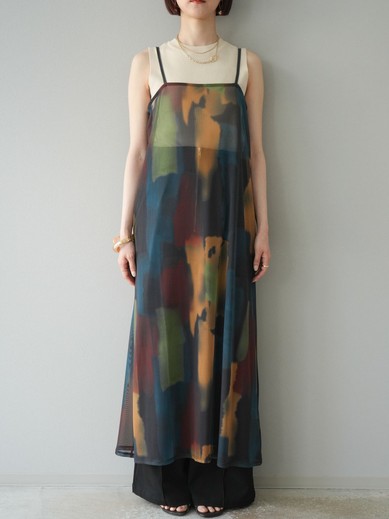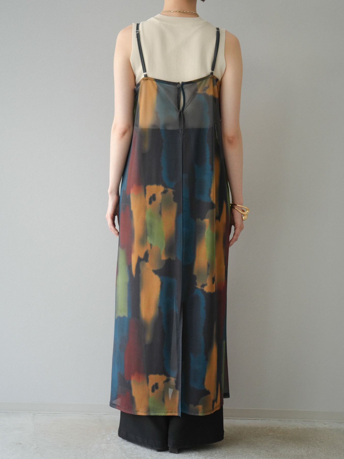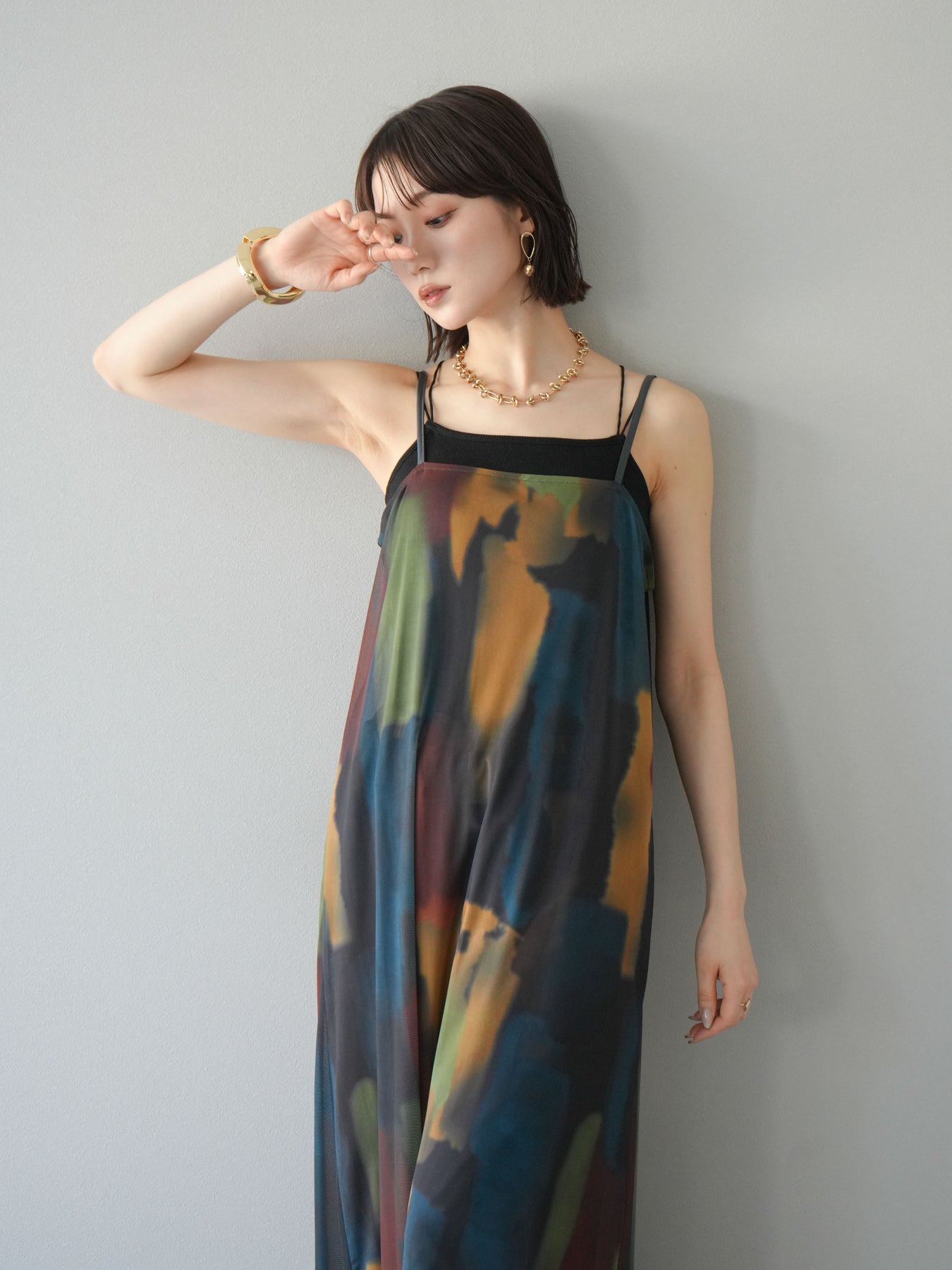 [予約]水彩アートシアーキャミワンピース/チャコール