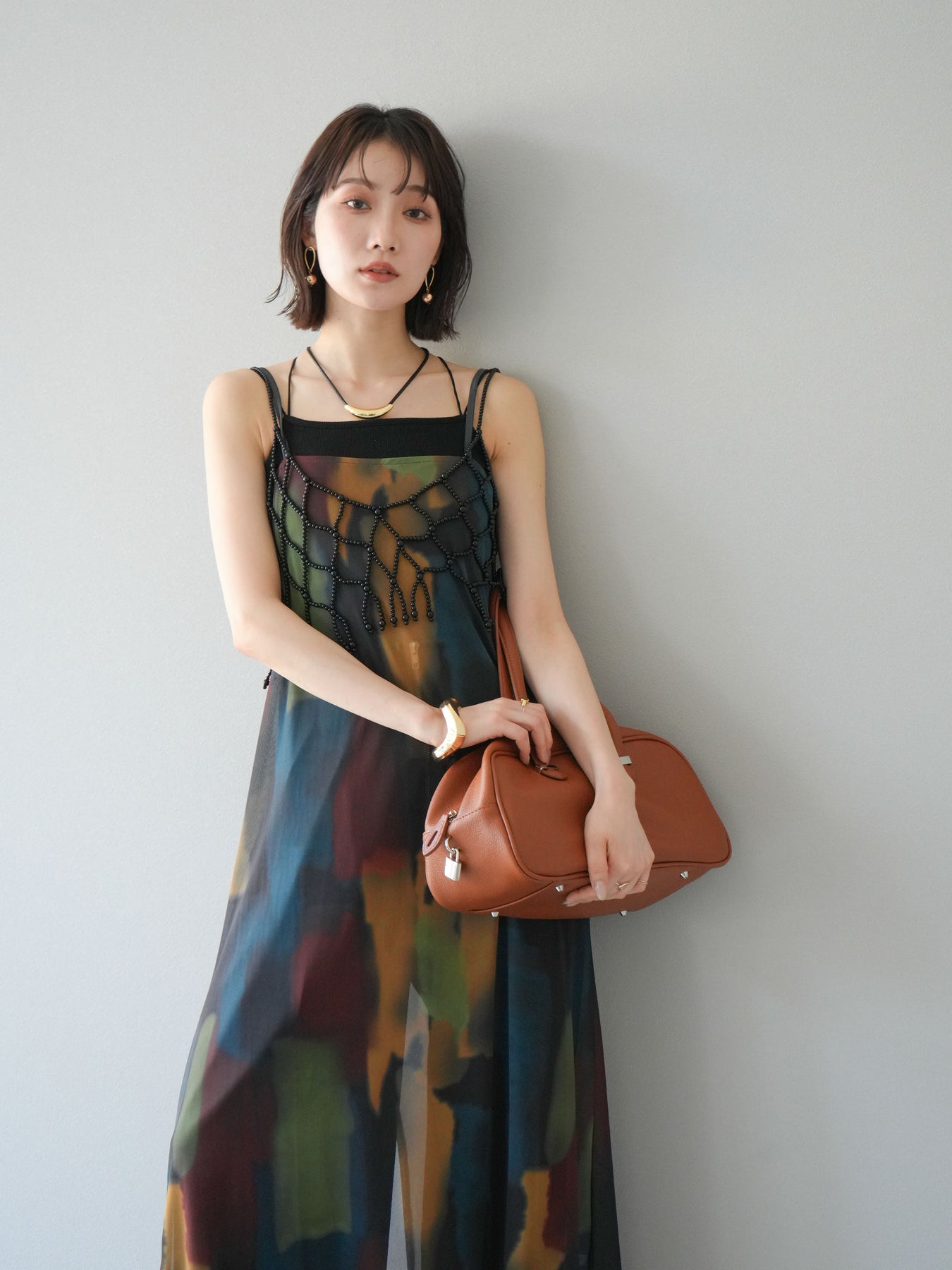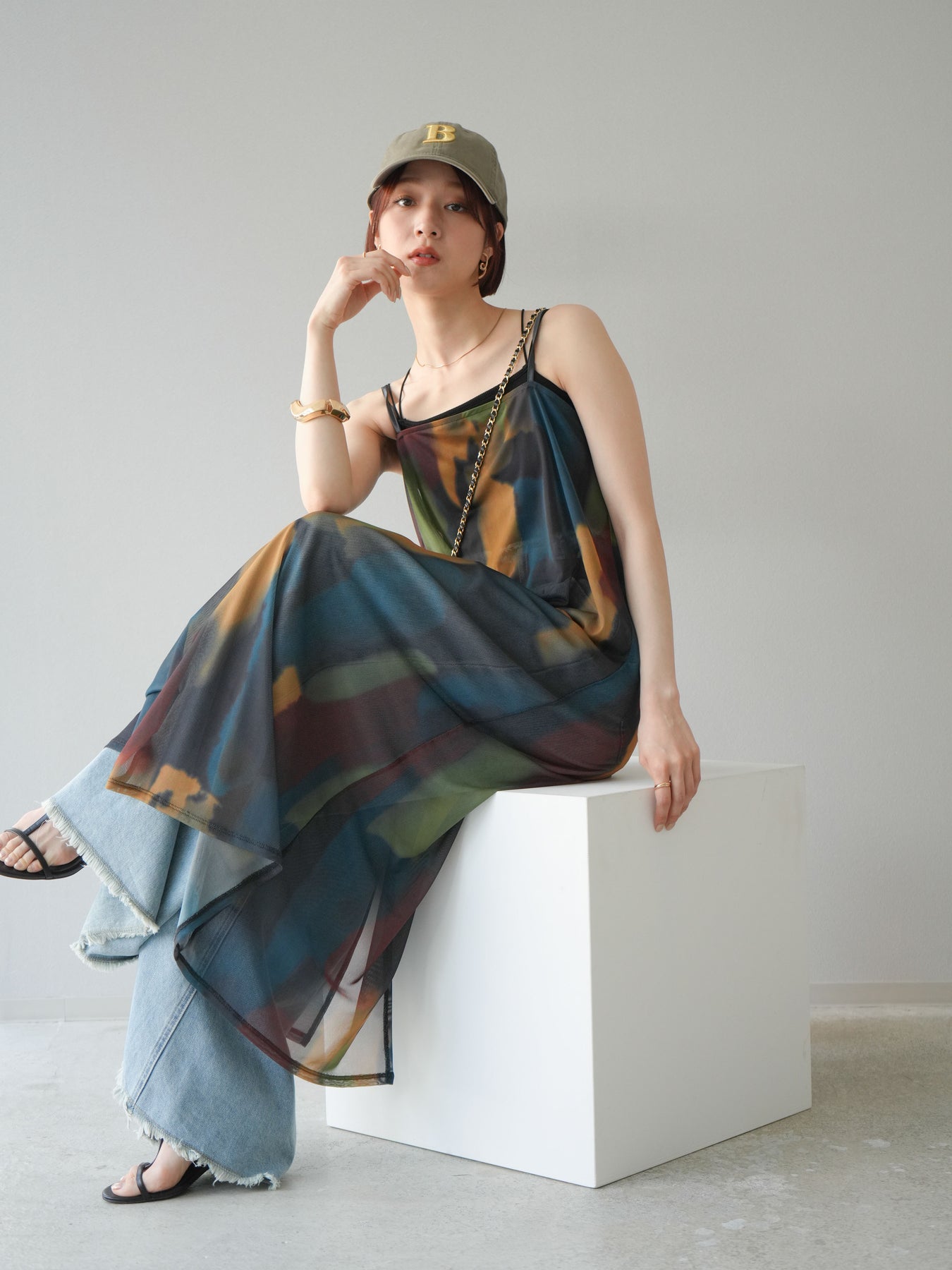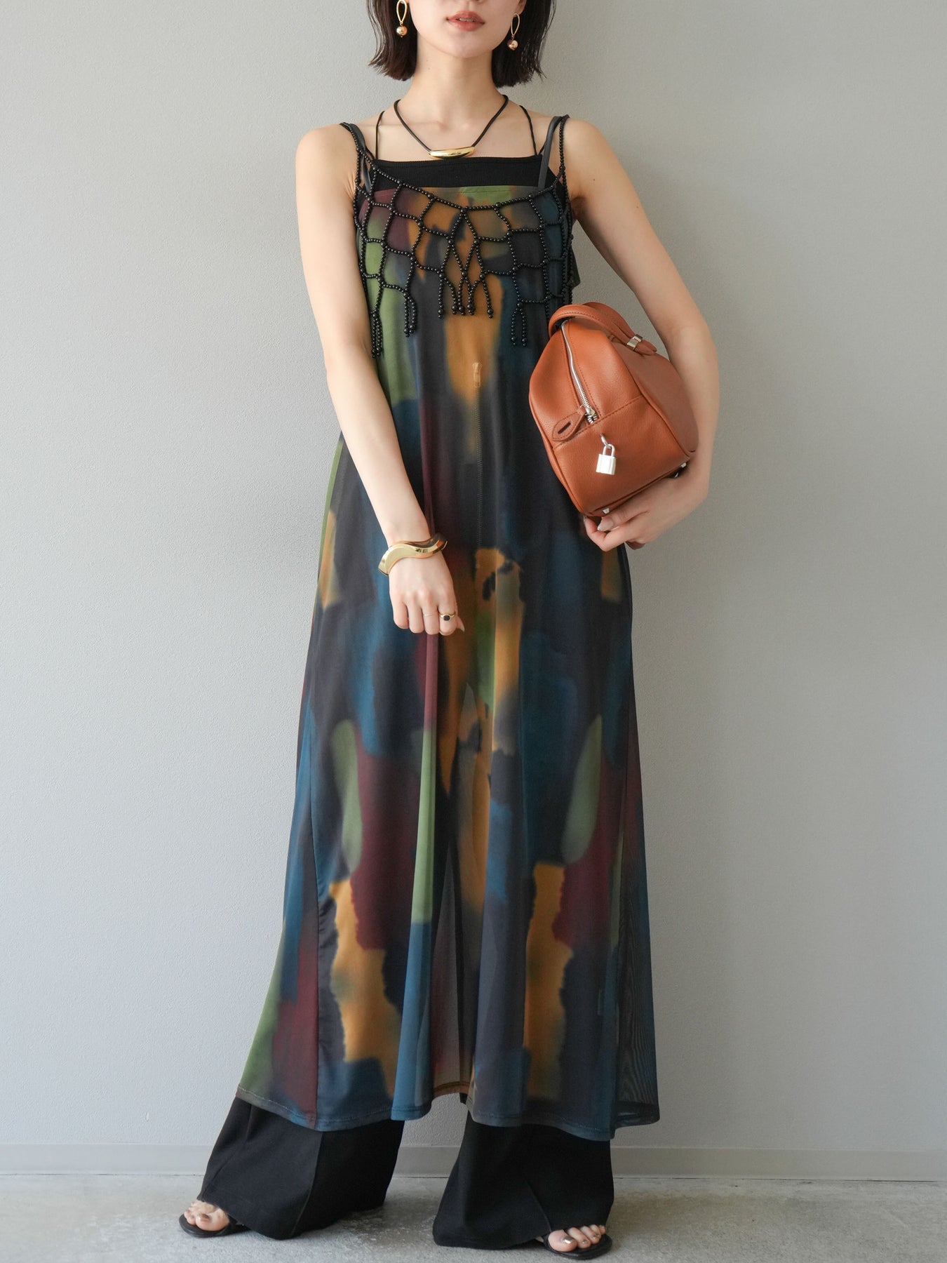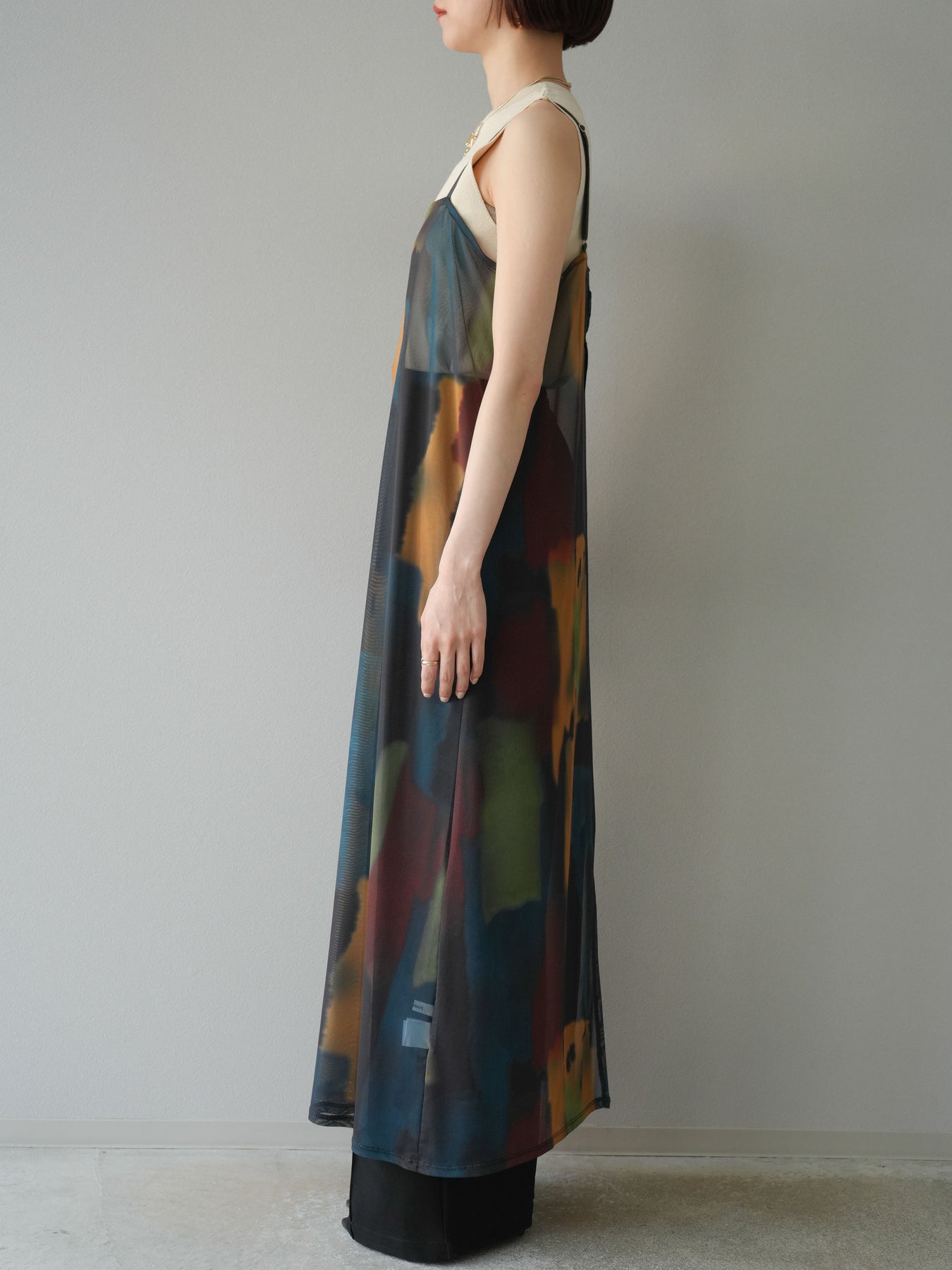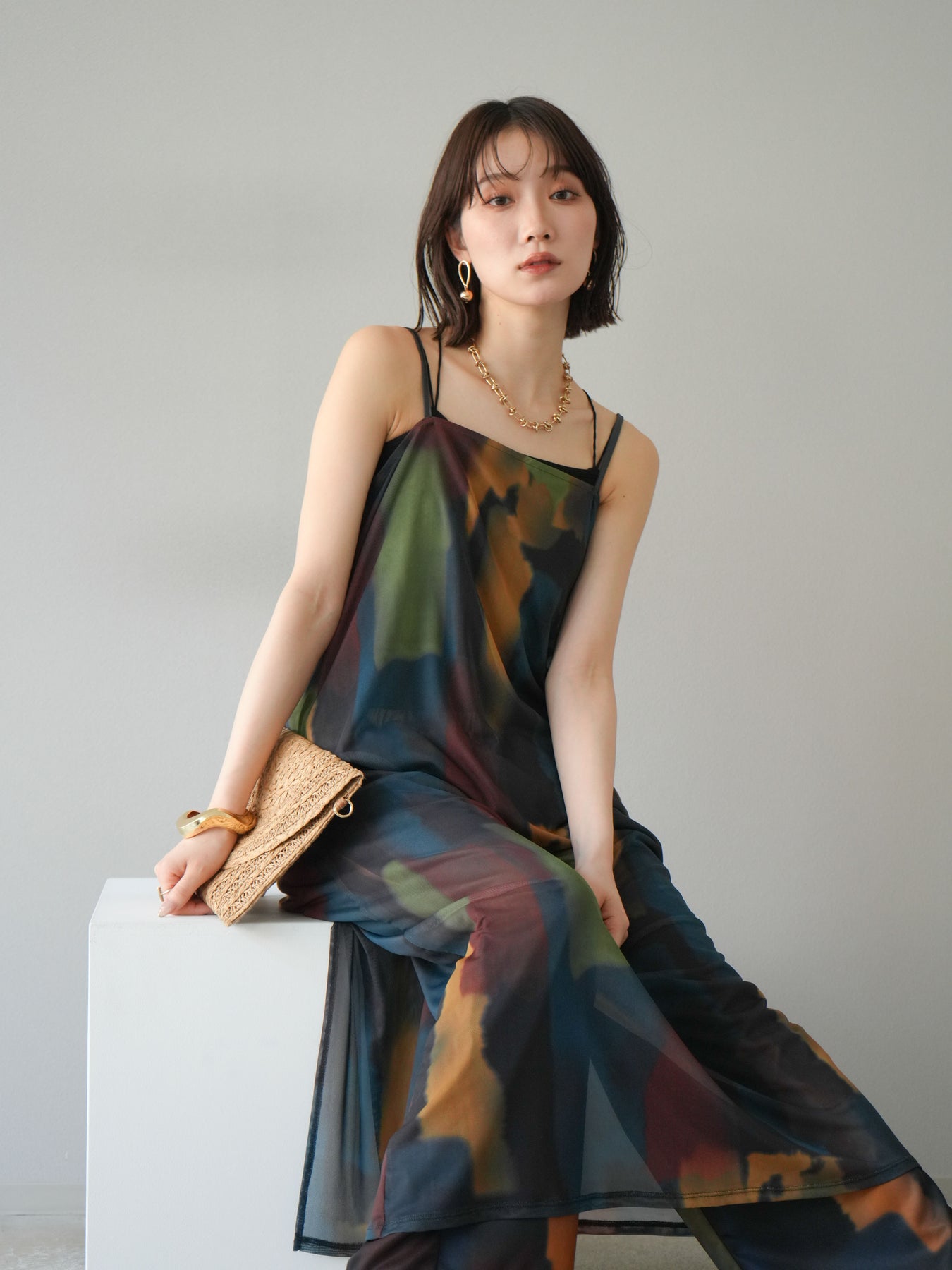 [予約]水彩アートシアーキャミワンピース/チャコール