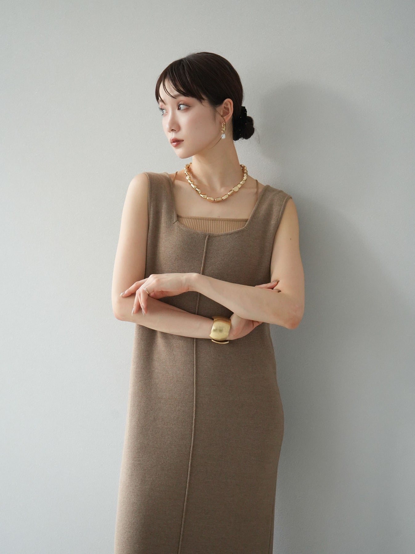 シンプルながら洗練されたスクエアネックのデザインが特徴のニットワンピース。ボディラインを美しく引き立てるシルエットで、一枚で存在感を演出します。ソフトな肌触りのニット素材を使用し、快適な着心地を実現。秋冬のコーディネートに取り入れやすく、カジュアルにもドレッシーにも使える万能な一着です。 ※ボトムス、キャミソール(インナー)以外の商品は一律でインナーは付属していません。