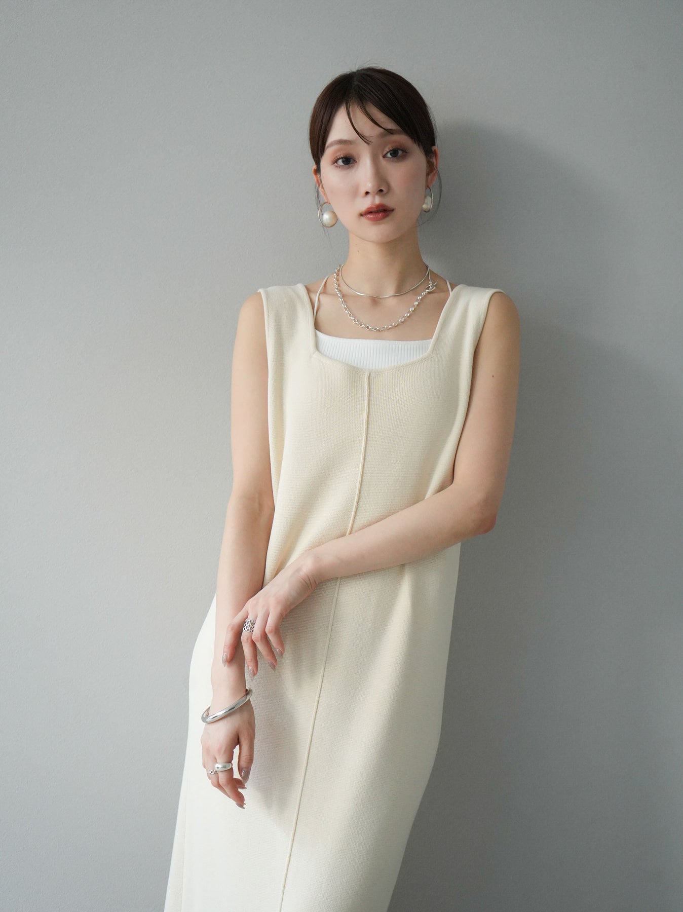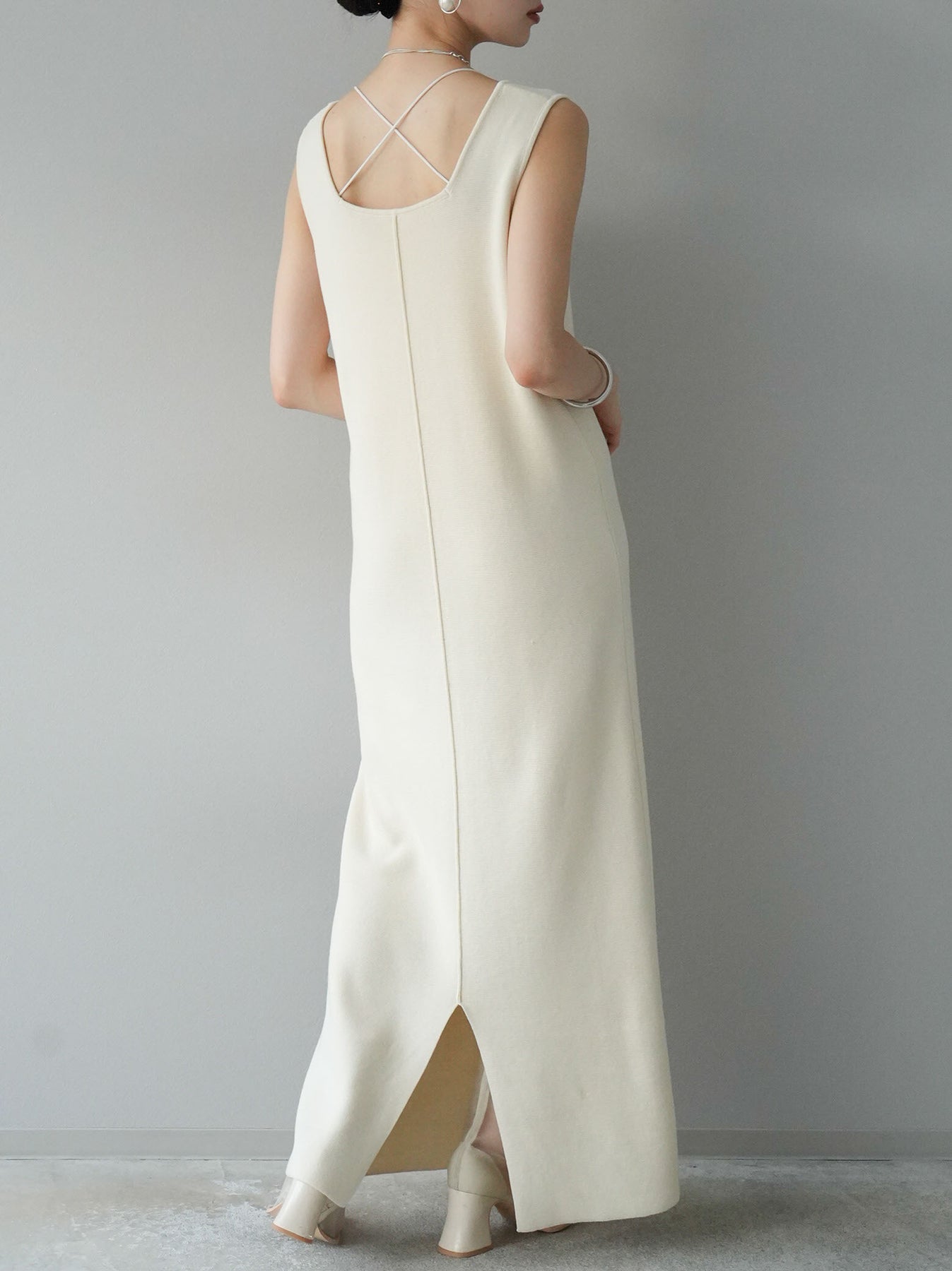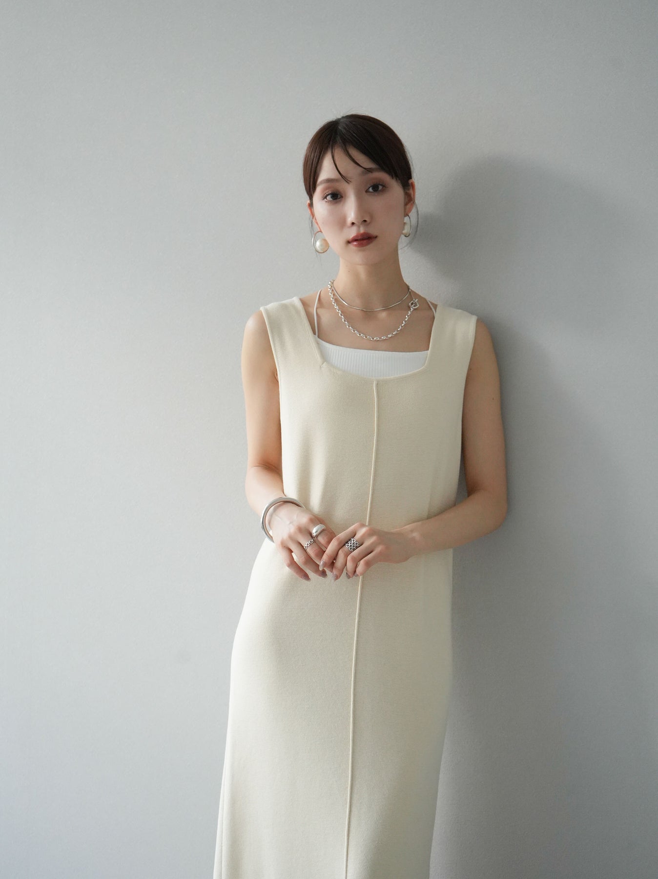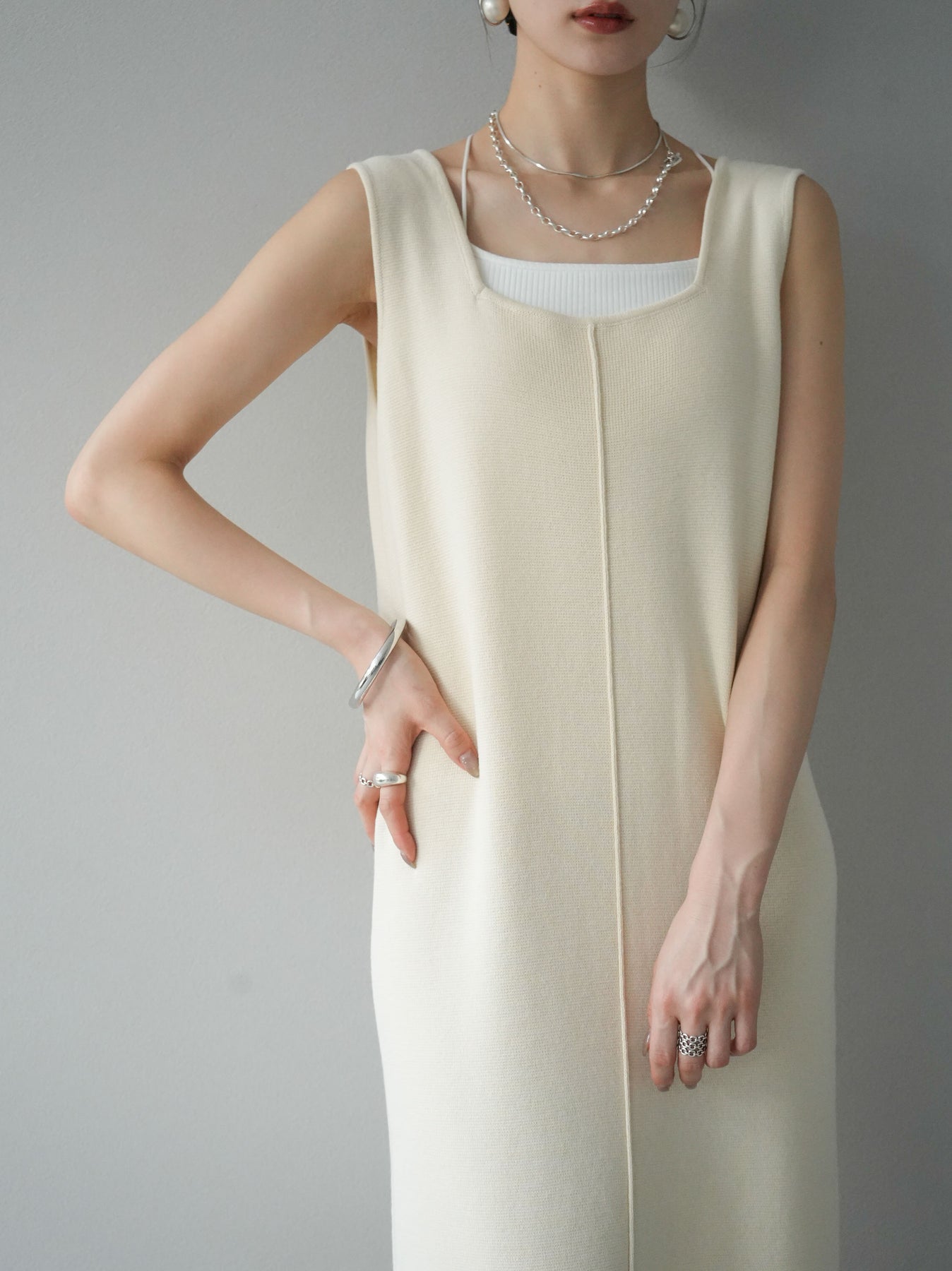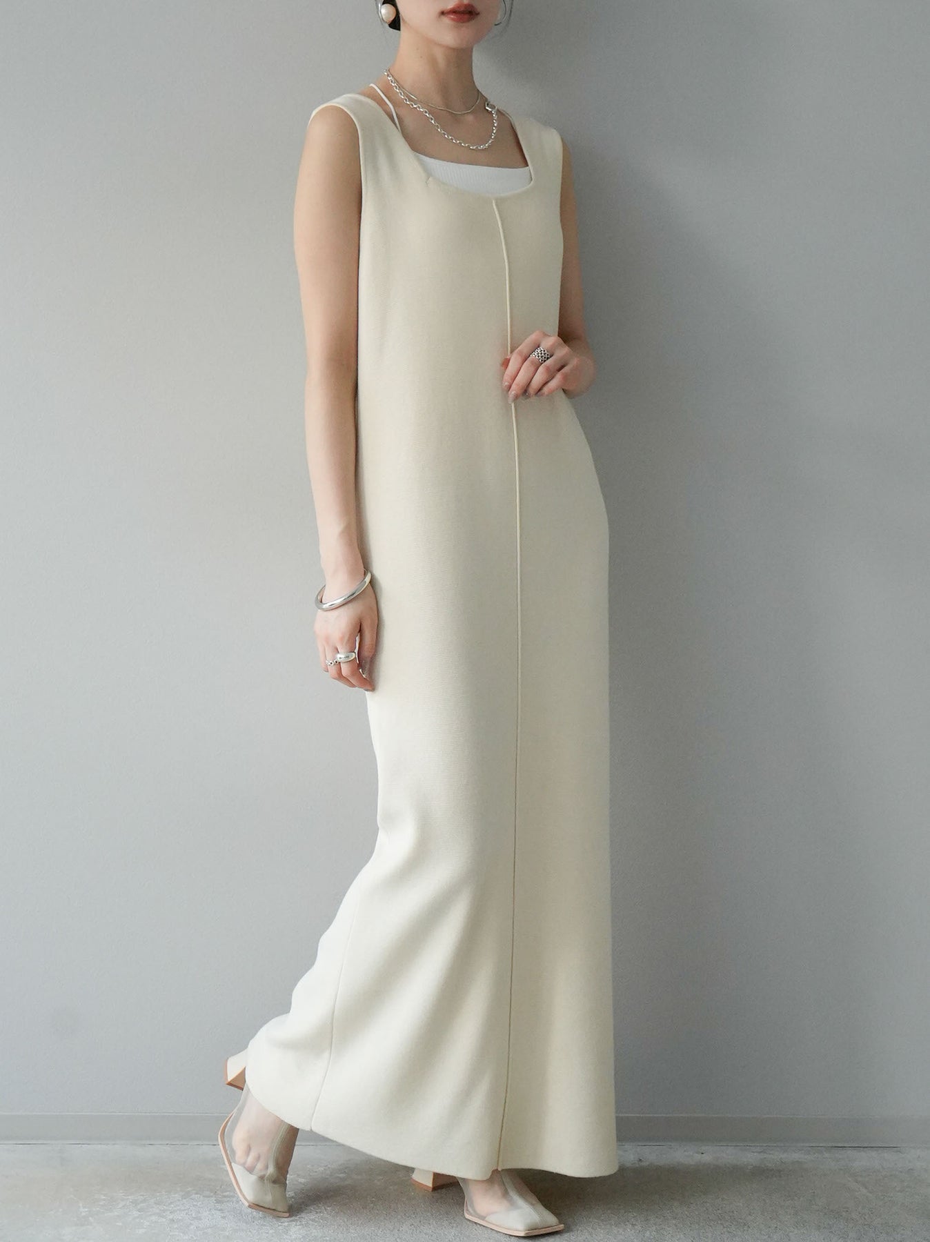 [予約]スクエアネックニットワンピース/アイボリー