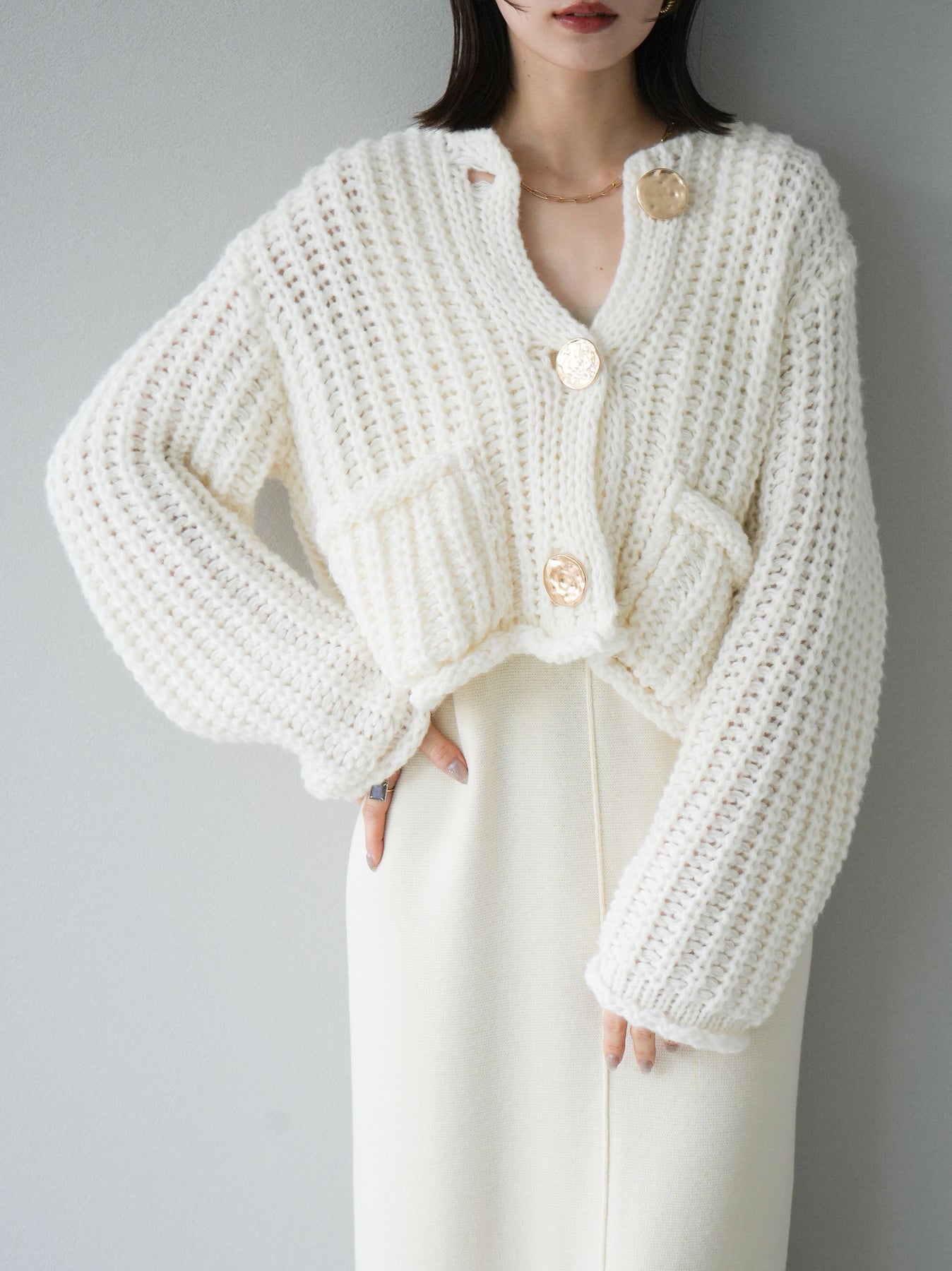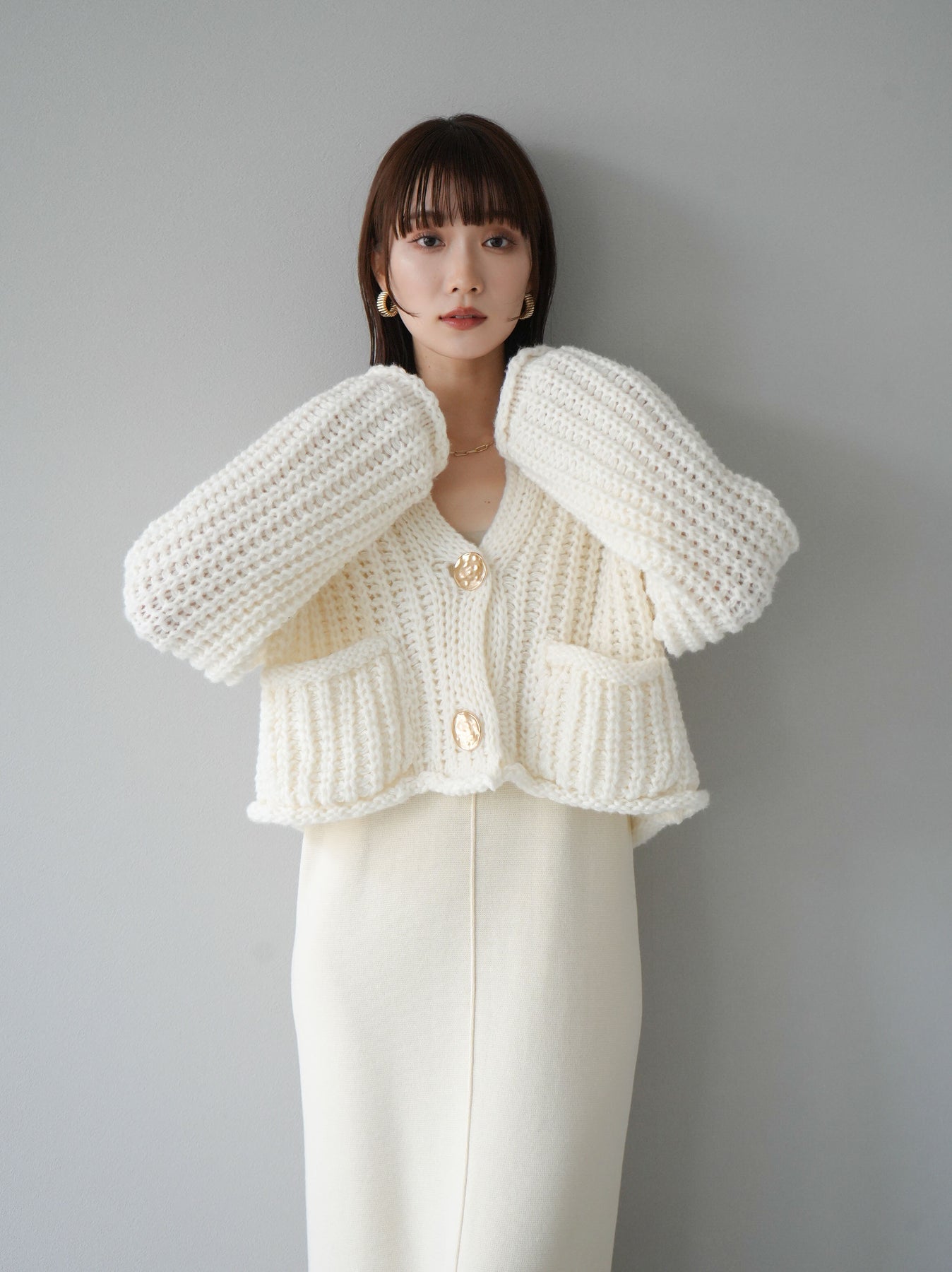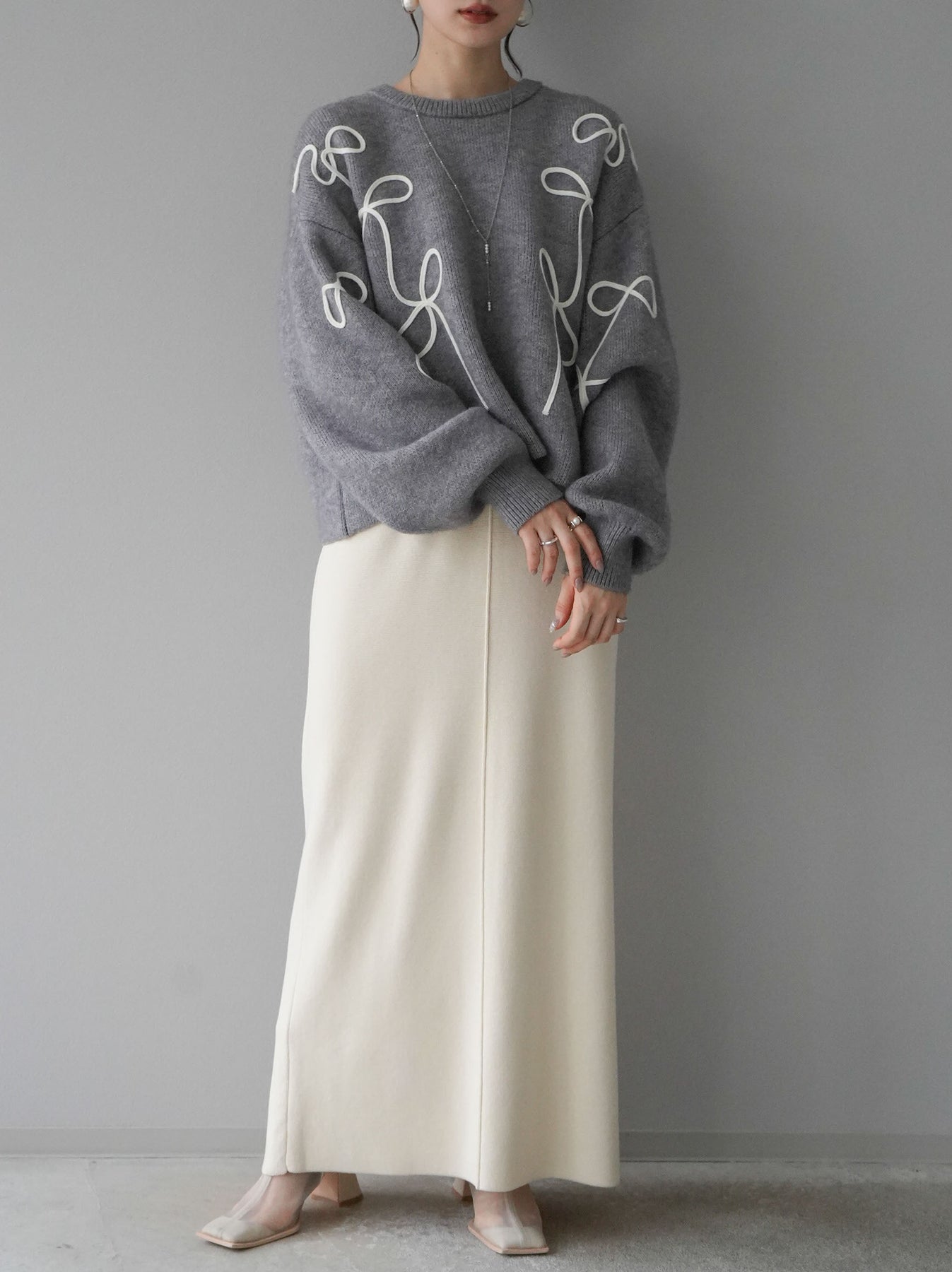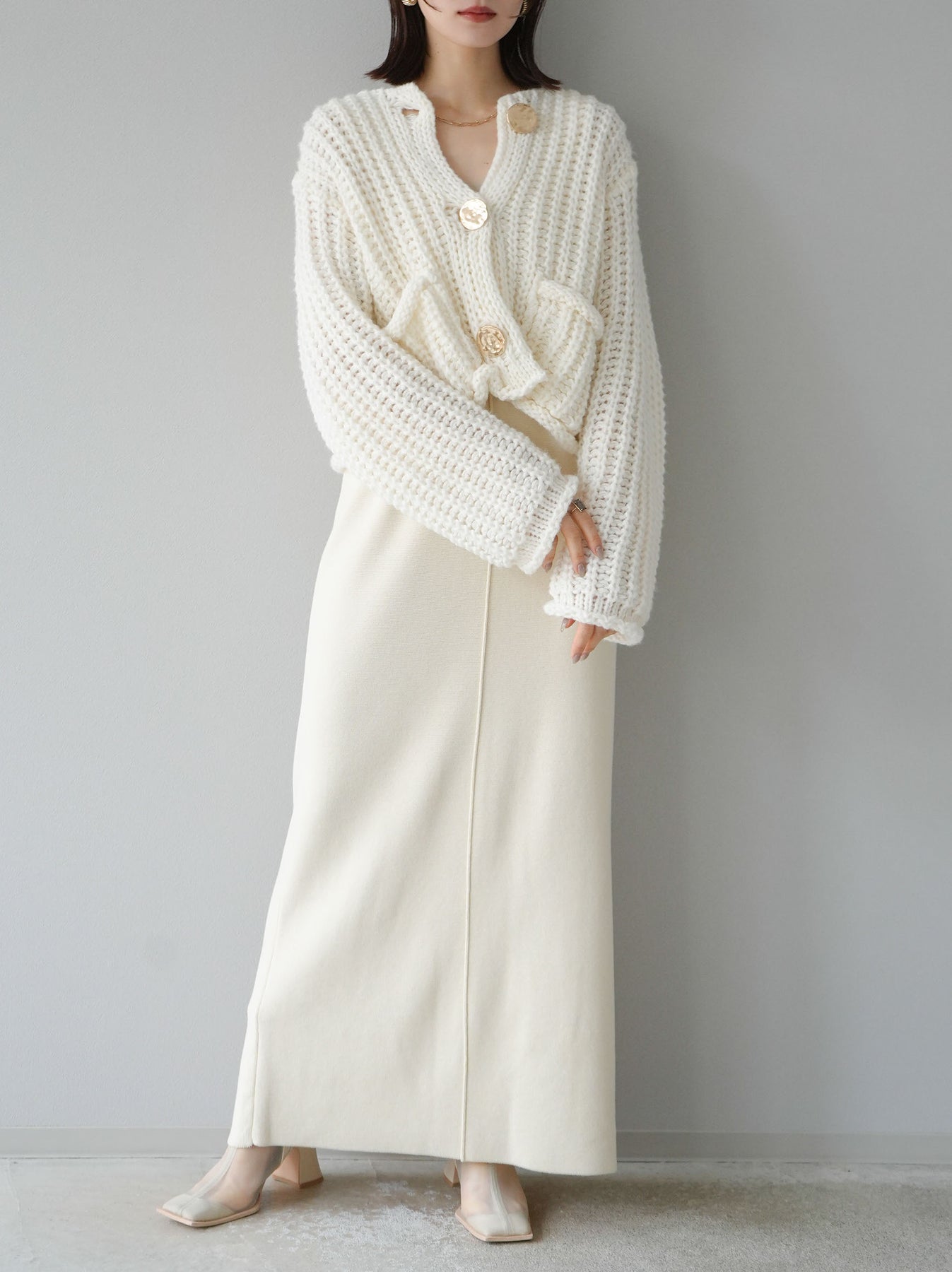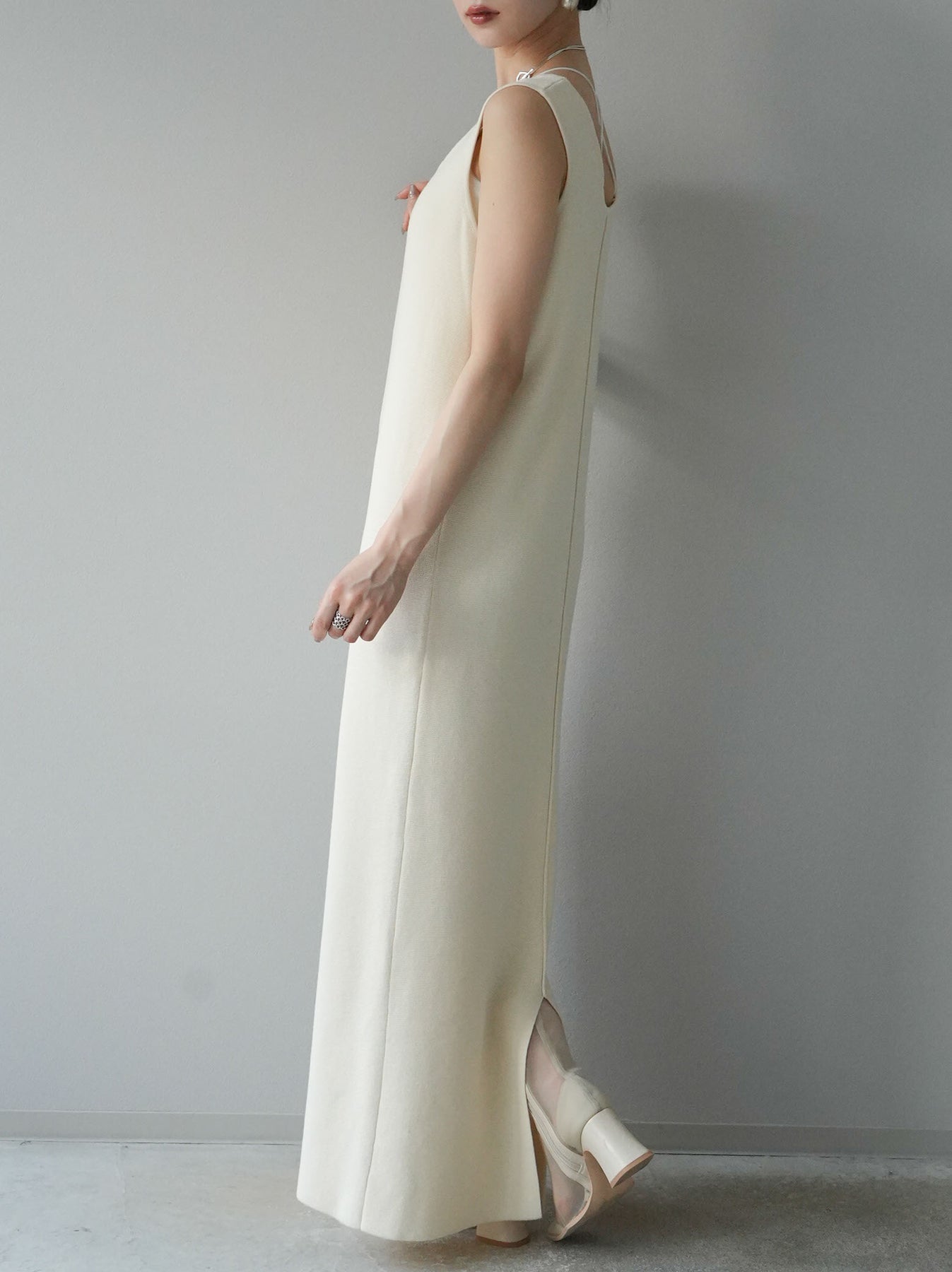 [予約]スクエアネックニットワンピース/アイボリー