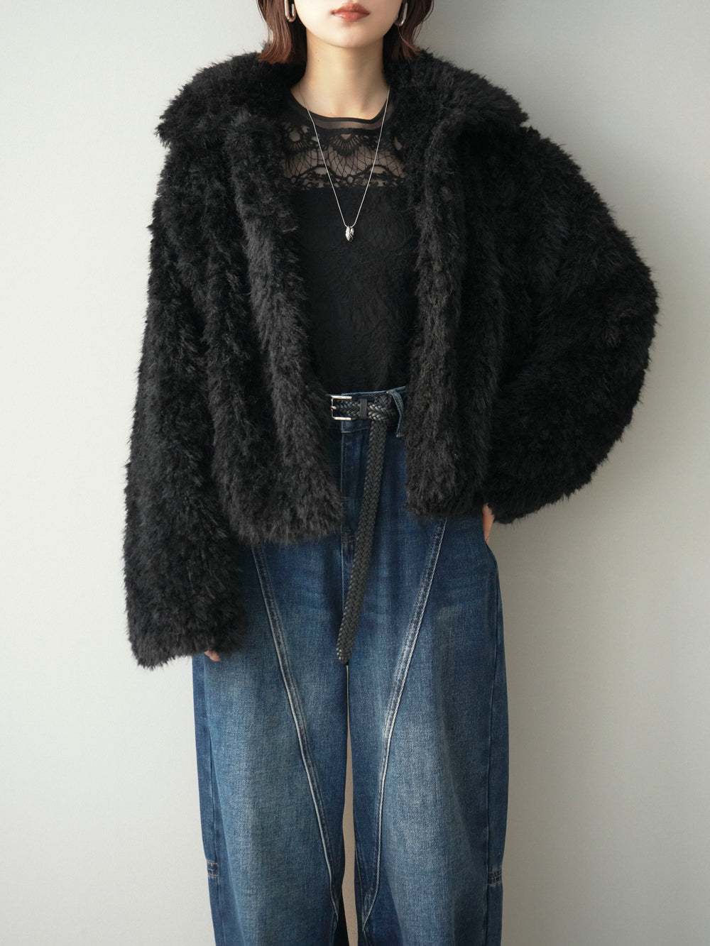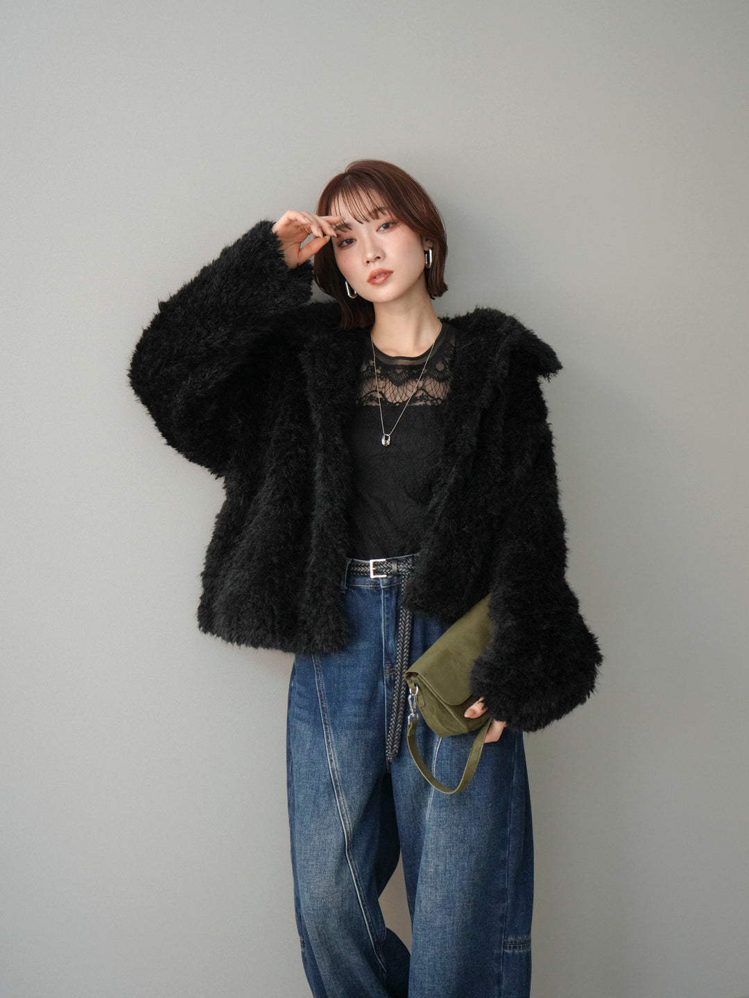 [予約]フェイクファー襟付きショートブルゾン/ivory