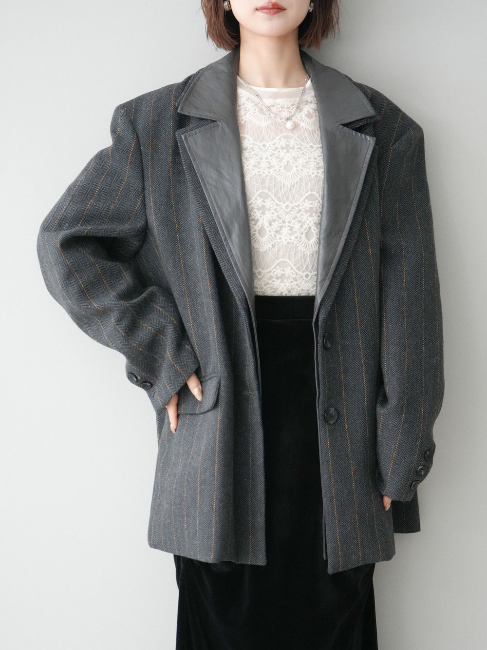 [20%オフ]レイヤードデザインツイードテーラードジャケット/charcoal