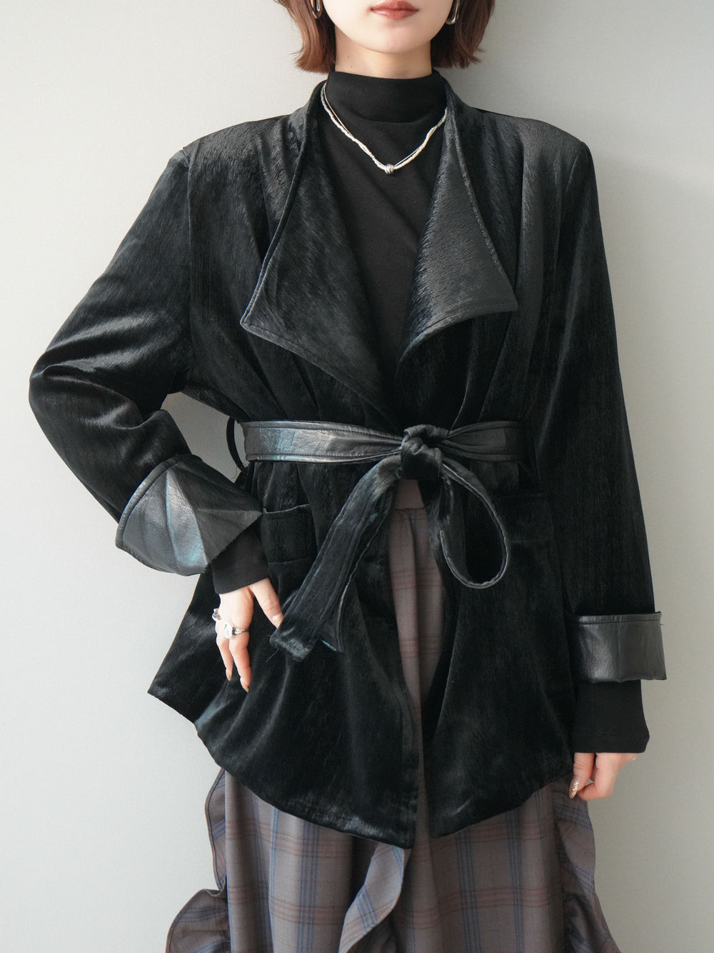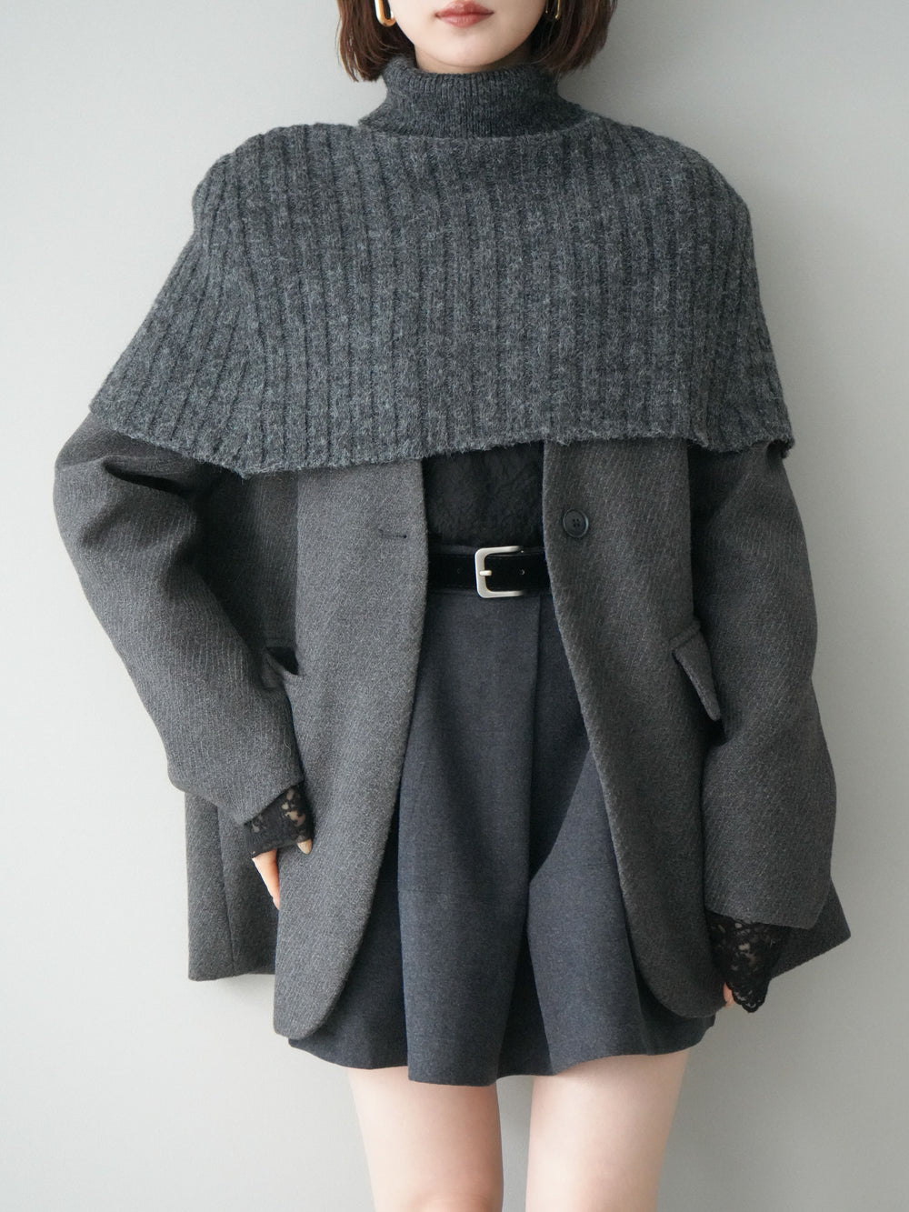 [20%オフ]ケープ付ノーカラージャケット/charcoal