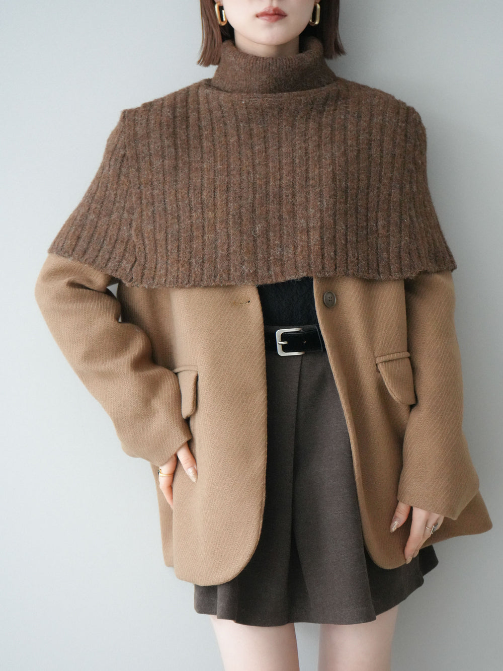 [20%オフ]ケープ付ノーカラージャケット/brown