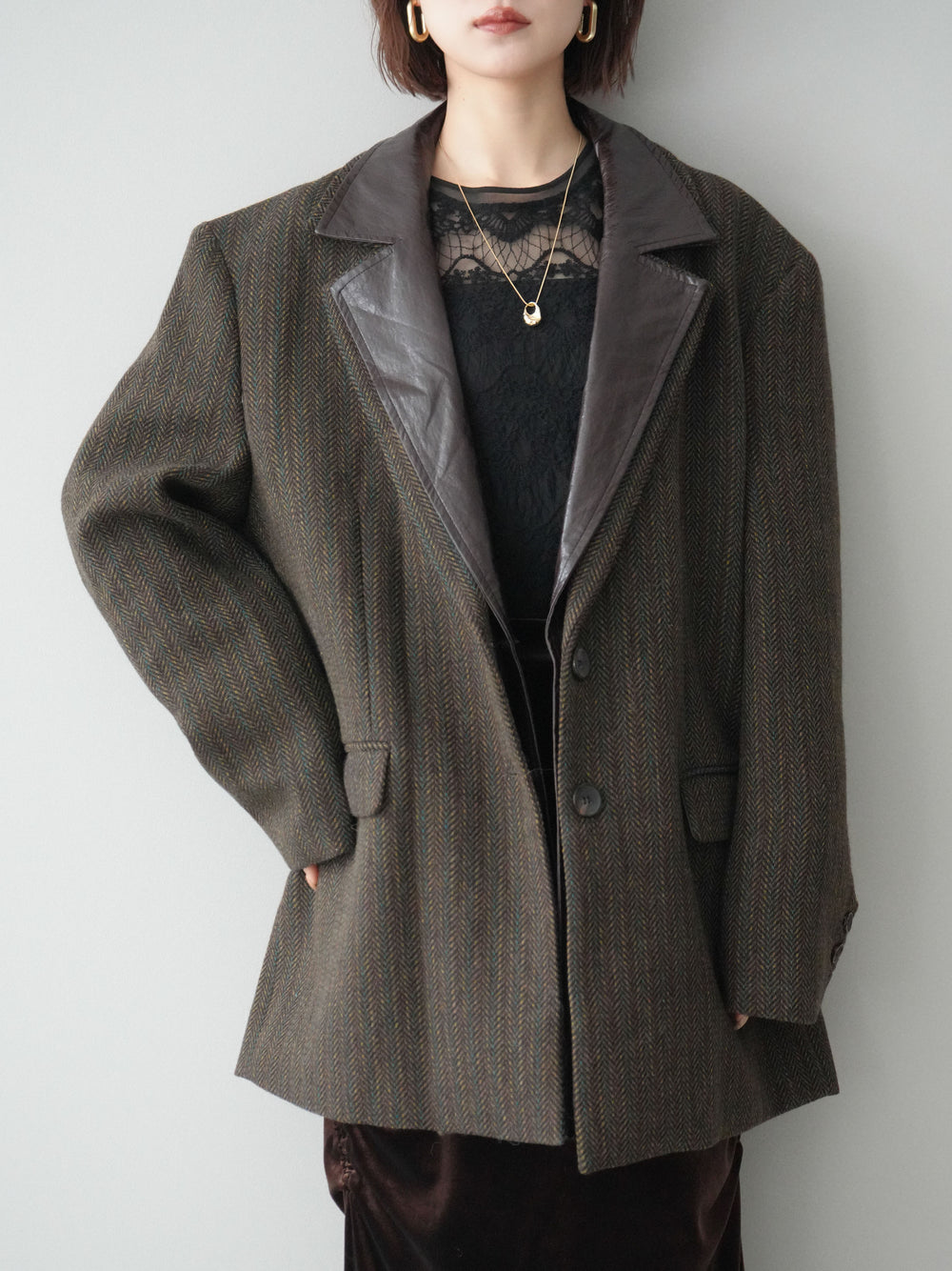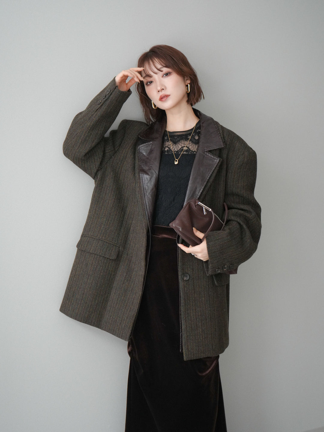 [20%オフ]レイヤードデザインツイードテーラードジャケット/brown