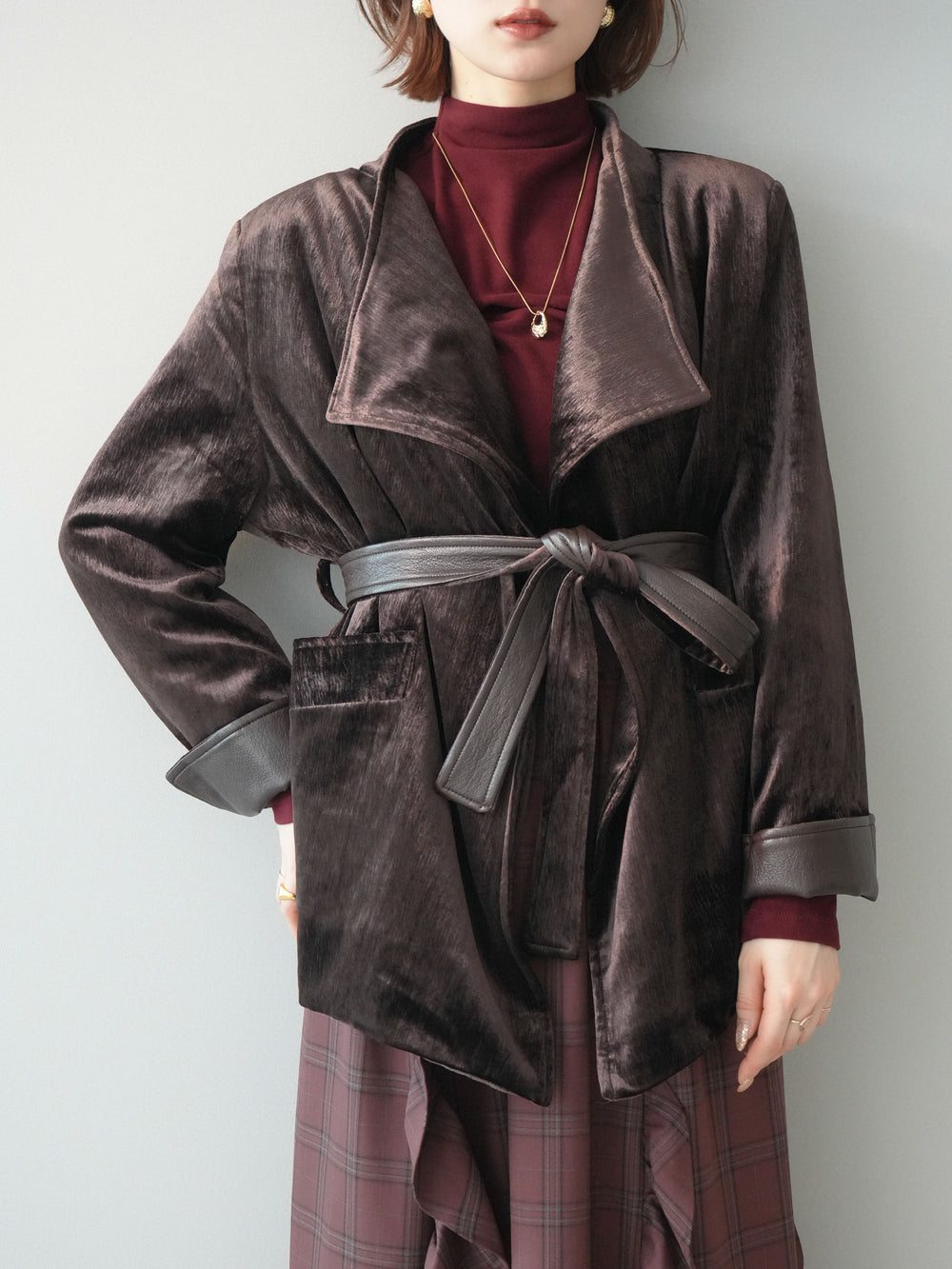 [予約]フェイクファー襟付きショートブルゾン/brown