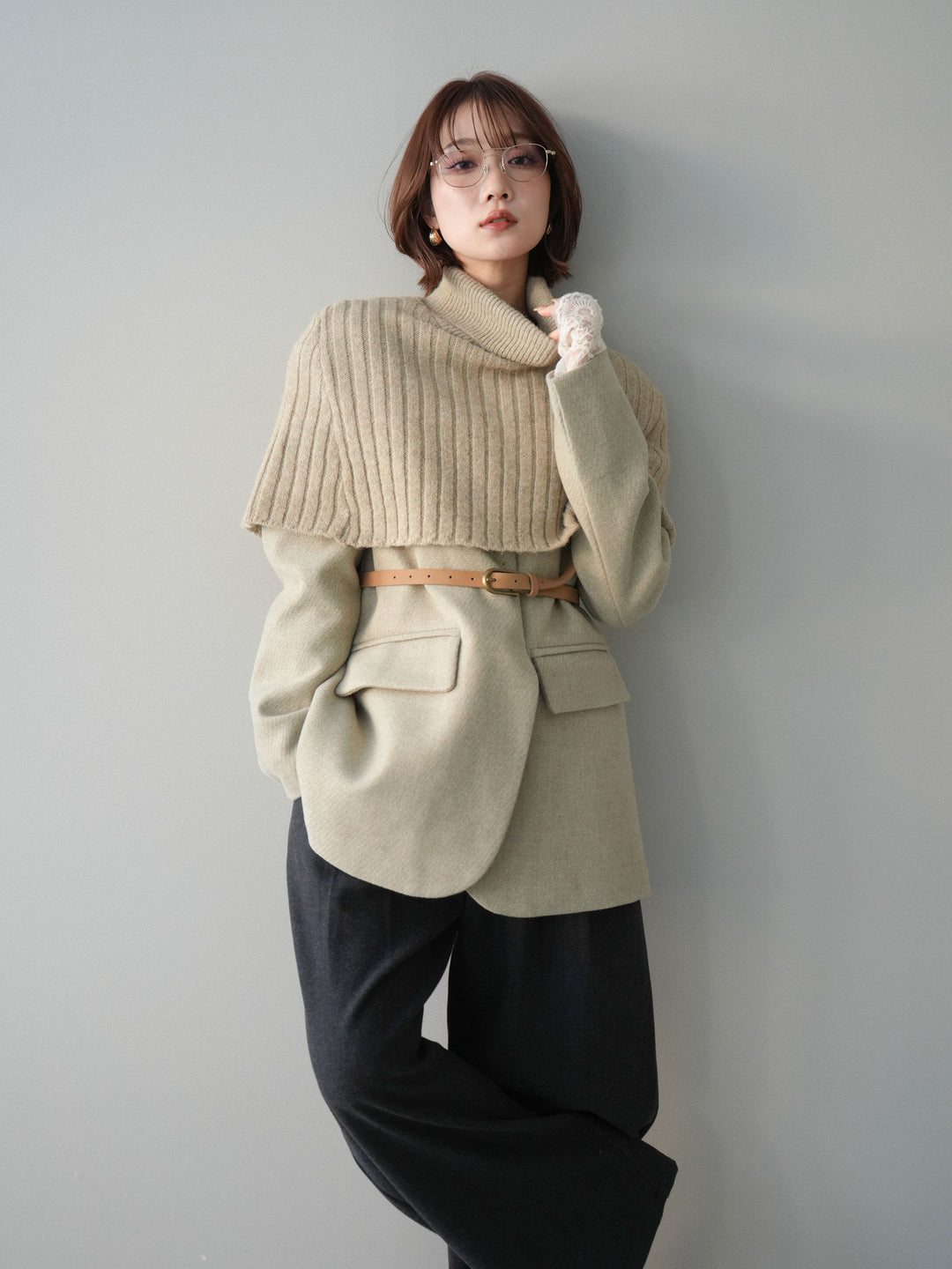 [20%オフ]ケープ付ノーカラージャケット/ivory