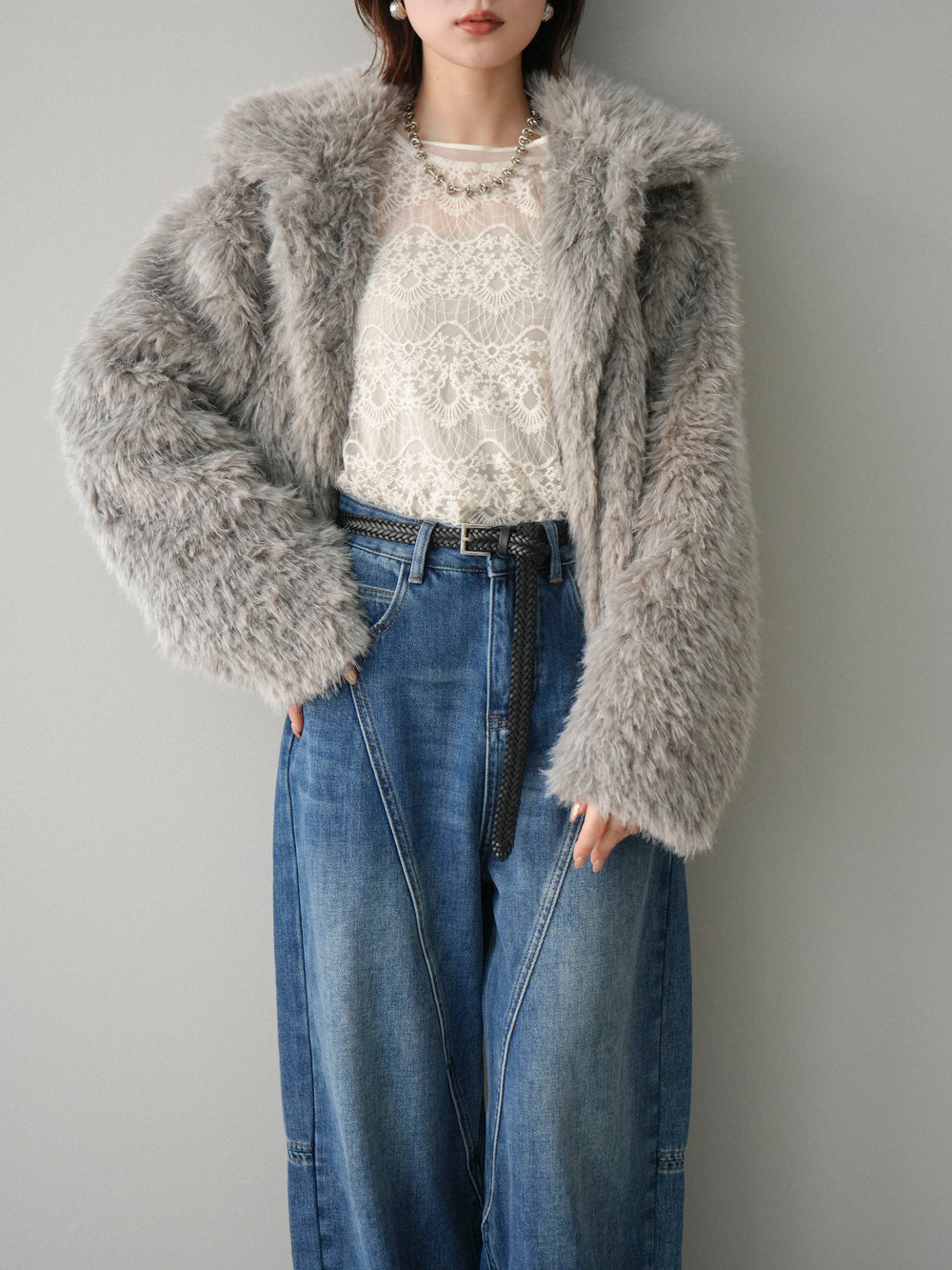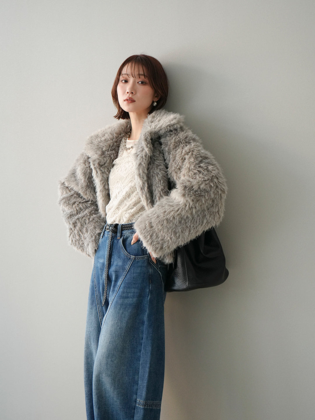 [予約]フェイクファー襟付きショートブルゾン/gray