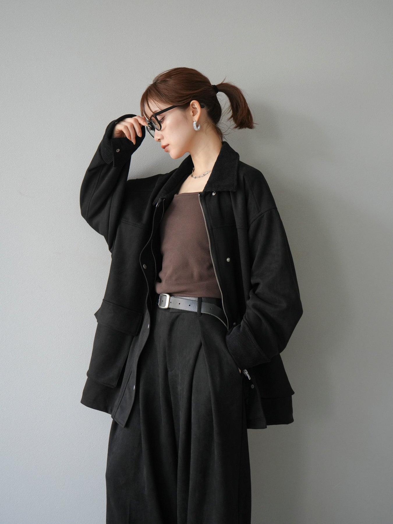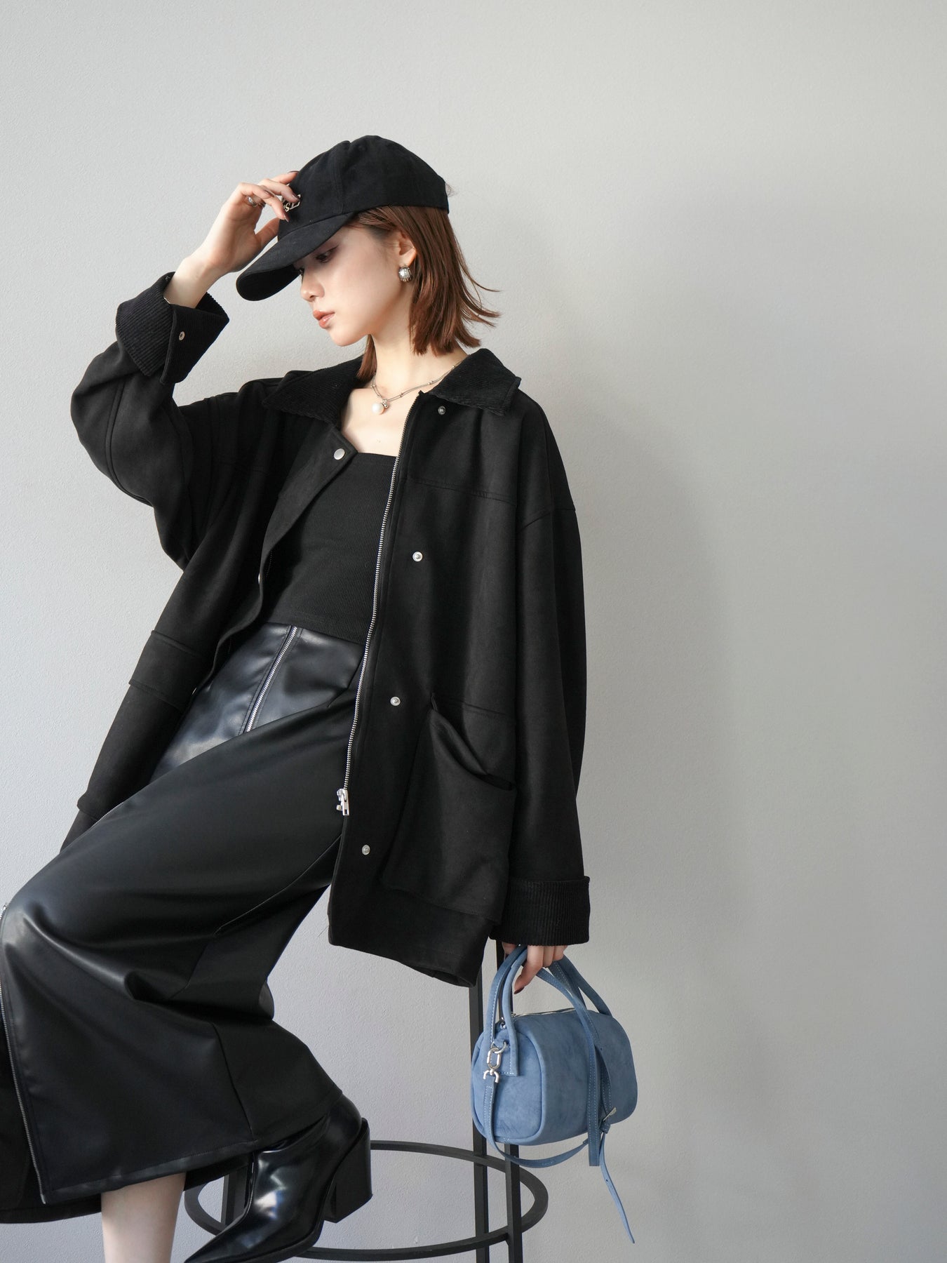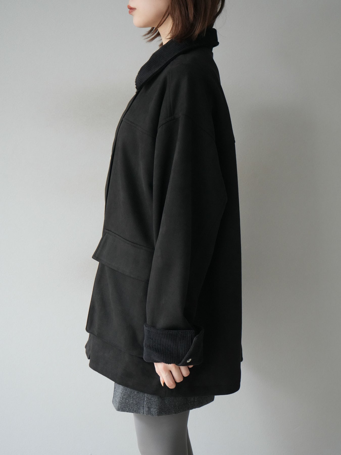 [予約]コーデュロイ襟スウェードミドルジャケット /ブラック