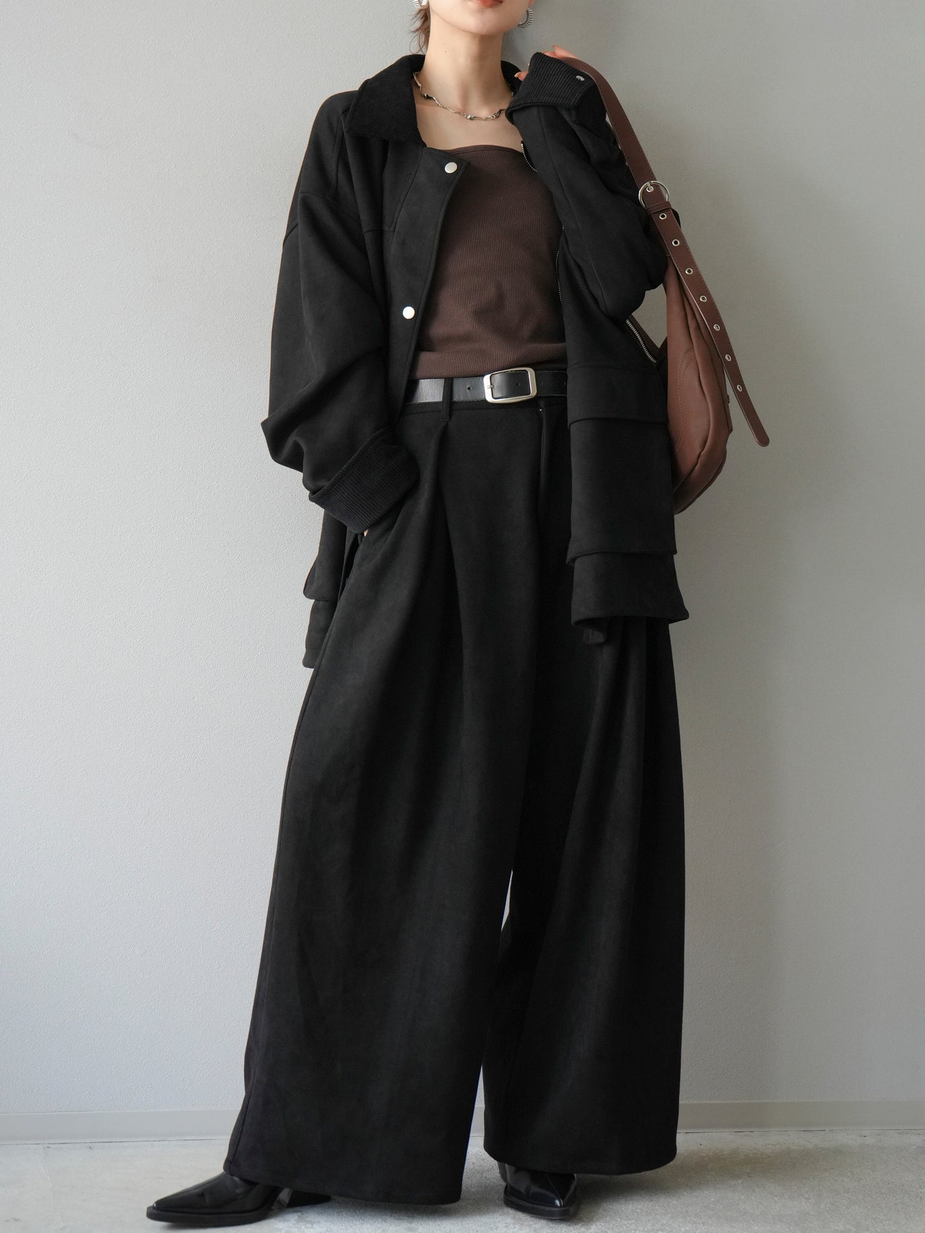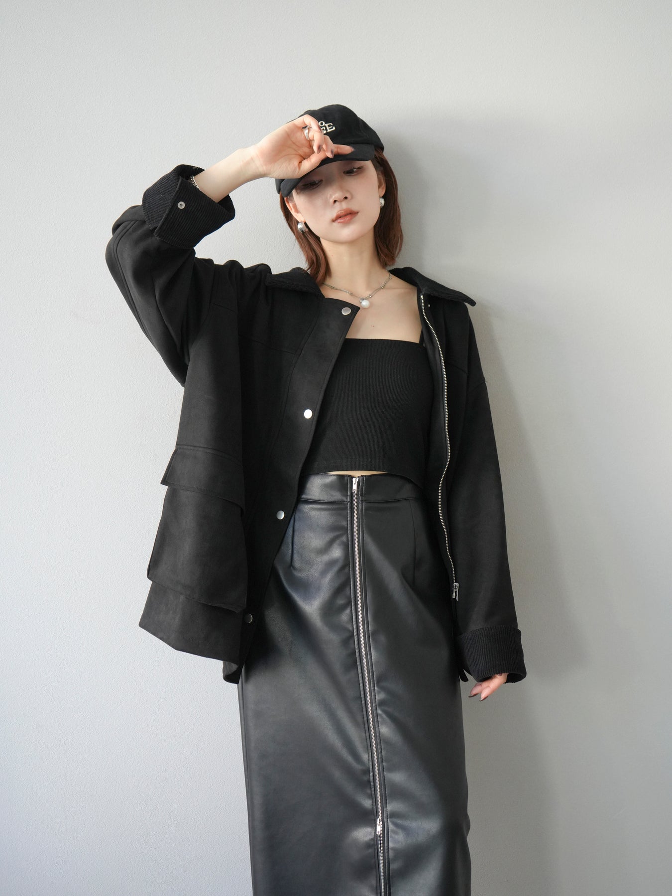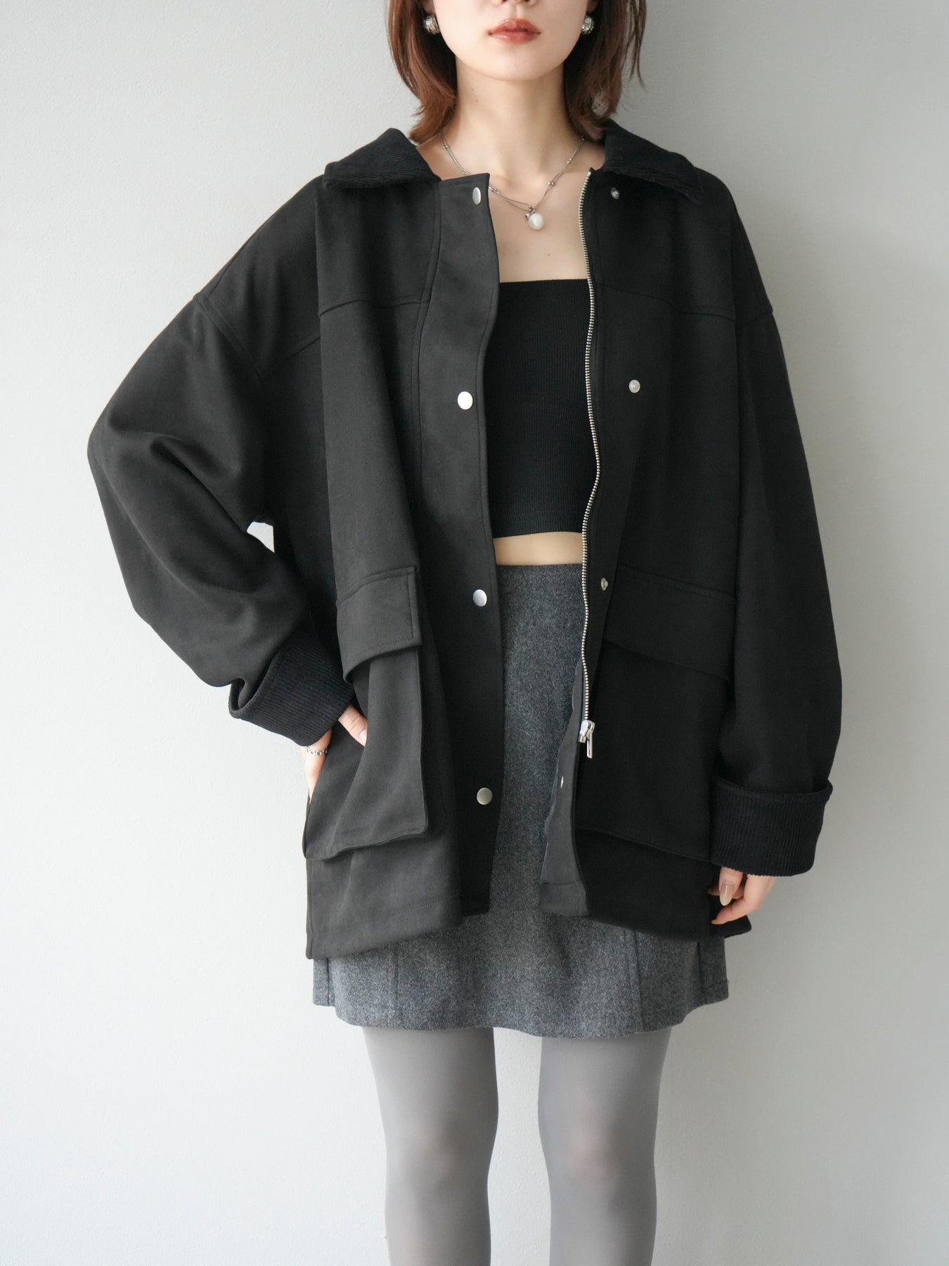 [予約]コーデュロイ襟スウェードミドルジャケット /ブラック