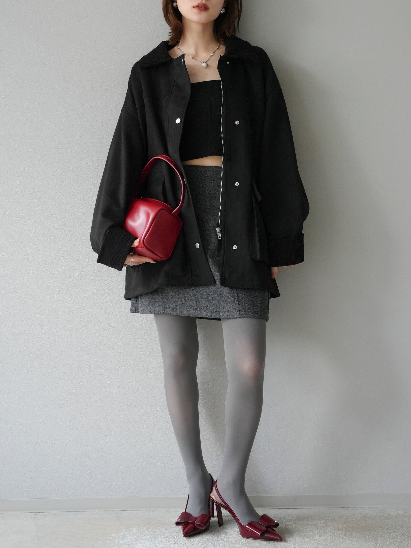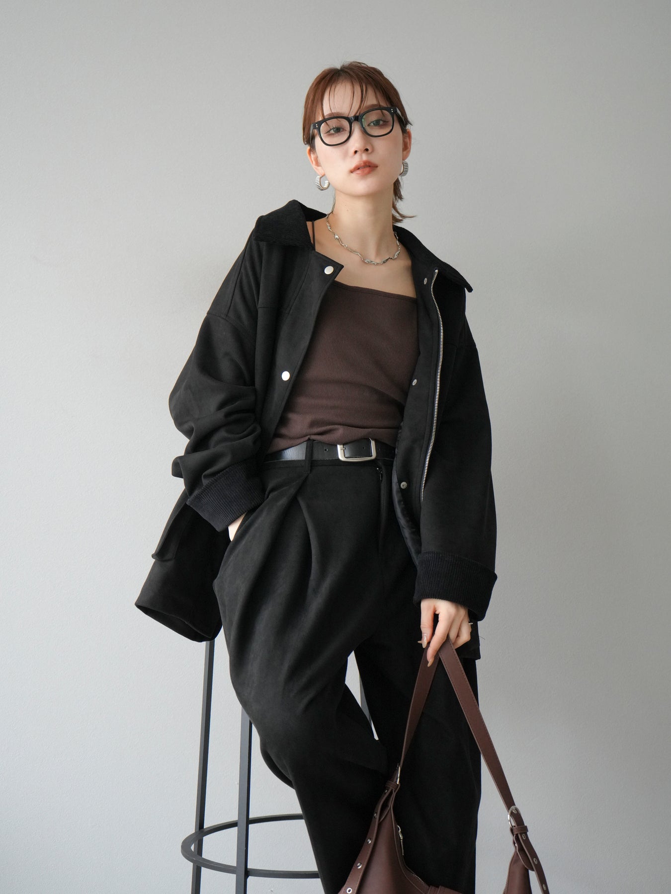 滑らかなスウェード調素材にコーデュロイ襟を組み合わせた、存在感のあるミドルジャケット。異素材のコントラストがシーズンムードを引き立て、羽織るだけでこなれ感を演出します。程よくゆとりのあるシルエットで重ね着しやすく、デイリーからお出かけシーンまで幅広く活躍。大きめのフロントポケットやカフス部分の切り替えなど、細部にまでこだわったデザインが魅力です。シンプルなスタイリングにプラスするだけで、着映えする主役アイテムになります。 ※ボトムス、キャミソール(インナー)以外の商品は一律でインナーは付属していません。