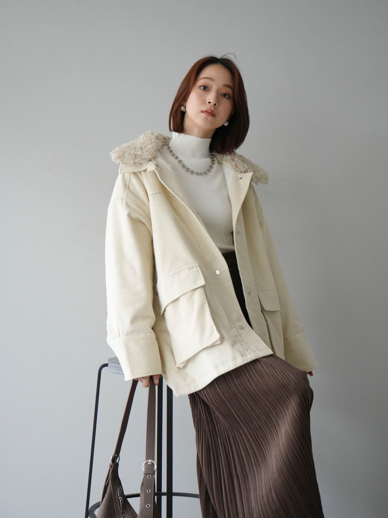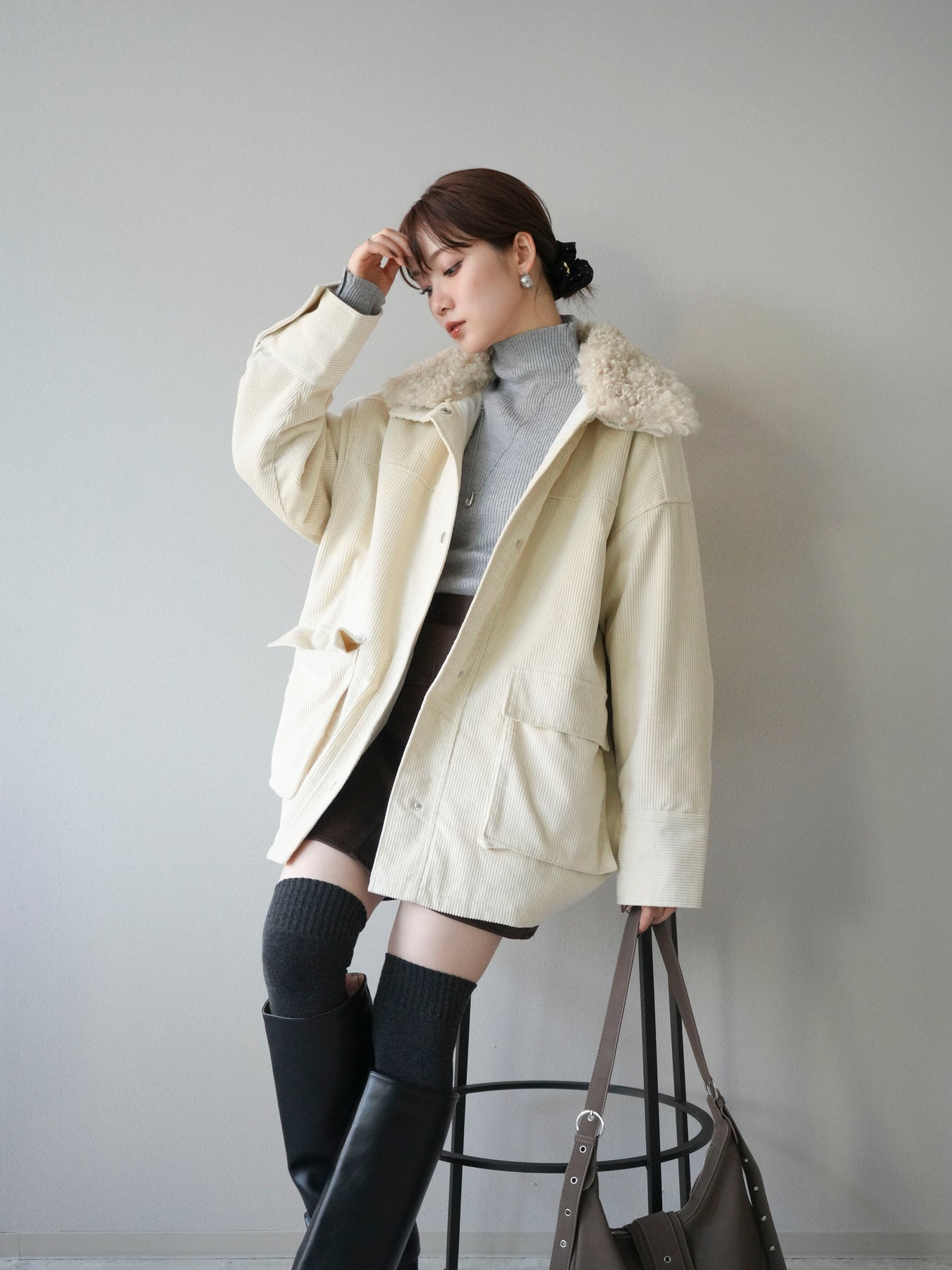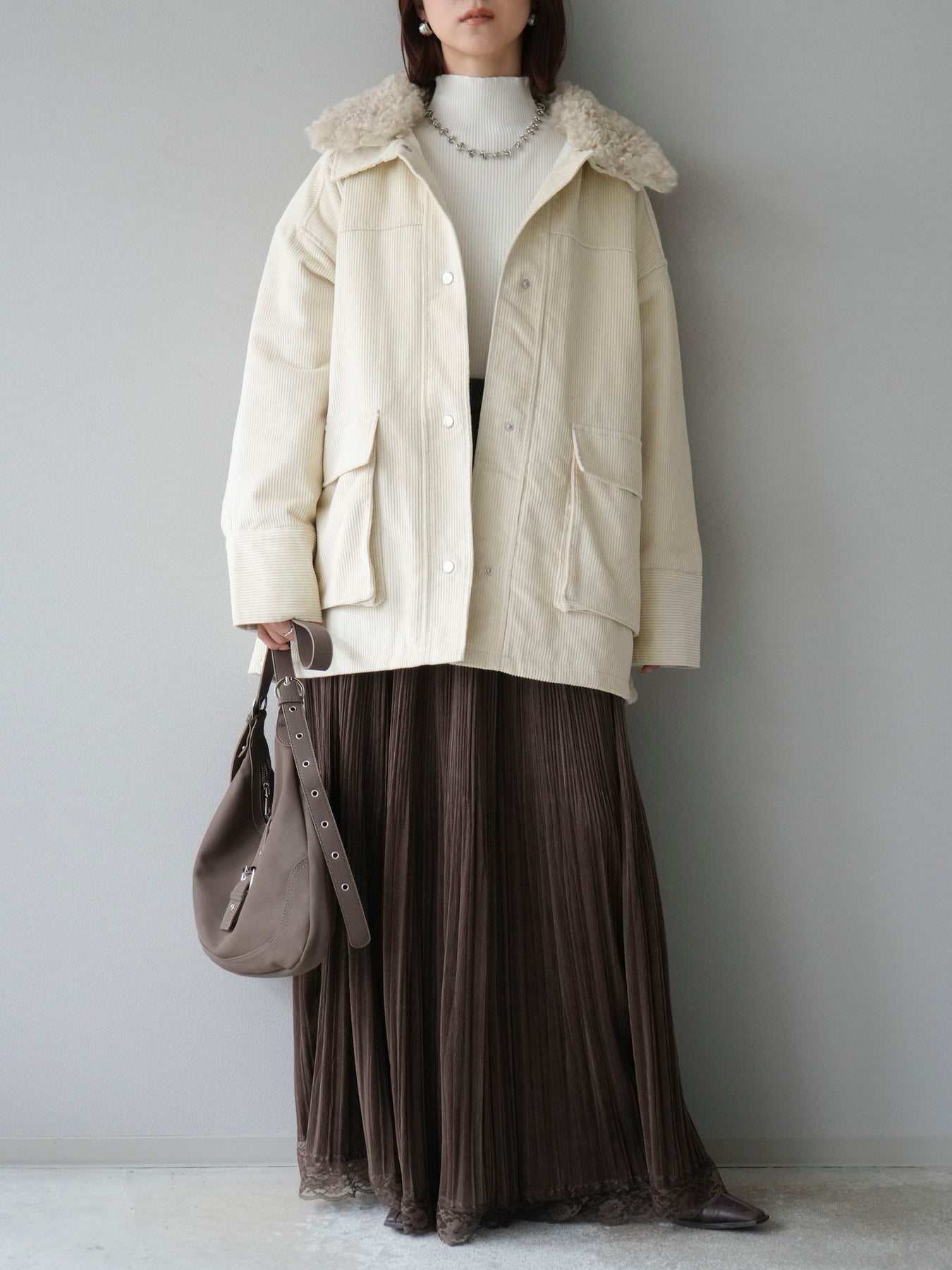[予約]コーデュロイボア襟フライトジャケット/エクリュ