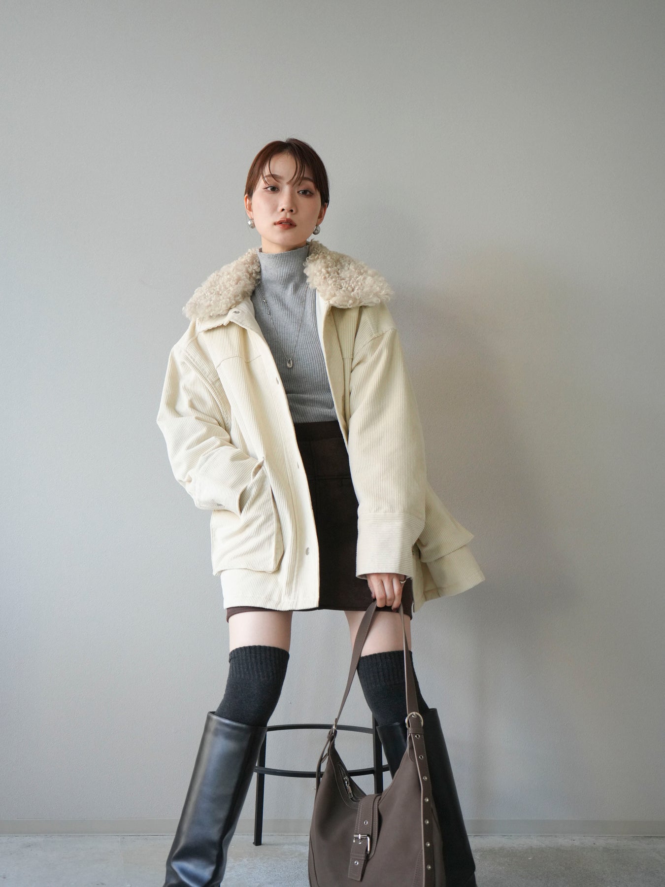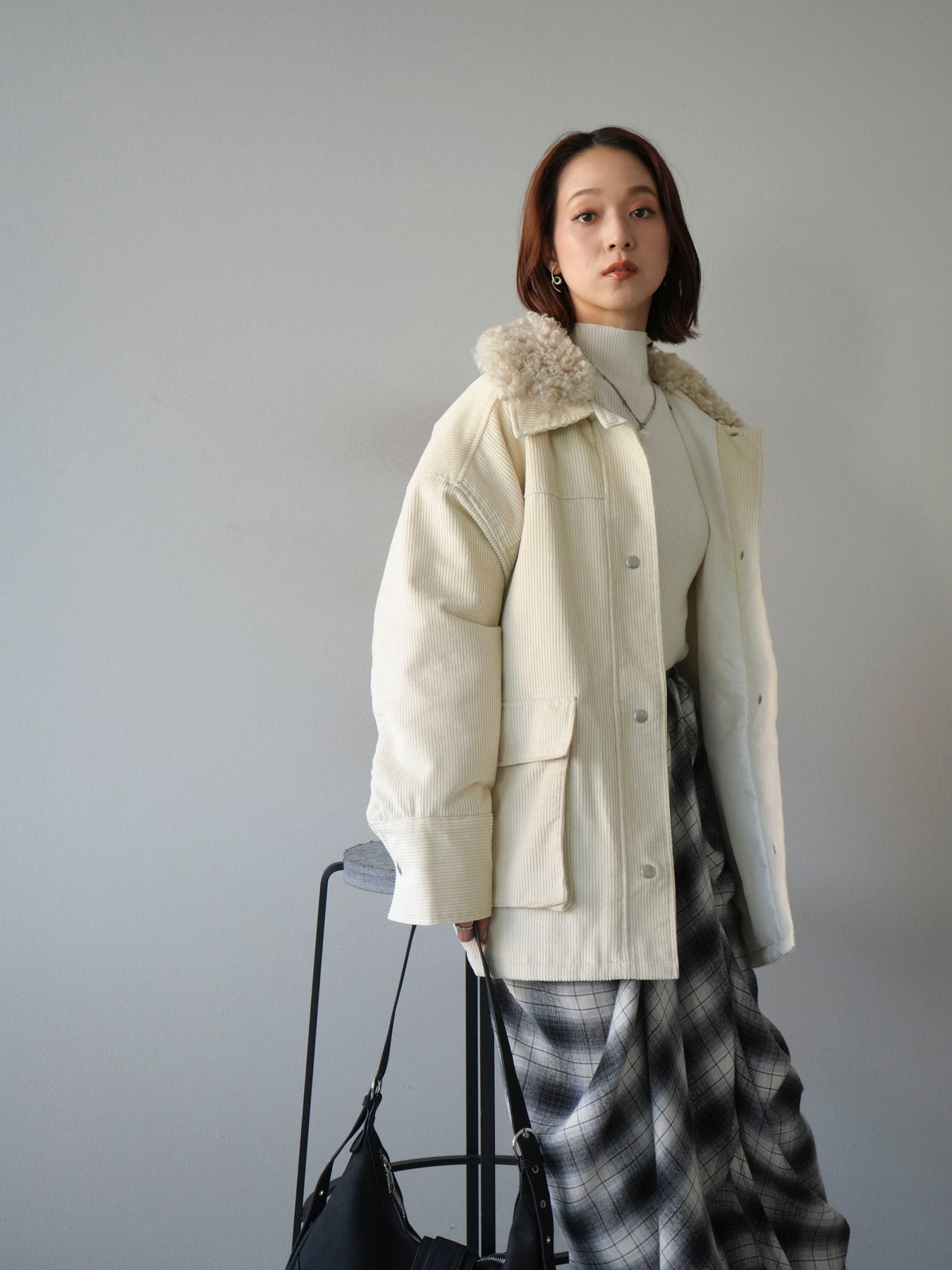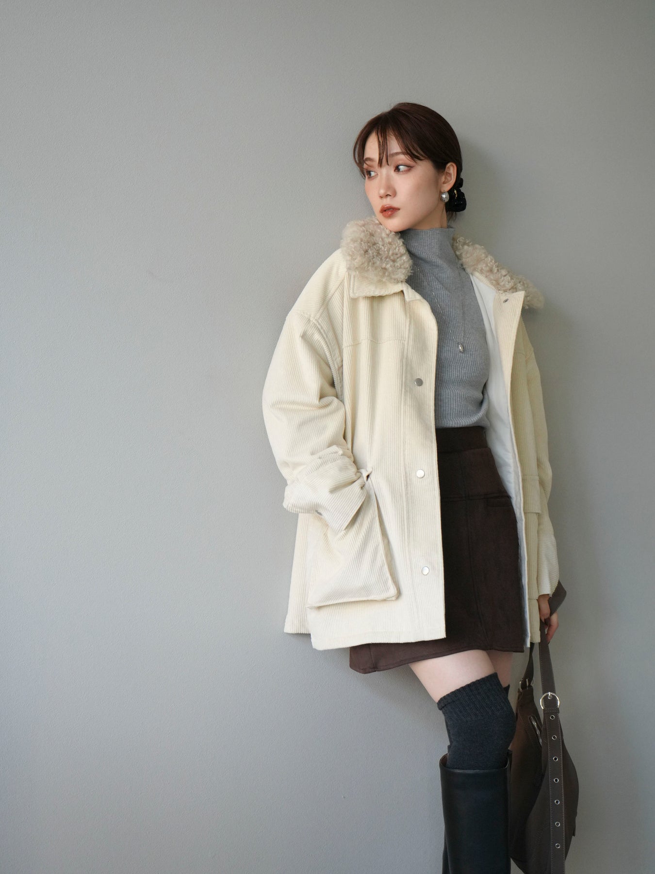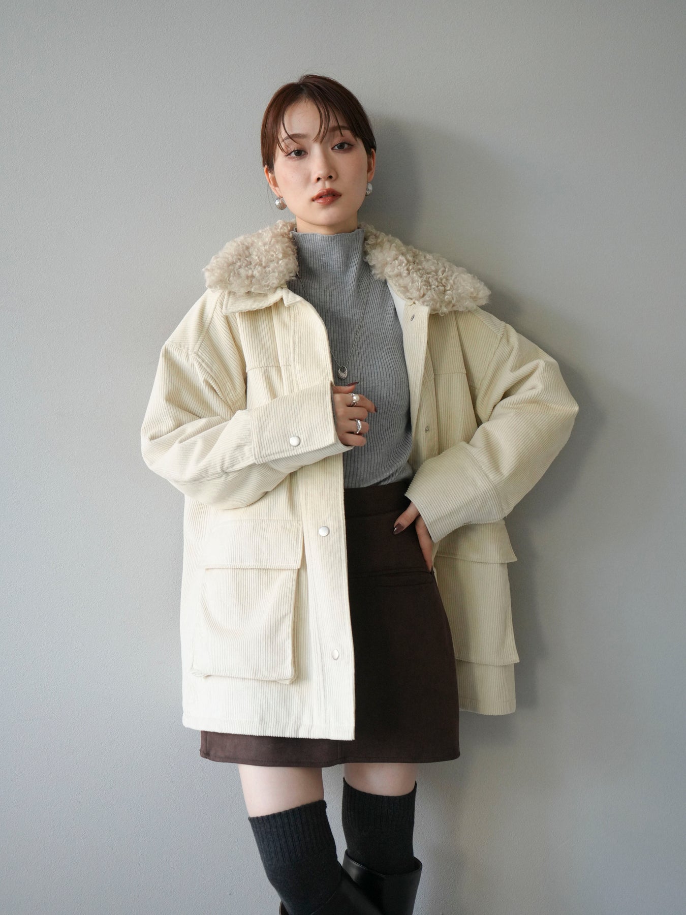 [予約]コーデュロイボア襟フライトジャケット/エクリュ