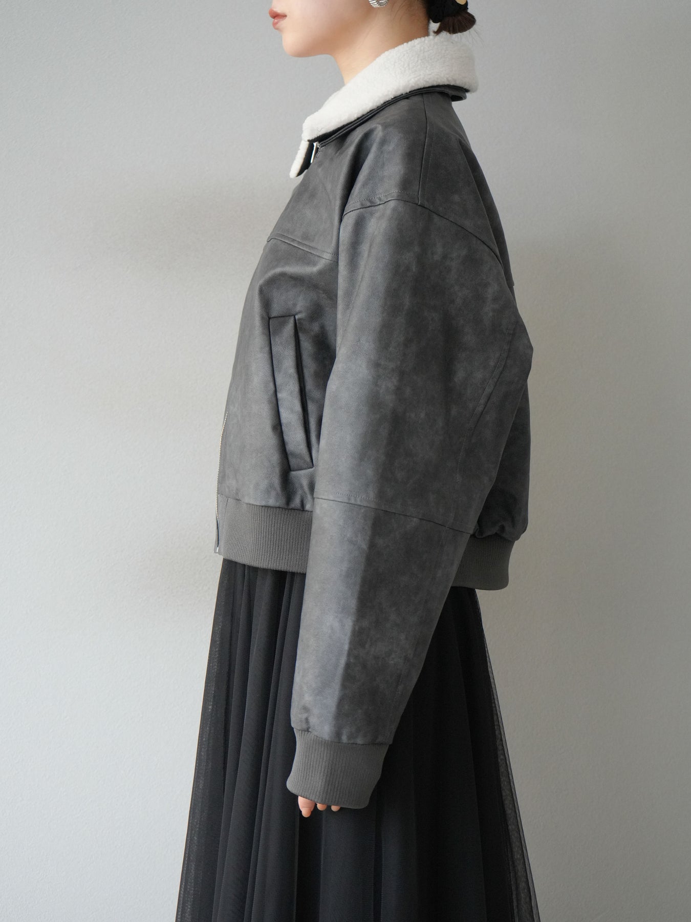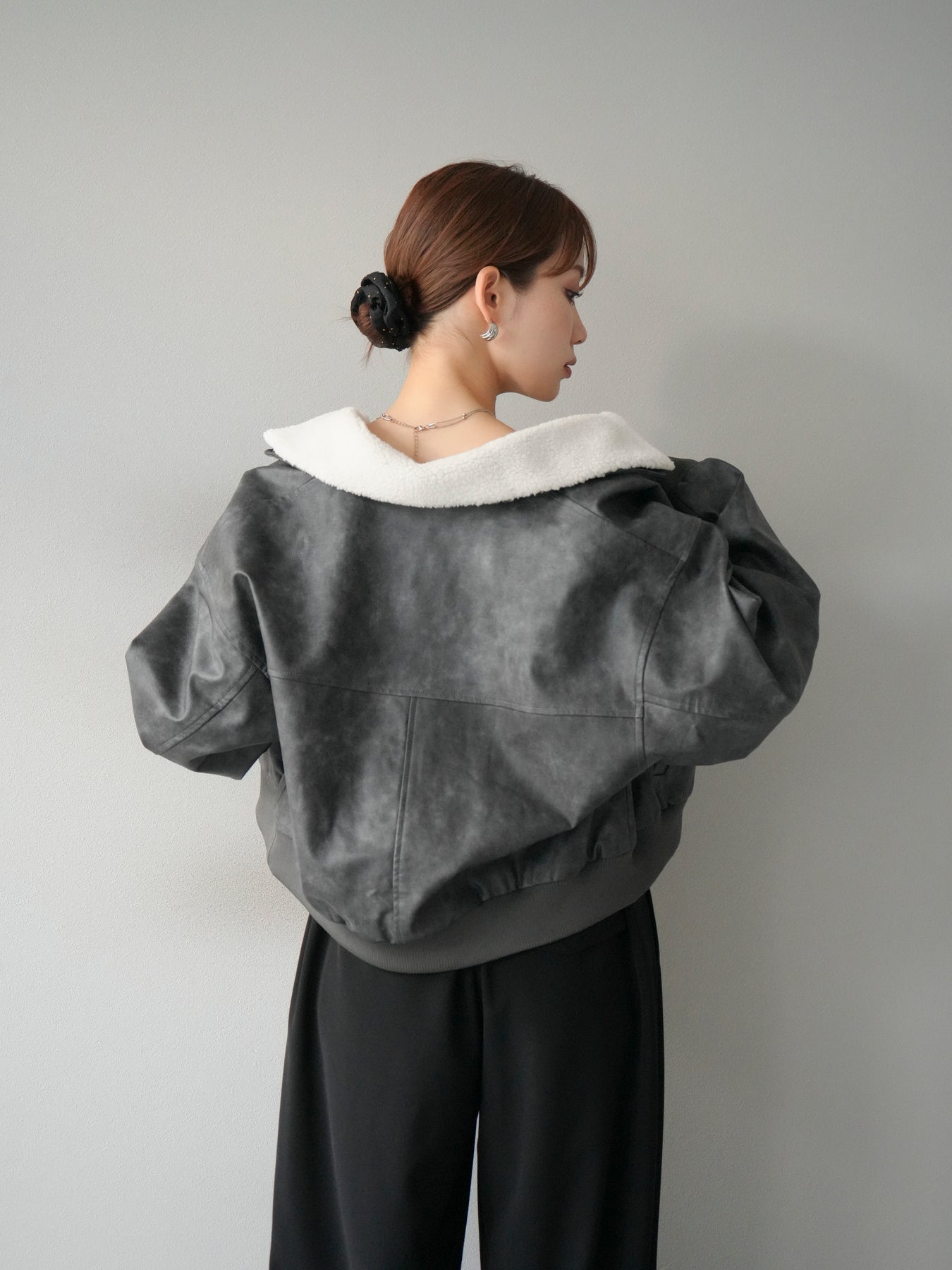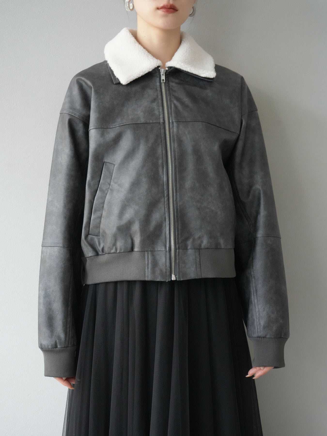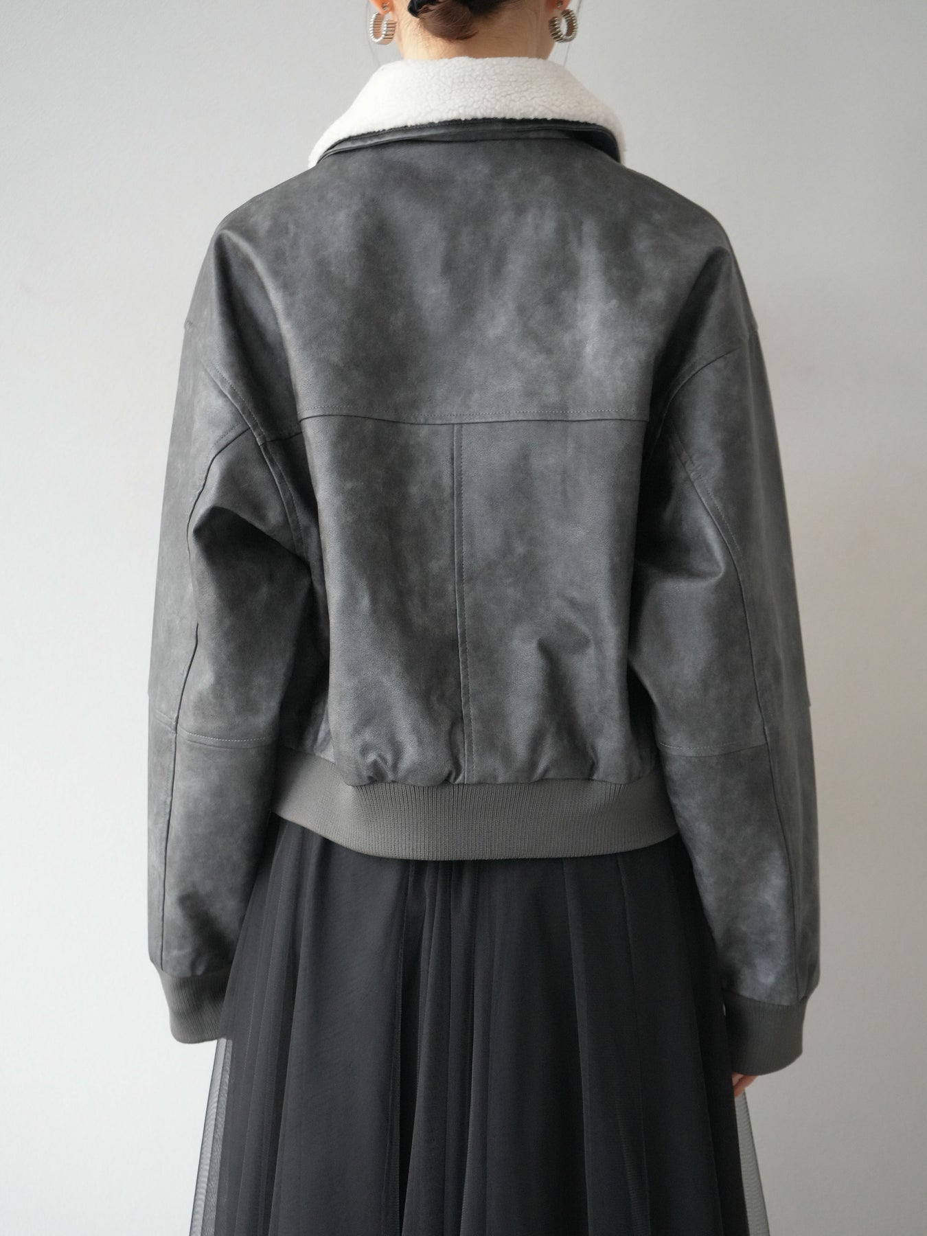 [予約]襟ボアヴィンテージレザーブルゾン/ブラック