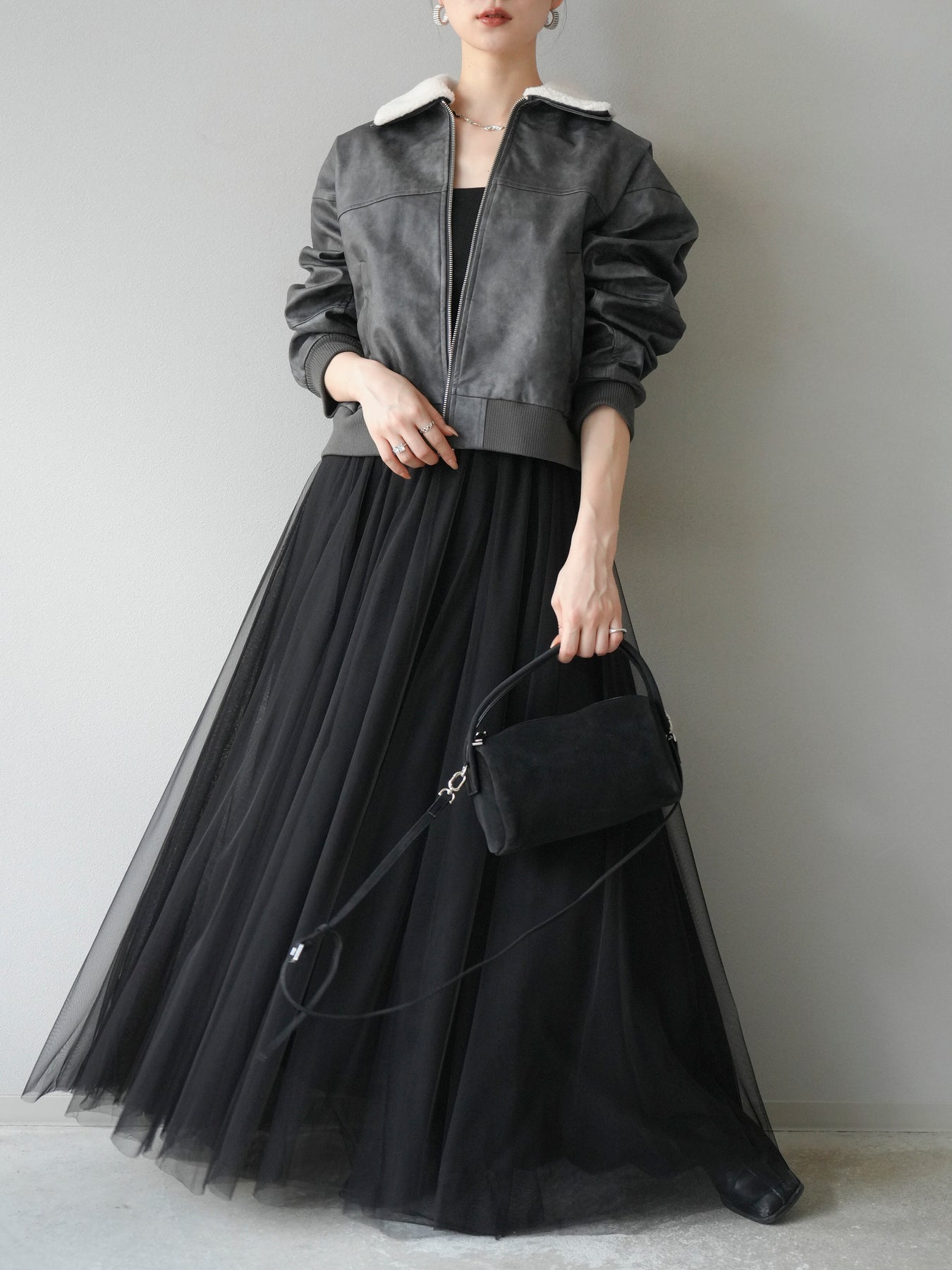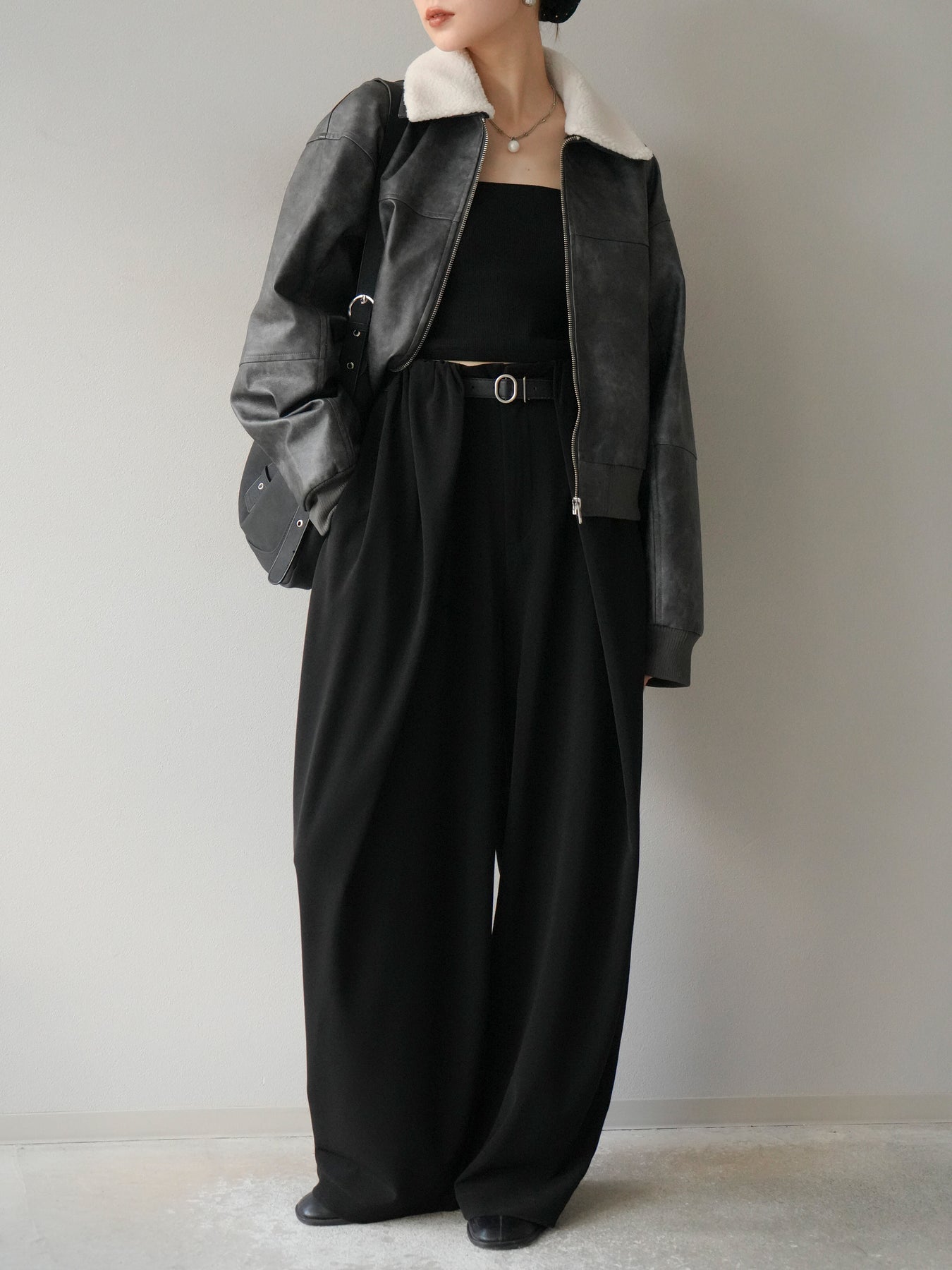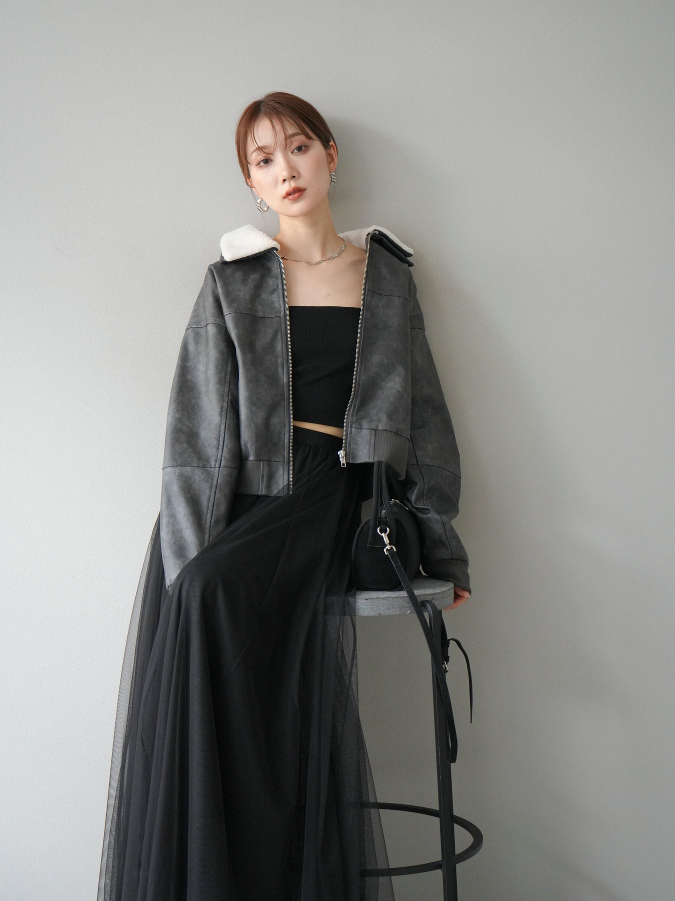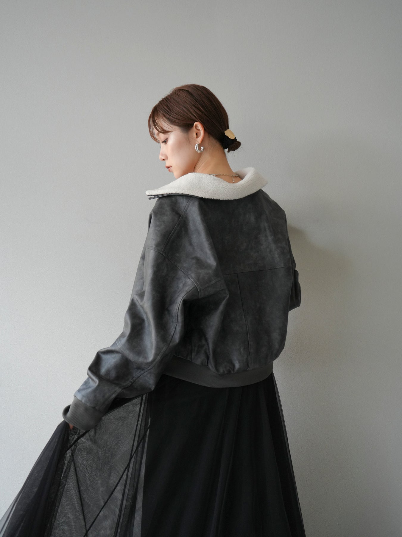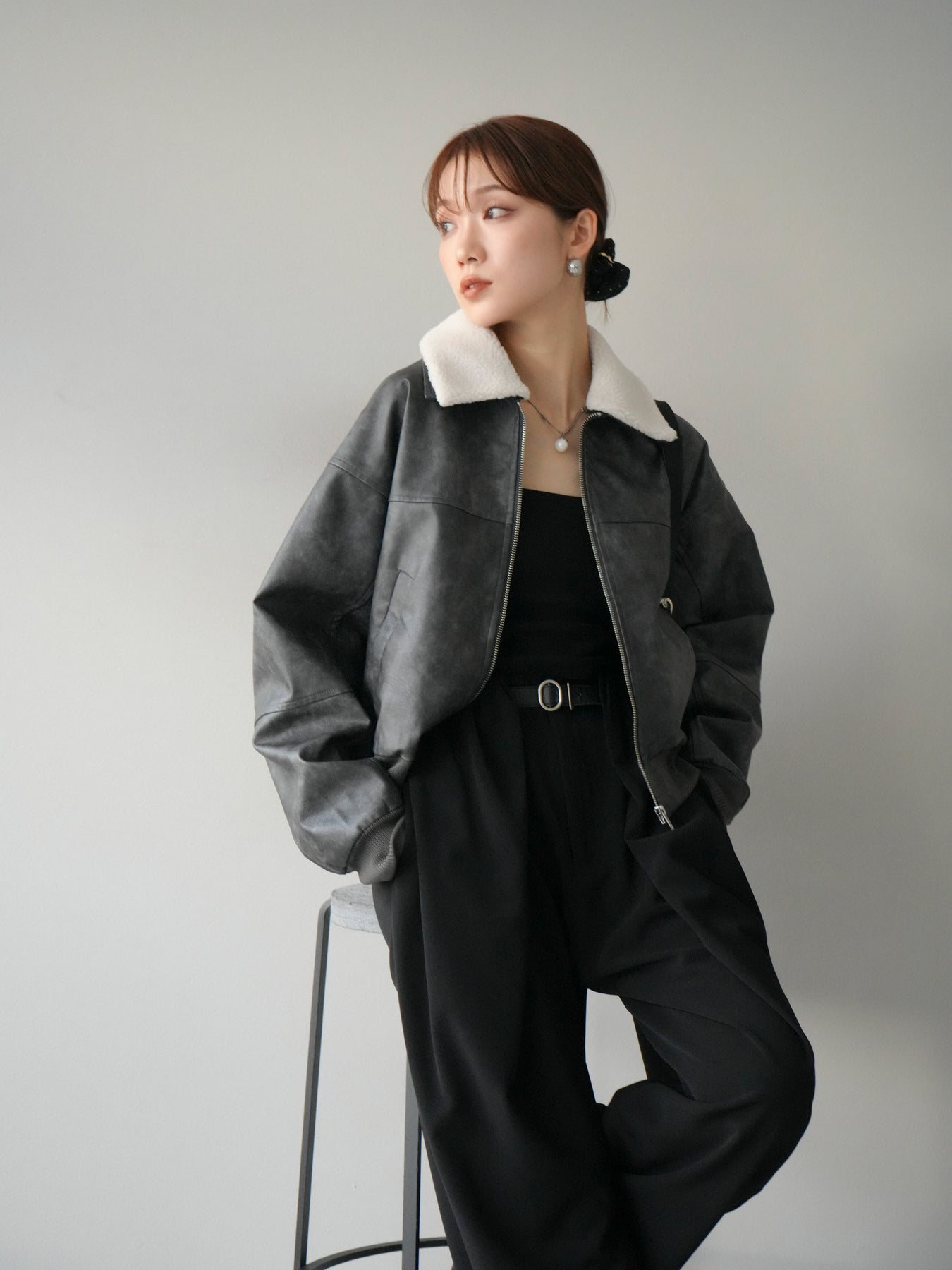[予約]襟ボアヴィンテージレザーブルゾン/ブラック