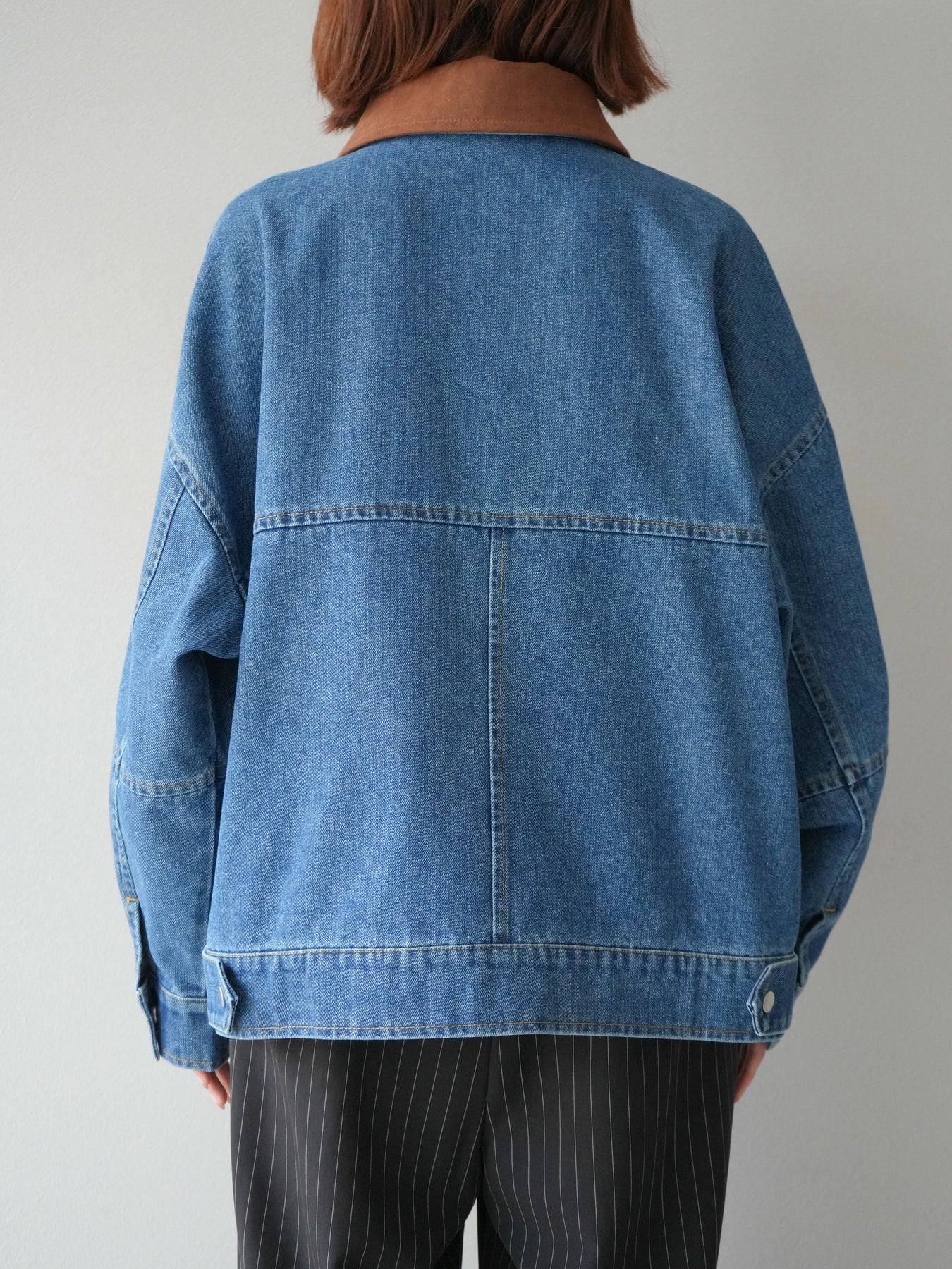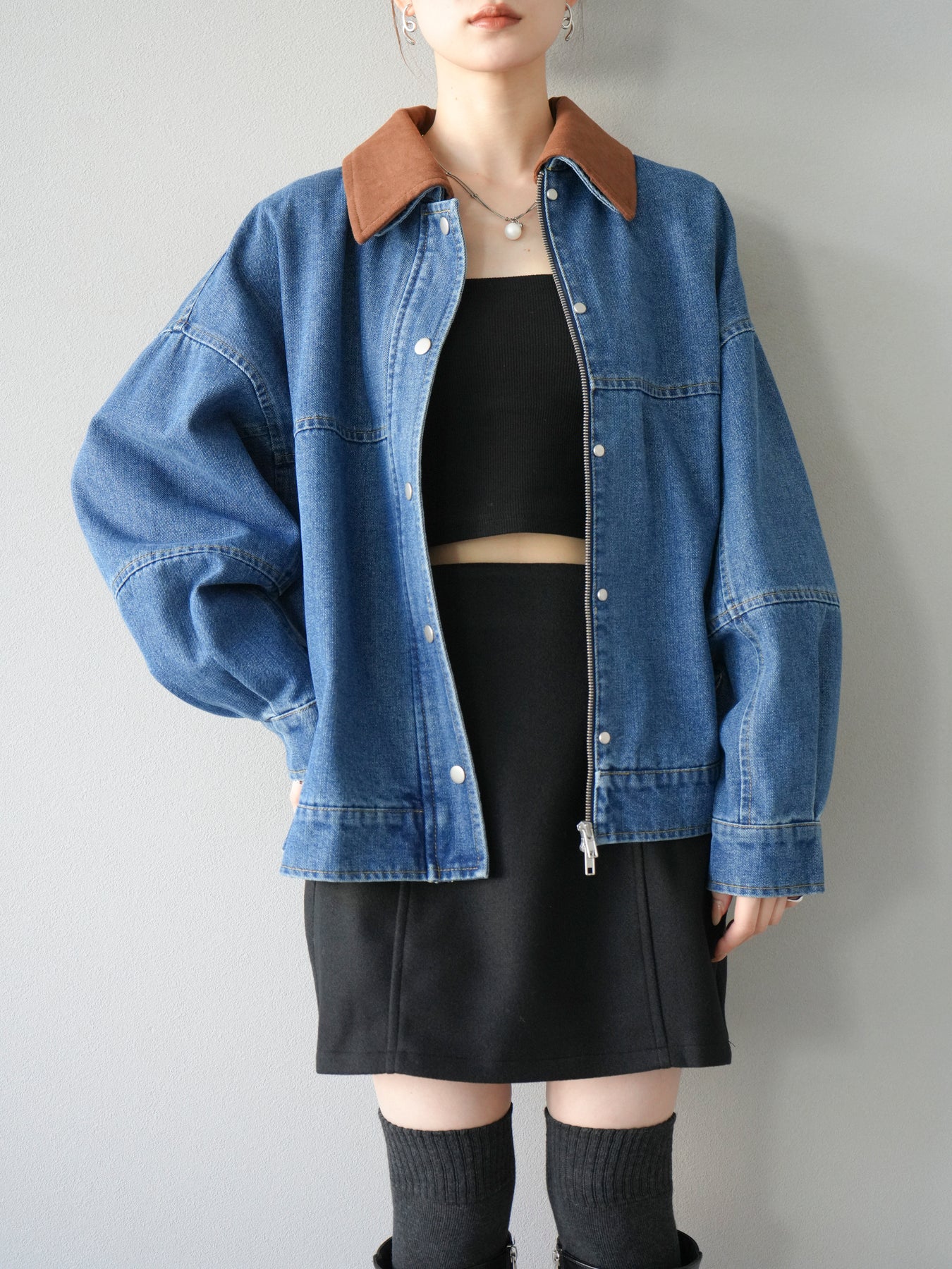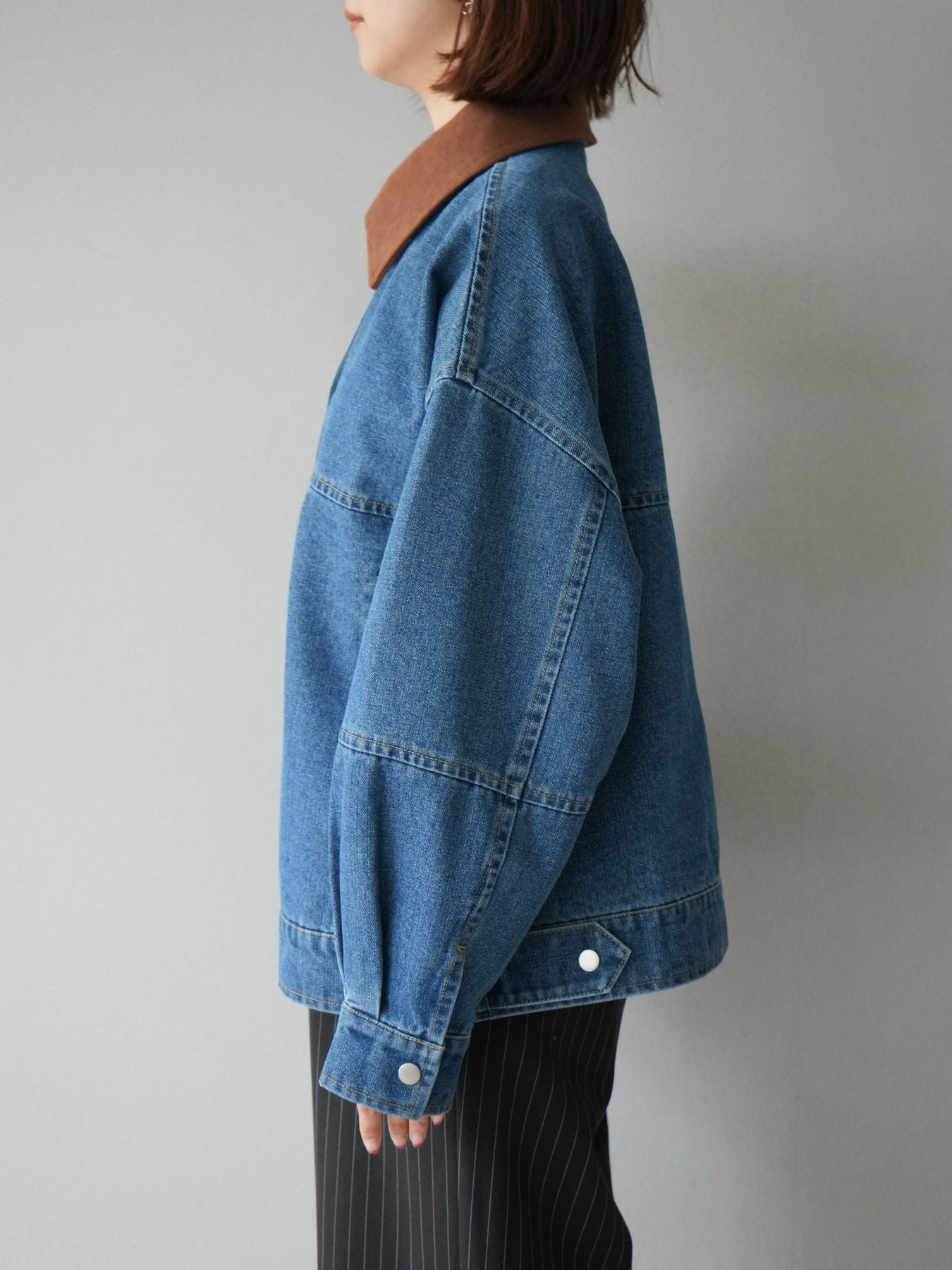 [予約]スウェード襟切替デニムブルゾン/ブルー